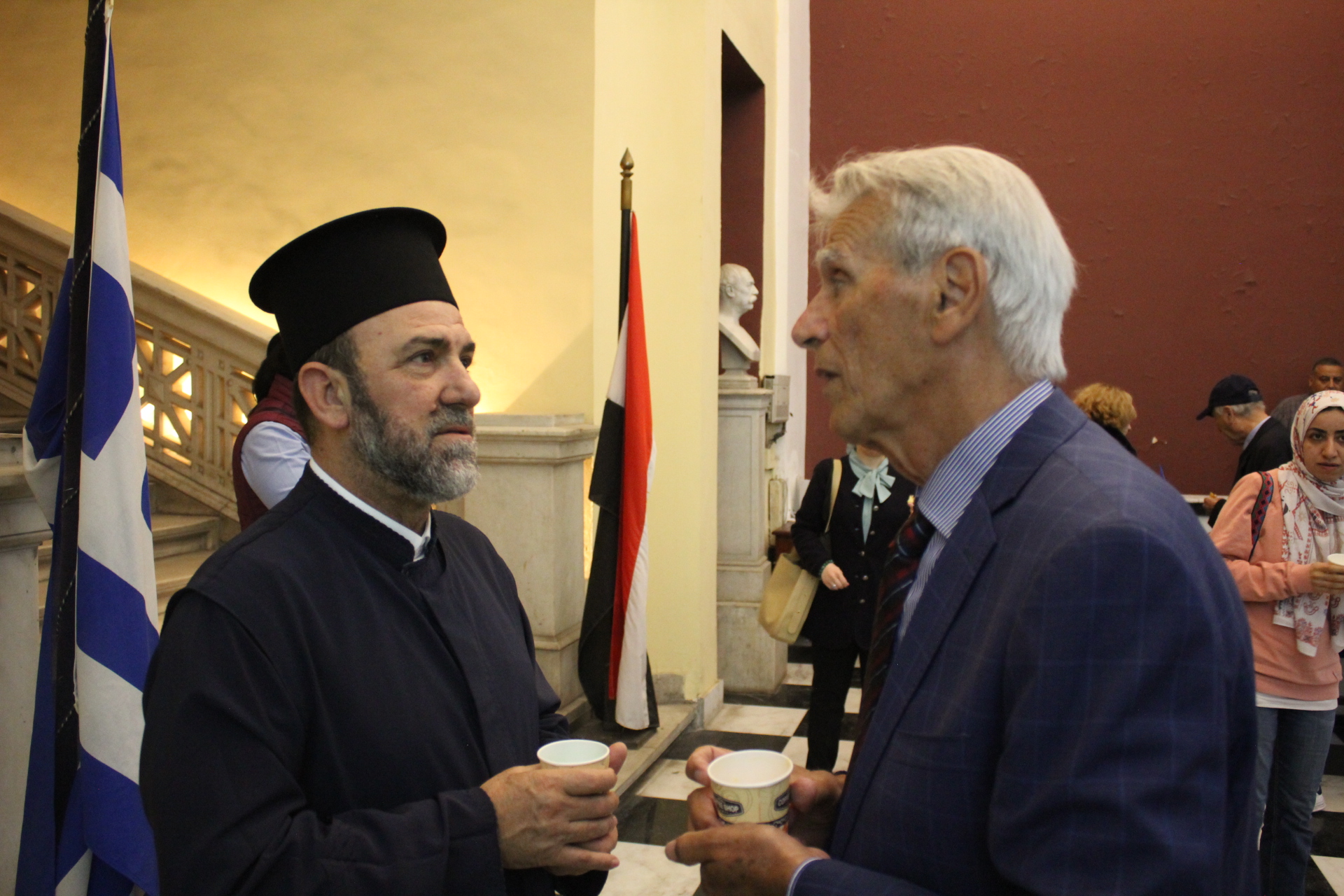 Παρευρέθησαν εκτός των προαναφερόμενων, ο Πλοίαρχος και Σύνδεσμος του Π/Ν με το Αιγυπτιακό κ. Κωνσταντίνος Βαρουξής, μετά της συζύγου του, επίσης Πλοιάρχου Αγγελικής, η Πρόεδρος του ΕΝΟΑ και του Πτολεμαίου κα. ΄Λιλίκα Θλιβίτου, η Διευθύντρια του Αβερωφείου Γυμνασίου Λυκείου κα. Αφροδίτη Πεβερέτου, ο Διευθυντής του Τοσιτσαίου – Πρατσίκειου Δημοτικού κ. Κωνσταντίνος Ρήγας, η Δοκτόρα του Πανεπιστημίου Ελληνικής και Κοπτική γλώσσας στα πατερικά κείμενα κα. Ρουάϊντα Μαμούνι, φοιτητές του ΕΙΠ, εκπαιδευτικοί και Αιγυπτιώτες Πάροικοι.