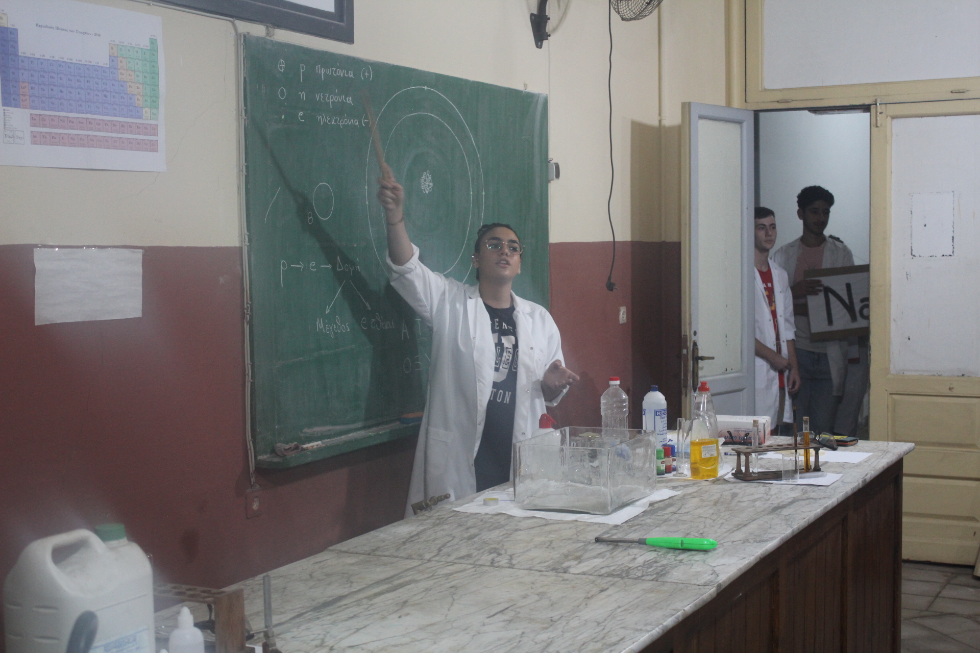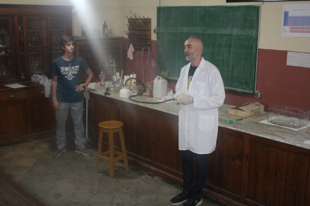 Μετά την ομιλία του κ. Βαφειάδη, άρχισε μια πανδαισία πειραμάτων Χημείας, με εντυπωσιακές αλλαγές χρωμάτων, εκρήξεις, ρουκέτες, πυροτεχνήματα, κινηματογραφικά εφέ, οδοντόκρεμα του … ελέφαντα και άλλα πολλά που δημιούργησαν θαυμασμό και δέος στους παρευρισκόμενους.