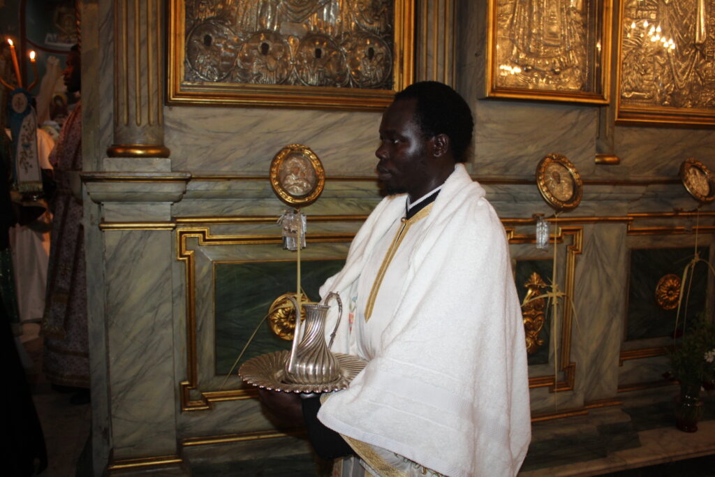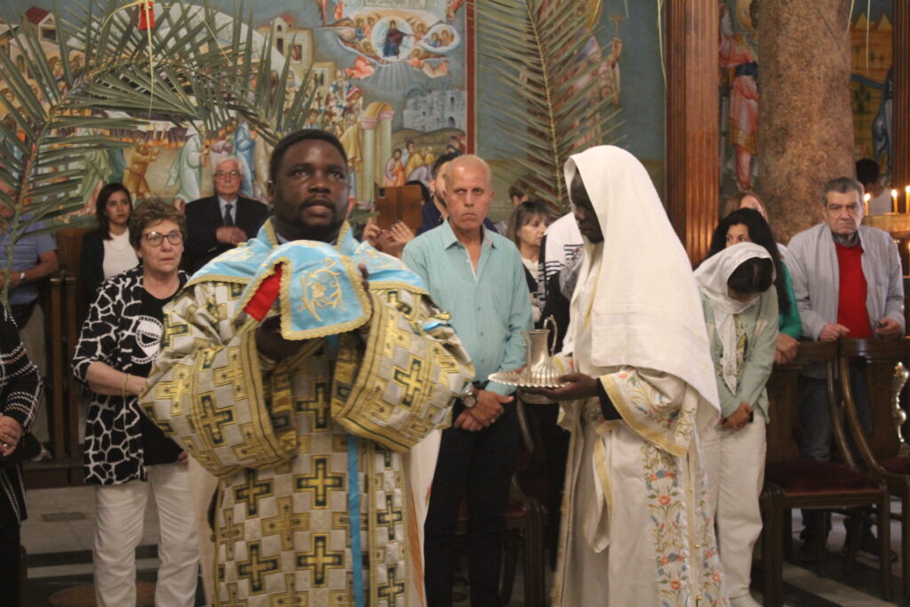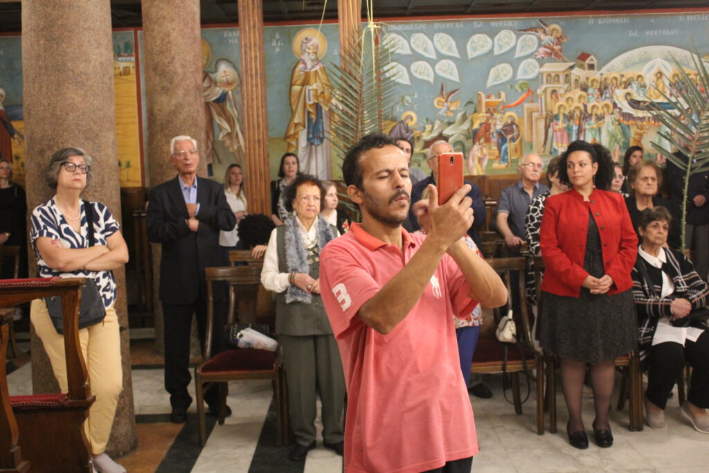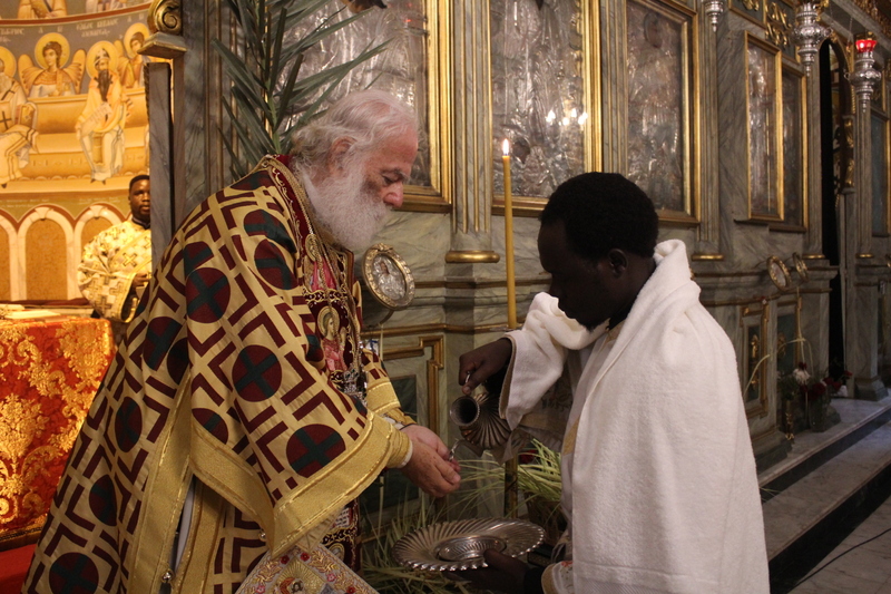 Στην Αλεξάνδρεια την κατ΄ εξοχήν πόλη του Ελληνισμού και της Ορθοδοξίας, ο Μακαριώτατος προεξήρχε της Κυριακής των Βαΐων στην κατάμεστη από πιστούς Ιερά Μονή του Οσίου Σάββα του Ηγιασμένου. Συμπροσευχόμενοι οι Σεβασμιώτατοι Μητροπολίτες: Γέρων Λεοντουπόλεως κ. Γαβριήλ και Ταμιάθεως κ. Γερμανός Προϊστάμενος της Ιεράς Μονής, καθώς και ο Αρχιμανδρίτης του Πατριαρχείου κ. Φιλάρετος μαζί με τους φοιτητές της Πατριαρχικής Σχολής, δημιούργησαν άπαντες μια κατανυκτική ατμόσφαιρα που άγγιξε τις ευαίσθητες χορδές των πιστών, οι οποίοι εισέπραξαν την ελπίδα, τη γαλήνη και την εσώτερη ομορφιά, πηγάζουσα από τα ευαγγελικά ακούσματα που οδηγούν στο υπέρτερο αίσθημα της Αγάπης! Να σημειωθεί ότι στήριξε στο ψαλτήρι η κα Δέσποινα Σολομωνίδου όπως πράττει εδώ και χρόνια σε πολλές εκκλησίες της Παροικίας όταν υπάρχει ανάγκη!
