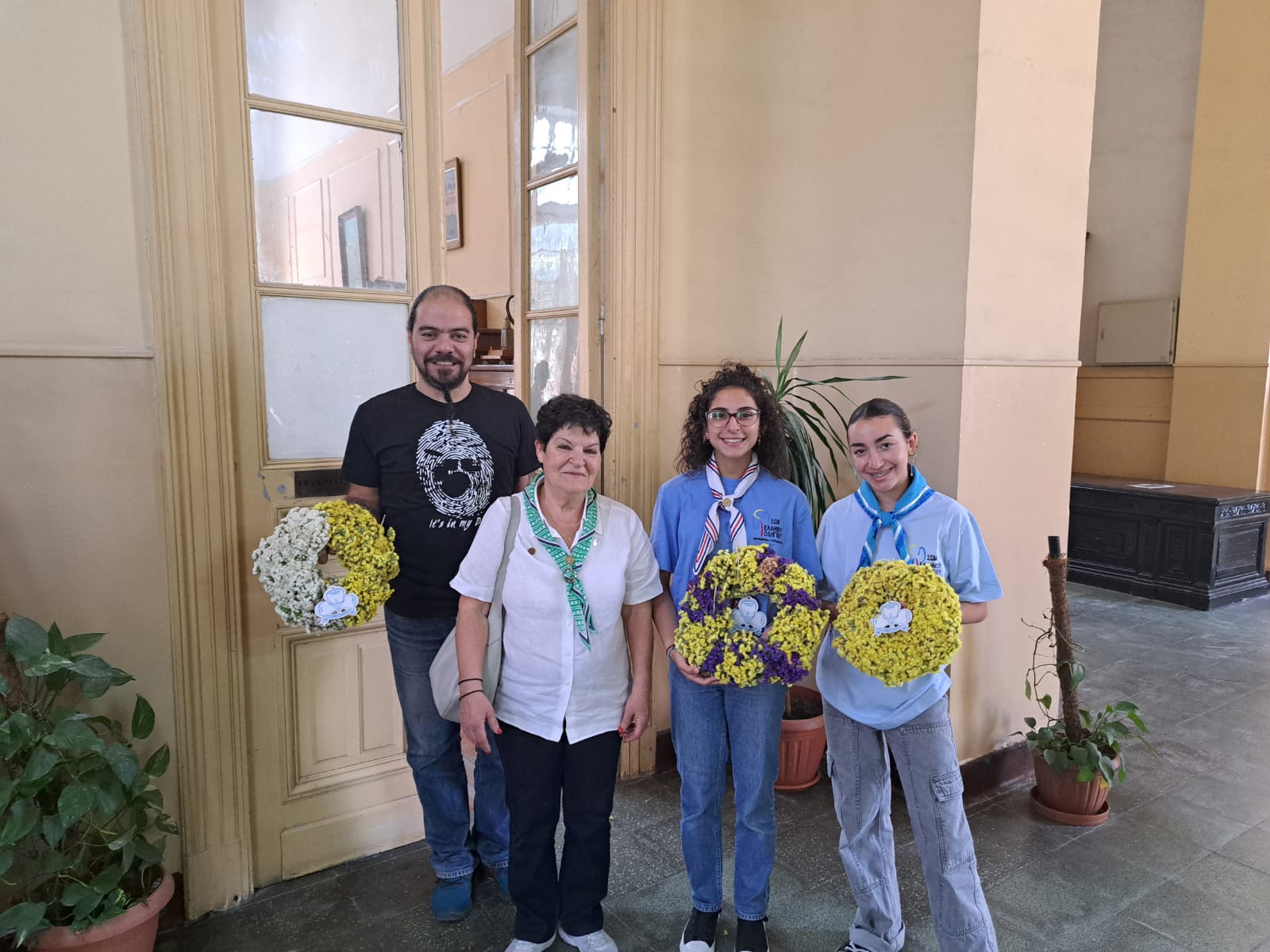 Η Έφορος του Ελληνικού Οδηγισμού Αλεξανδρείας κα. Μαίρη Κάβουρα και οι μαθήτριες οδηγοί Μαργαρίτα Άστωρ και Χριστίνα Γαβριήλ, προσέφεραν σήμερα Μεγάλη Τρίτη στα Γραφεία της Ελληνικής Κοινότητας, την θετική τους αύρα, υπενθυμίζοντας παράλληλα σε όλους μας με τα στεφάνια τους ως προπομποί της αυριανής Πρωτομαγιάς, πως οι παραδόσεις και τα έθιμα στην Παροικία… καλά κρατούν!