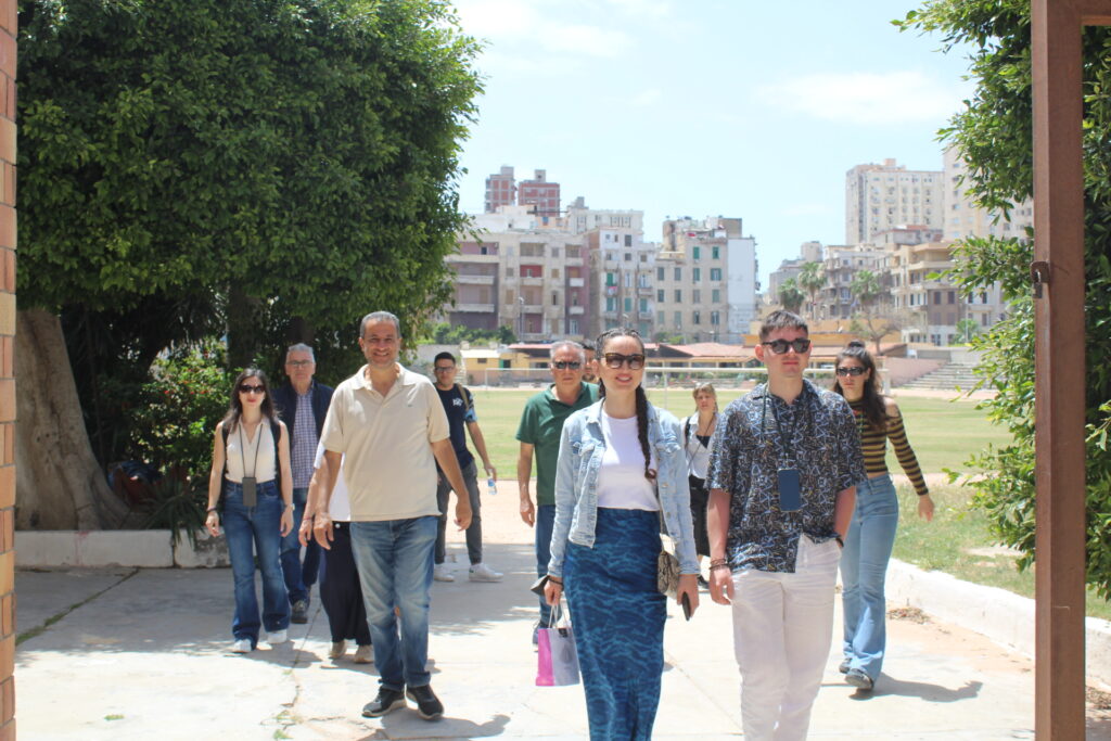 Στο Ναυτικό Όμιλο Αλεξανδρείας τους υποδέχτηκε η Πρόεδρός του κα Λιλίκα Θλιβίτου, η οποία τους ξενάγησε σε όλους τους χώρους και τους εξιστόρησε γεγονότα και συμβάντα από αγώνες με τις κωπήλατες βάρκες που εκτίθενται στις προθήκες του ΕΝΟΑ.