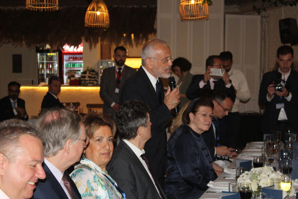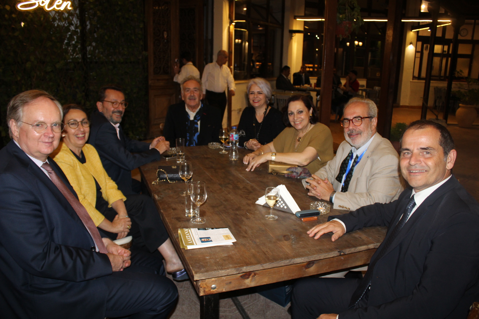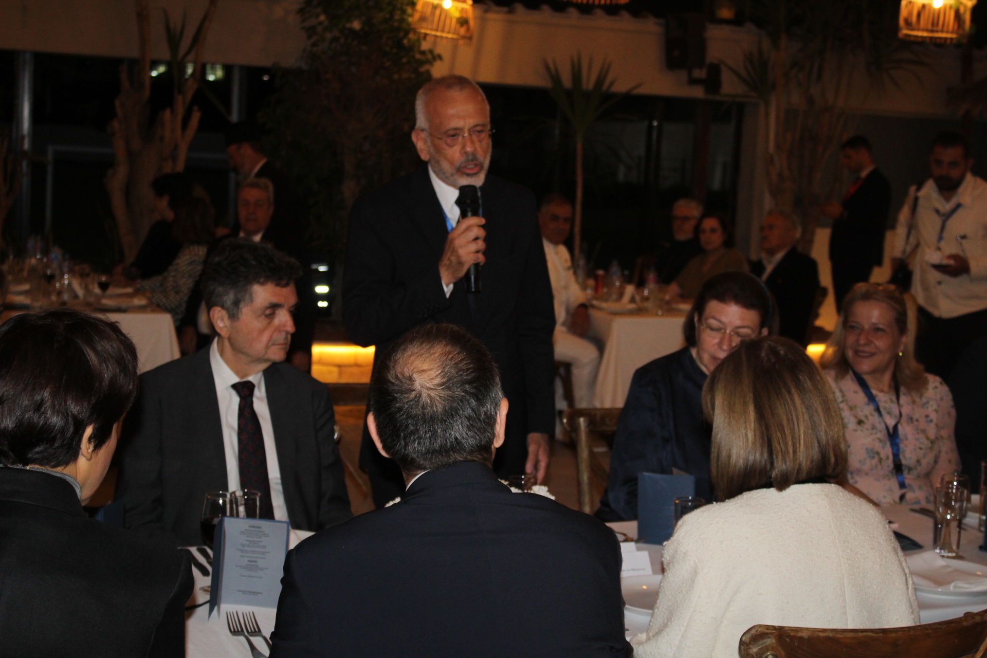 Ο Γενικός Γραμματέας κ. Νικόλαος Κατσιμπρής και υπεύθυνος του χώρου, με ενδιαφέρον και ευγένεια επέβλεπε το «τελετουργικό» του δείπνου, έτσι ώστε να ικανοποιούνται όλοι όπως ακριβώς είχε διοργανώσει και επιθυμούσε ο Πρέσβυς κ. Παπαγεωργίου. Ήταν ένα όμορφο βράδυ που κύλησε με συζήτηση, συστάσεις γνωριμιών, επικοινωνιακή αλληλεπίδραση και ιδιαίτερη αναφορά στην επικείμενη τελετή των εγκαινίων από το Ίδρυμα Ωνάση του Μουσείου Καβάφη.