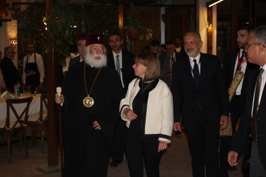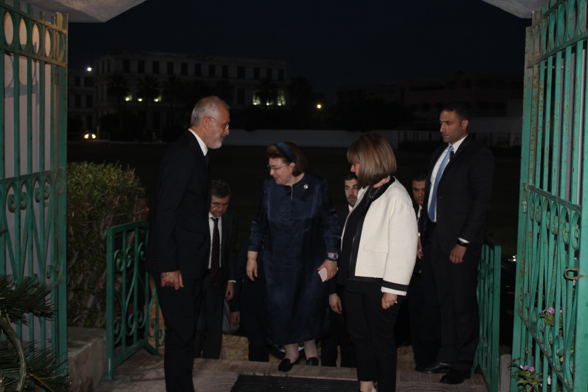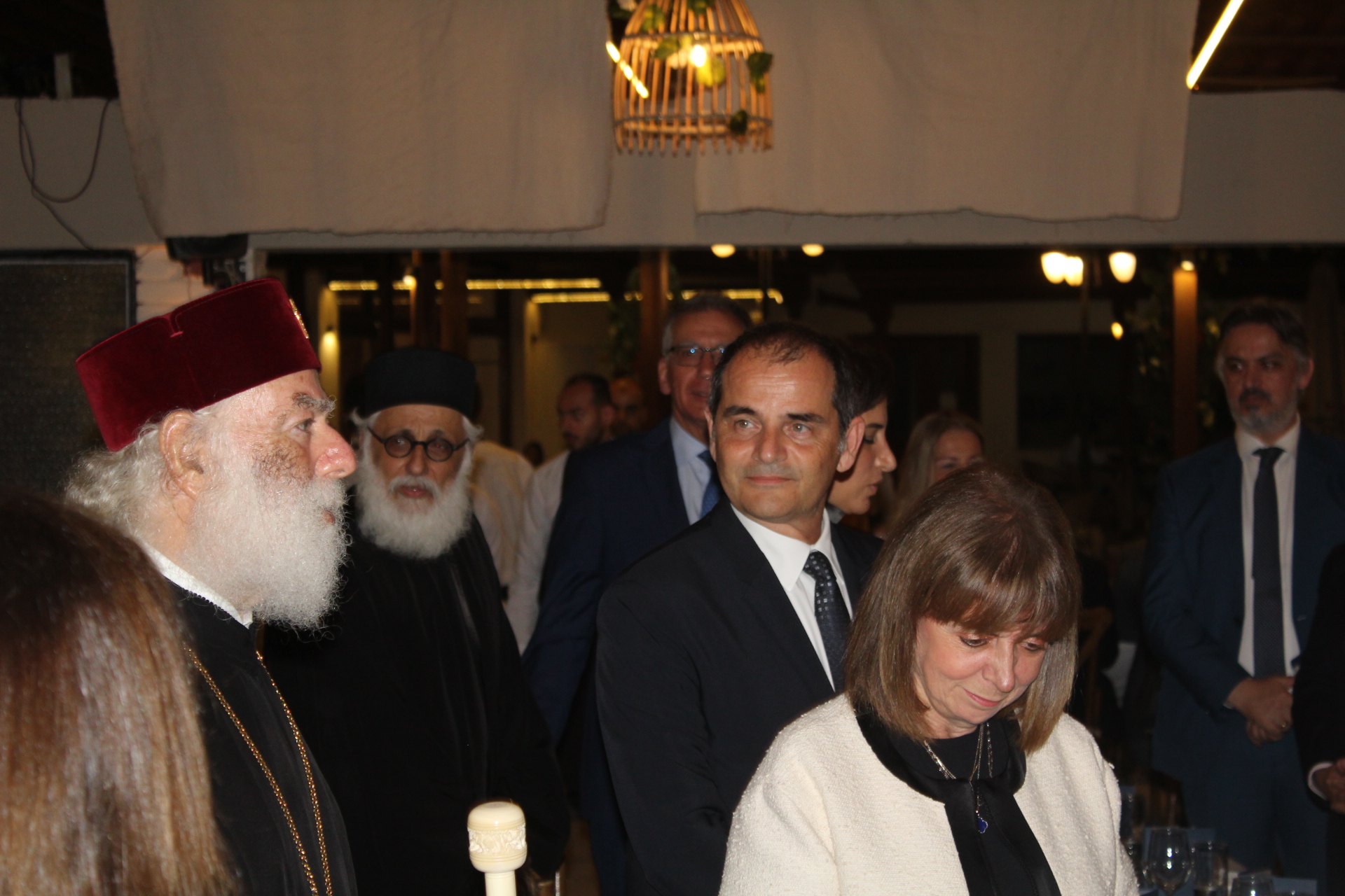 Το βράδυ της Παρασκευής 10ης Μαΐου 2024 το Εντευκτήριο της Ελληνικής Κοινότητας Αλεξανδρείας, είχε την τιμητική του. Ο Πρέσβυς της Ελλάδας στην Αίγυπτο κ. Νικόλαος Παπαγεωργίου τίμησε την Πρόεδρο της Ελληνικής Δημοκρατίας κα Κατερίνα Σακελλαροπούλου με δείπνο, στο οποίο παρευρέθησαν προεξάρχοντος του Μακαριωτάτου Πάπα και Πατριάρχη Αλεξανδρείας και πάσης Αφρικής Θεοδώρου Β΄: η Υπουργός Πολιτισμού κα Λίνα Μενδώνη, η Πρέσβυς της Κύπρου κα Πόλυ Ιωάννου, ο Σεβασμιότατος Μητροπολίτης Γουϊνέας κ. Γεώργιος, ο Σεβασμιότατος Μητροπολίτης Πηλουσίου κ. Νάρκισσος, Πατριαρχικός Επίτροπος, ο Πρέσβυς της Ευρωπαϊκής Ένωσης στην Αίγυπτο κ. Κρίστιαν Μπέργκερ, οι δύο Γενικοί Πρόξενοι κ. Ιωάννης Πυργάκης στην Αλεξάνδρεια και κα Δέσποινα Χασιρτζόγλου στο Κάϊρο, ο Ακόλουθος Άμυνας κ. Μιχάλης Τσιλιγκάκης, ο Σύνδεσμος του Π.Ν. κ. Κώστας Βαρουξής ο Πρόεδρος της Ε.Κ.Α. κ. Ανδρέας Βαφειάδης, ο Πρόεδρος της Ελληνικής Κοινότητας Καΐρου κ. Χρήστος Καβαλής, η Πρόεδρος του ΕΝΟΑ και του Πτολεμαίου κα Λιλίκα Θλιβίτου, η Πρόεδρος του Λυκείου Ελληνίδων κα Αλίκη Αντωνίου, η ευεργέτιδα του Ελληνισμού κα Κατερίνα Μπελεφάντη Σοφιανού, ο επίσης ευεργέτης των Αιγυπτιωτών κ. Έρικ Αδάμ, ο Πρόεδρος του Ιδρύματος Ελληνικού Πολιτισμού κ. Νικόλαος Κούκης, ο κ. Ιωάννης Μελαχροινούδης υπεύθυνος των πολιτιστικών θεμάτων της Πρεσβείας, ο Σύμβουλος Δημόσιας Διπλωματίας της Πρεσβείας κ. Ηλίας Γαλάνης, η αρχαιολόγος κα Πέπη Παπακώστα, ο πρώην Διευθυντής του Ιδρύματος Ελληνικού Πολιτισμού κ. Βασίλης Φιλιπάτος, ο Αιγυπτιώτης μηχανικός και υπεύθυνος αποκατάστασης του Μουσείου Καβάφη κ. Μιχάλης Μπίσκος, ο πρώην διευθυντής του Ελληνικού Πολιτιστικού Κέντρου Καΐρου κ. Χρήστος Παπαδόπουλος, η Πρόεδρος του Εμπορικού Επιμελητηρίου κα Μάχη Γαβαλά, και πολλοί άλλοι εκλεκτοί προσκεκλημένοι, οι οποίοι ανταποκρίθηκαν στο κάλεσμα του Πρέσβυ κ. Νικόλαου Παπαγεωργίου στο τιμητικό δείπνο που εδόθη για την Πρόεδρο της Ελληνικής Δημοκρατίας.