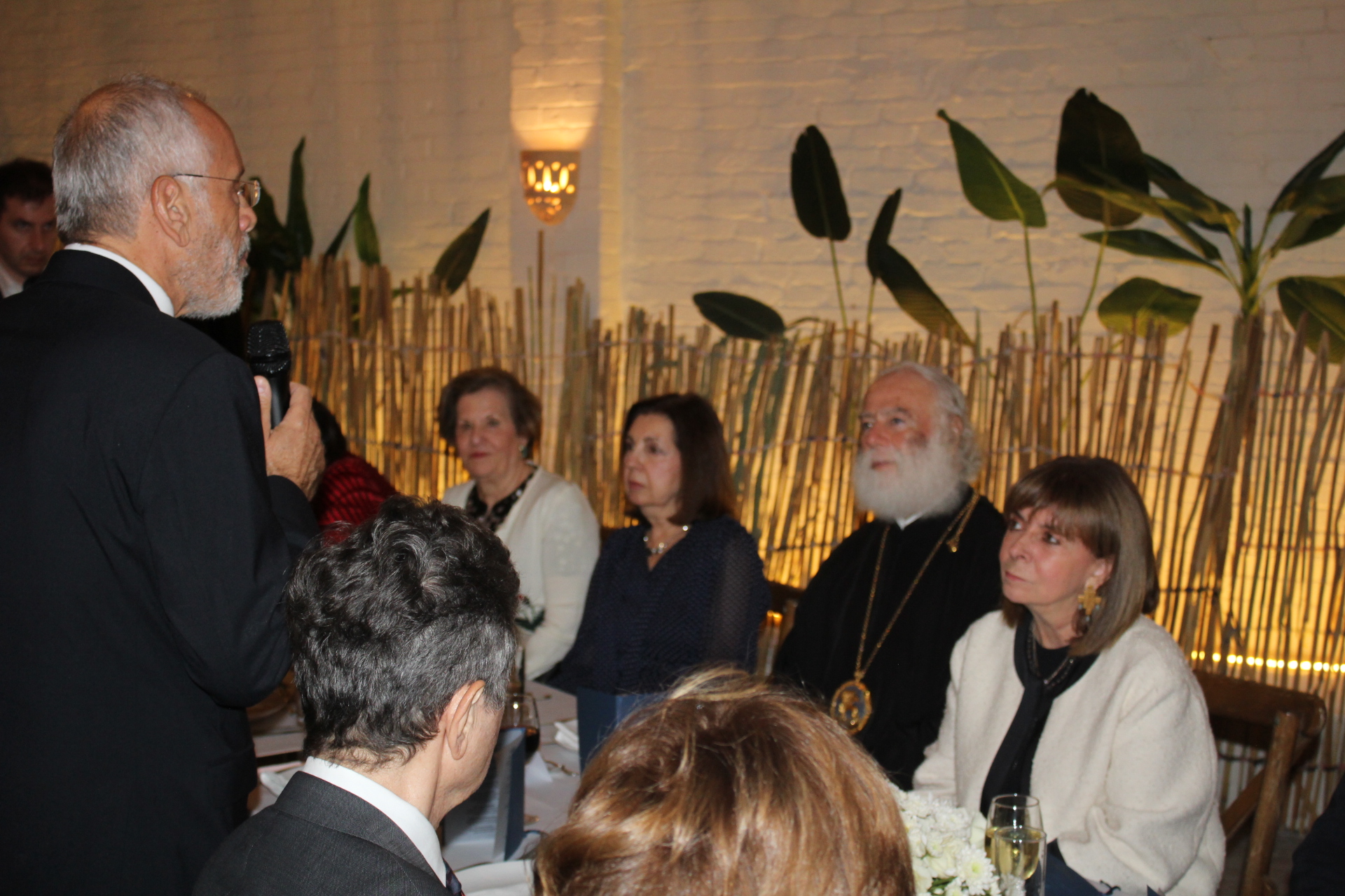 Μόλις ο Μακαριότατος εισήλθε εντός της αιθούσης, ευλόγησε το τραπέζι και στη συνέχεια ο οικοδεσπότης Πρέσβυς πήρε το λόγο καλωσορίζοντας την ΠτΔ.