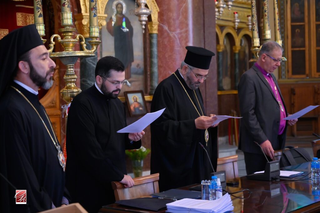 Εν τω πνεύματι τούτῳ, χαιρετίζομεν άπαξ έτι τα μέλη της παρούσης Διεθνούς Μικτής Επιτροπής του Θεολογικού Διαλόγου τούτου και μεταφέρομεν εις άπαντες, διά του εκπροσωπούντος την ημών Μετριότητα Σεβασμιωτάτου Μητροπολίτου Πτολεμαΐδος κ. Παντελεήμονος, Αρχιγραμματέως και Μέλους της περί ημάς Αγίας και Ιεράς Συνόδου, του αόκνως μεριμνήσαντος μετά του Σεβασμιωτάτου Μητροπολίτου Μέμφιδος κ.Νικοδήμου, ἡμετέρου εν Καΐρω Επιτρόπου, του παρ’ ημίν Θεοφιλεστάτου Βοηθού Επισκόπου Ιππώνος κ.Στεφάνου και του Πανοσιολογιωτάτου Καθηγουμένου της φιλοξενούσης υμάς Θεοβαδίστου Πατριαρχικής Μονής Αγίου Γεωργίου, Αρχιμ.κ.Δαμασκηνού Αλαζράι, τον ημέτερον Πασχάλιον χαιρετισμόν και τον Πατριαρχικόν ασπασμόν εν Χριστώ Αναστάντι, ευχόμενοι απόλυτον επιτυχίαν εις τας εργασίας του Διαλόγου διά της Χάριτος του Δομήτορος της Μίας, Αγίας, Καθολικής και Αποστολικής Εκκλησίας, Κυρίου ημών Ιησού Χριστού. Ως ευ παρέστητε!