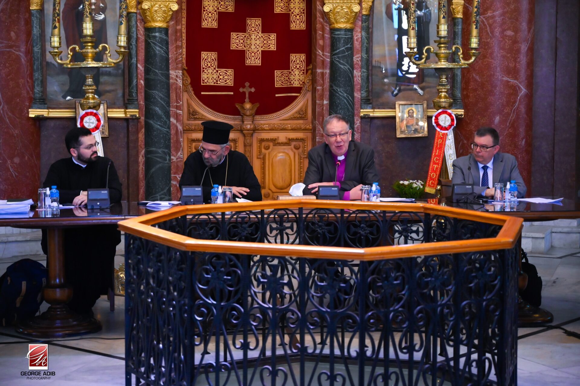 Κατά την αντιφώνησή τους, διαδοχικώς, οι Σεβασμιώτατοι Συμπρόεδροι της Διεθνούς Μικτής Επιτροπής, Μητροπολίτης Κρήνης κ.Κύριλλος και Επίσκοπος κ.Johnn Schneider, εξέφρασαν ευγνώμονες ευχαριστίες προς την ΑΘΜ για την ευγενή και αβραμιαία φιλοξενία στην έδρα του Δευτεροθρόνου Πατριαρχείου, στην Αιγυπτιακή πρωτεύουσα.