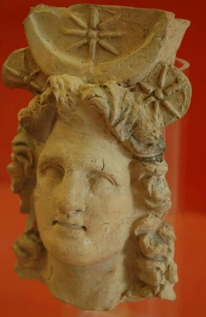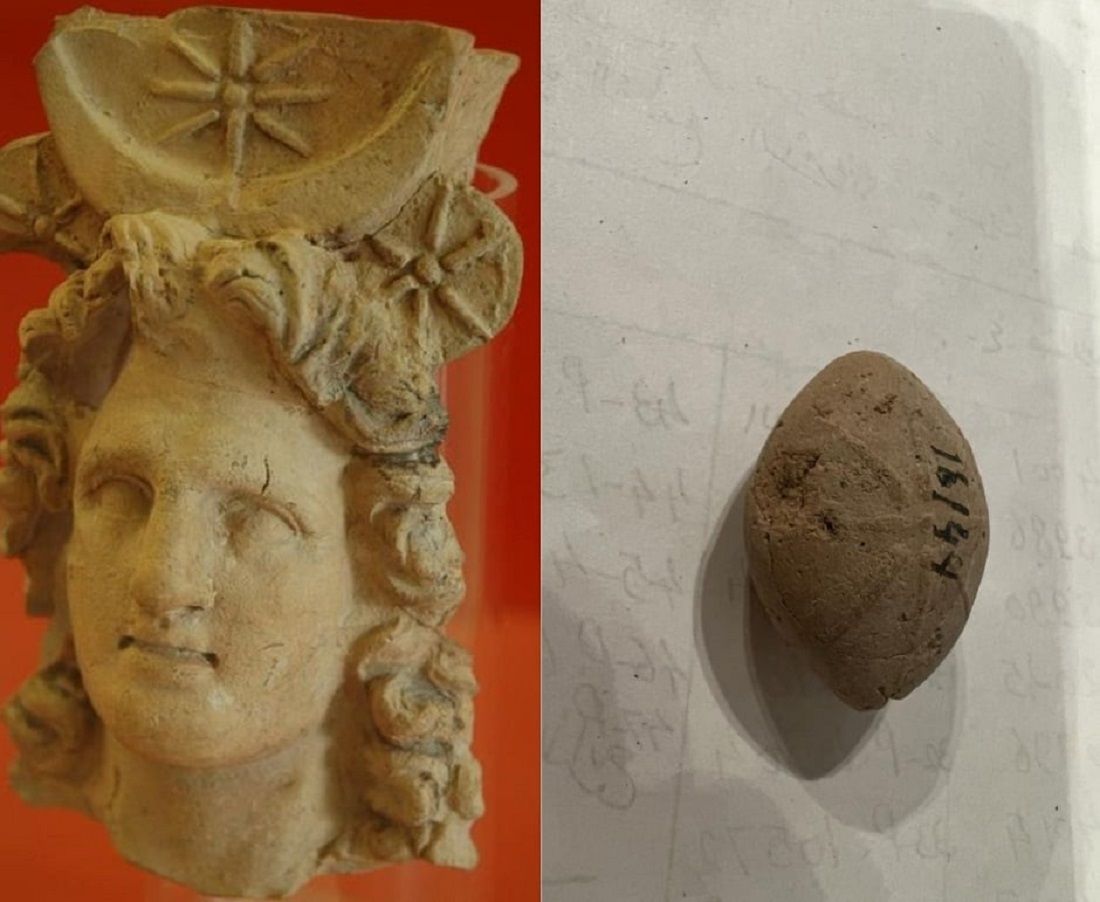«Ανάμεσα στα πέτρινα βλήματα σφενδόνας του Μουσείου σώζεται και ένα πήλινο, με αναθηματικό χαρακτήρα, που προέρχεται από τη νεκρόπολη του Σάτμπυ. Το πιο σπουδαίο χαρακτηριστικό του είναι πως φέρει ενεπίγραφο ένα αστέρι με 7 ακτίνες. Το μοτίβο αυτό πρωτοεμφανίστηκε στην τέχνη των Σουμερίων, Ασσυρίων και Βαβυλωνίων σχετιζόμενο με την θεά Ινάννα. Ενδέχεται αυτό το αστέρι να είναι αστρονομικό ή αστρολογικό σύμβολο. Αργότερα, υιοθετήθηκε από τους Έλληνες και από τους Διαδόχους του Μεγάλου Αλεξάνδρου, εν προκειμένω από τη Δυναστεία των Πτολεμαίων. Χαρακτηριστικά παραδείγματα τέτοιων συμβόλων βρίσκουμε στην ελληνιστική τέχνη, όπως για παράδειγμα η πήλινη κεφαλή του Μ. Αλεξάνδρου από το Musιes royaux d’Art et d’Histoire στις Βρυξέλλες η οποία είχε βρεθεί στην Αμισό του Πόντου. Στην Άμισο κατά τη διάρκεια βασιλείας του Μιθριδάτη ΣΤ’ του Ευπάτορα (132 π.Χ. – 63 π.Χ.), πολλά τέτοια τεχνουργήματα μορφών από πηλό είχαν κατασκευαστεί σε τοπικό εργαστήριο. Ο Μέγας Αλέξανδρος παρουσιάζεται στο τύπο του Κοσμοκράτορα, φορώντας ως στέμμα τους 3 ρόδακες με το χαρακτηριστικό σύμβολο του άστρου, ενώ στον μεσαίο ρόδακα εικονίζεται και η ημισέληνος», σημειώνει ο κ. Μανιώτης.