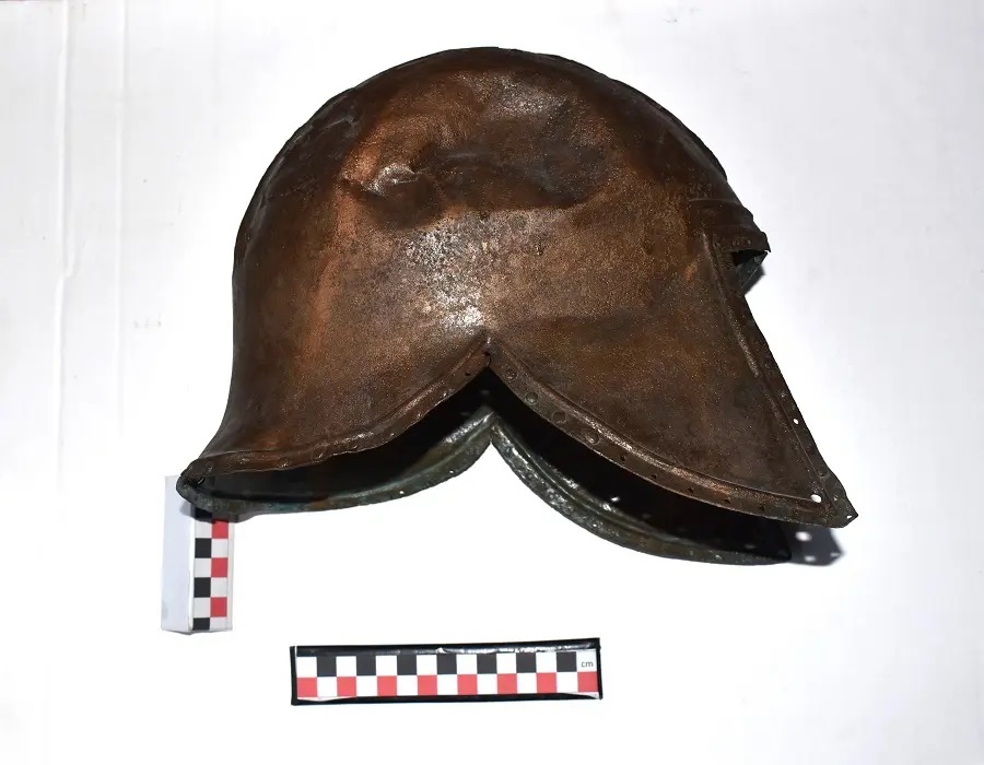 Ένα από τα πιο ενδιαφέροντα όπλα είναι ένα χάλκινο κράνος, τυχαίο εύρημα, για το οποίο οι αρχαιολόγοι δεν γνωρίζουν την ακριβή τοποθεσία προέλευσής του.