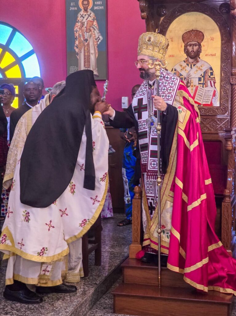 Eκ μέρους των Κληρικών της Μητροπόλεως, τον Σεβασμιώτατο εκφώνησε ο Αρχιμανδρίτης π. Andrew Aondofa Ioraver.