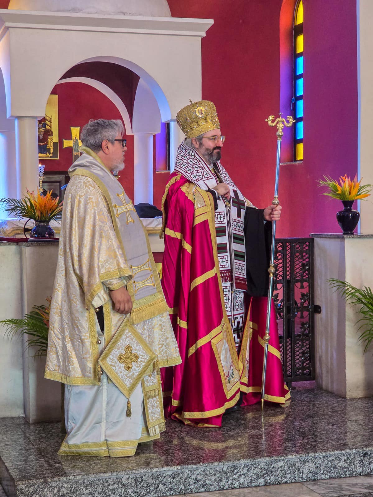 Κατά τη διάρκεια της Θείας Λειτουργίας, τα ιερά αναλόγια κόσμησαν τα μέλη της εκκλησιαστικής χορωδίας του Καθεδρικού Ναού, τα οποία απέδωσαν εξαιρετικά με την πρωτότυπη παραδοσιακή μελωδία όλους τους ύμνους.