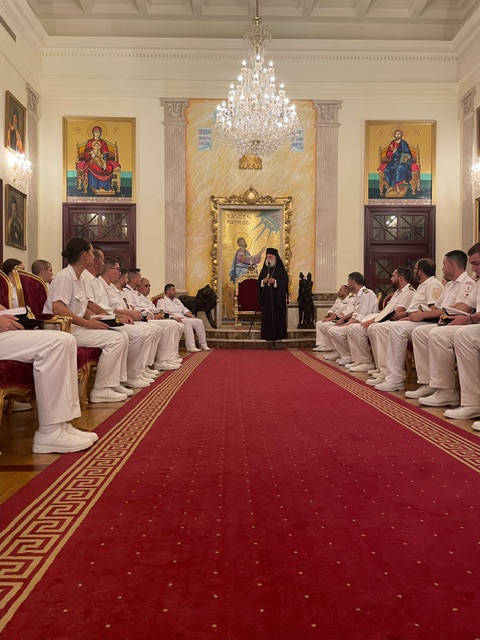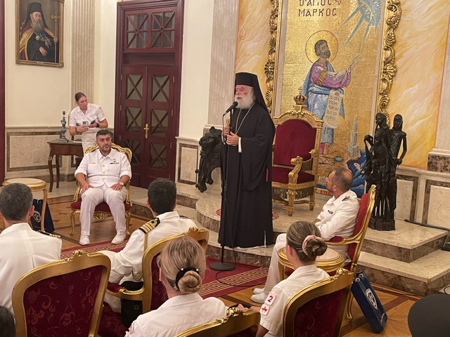 Κατά την υποδοχή των ανδρών του Πολεμικού Ναυτικού o Μακαριώτατος Πάπας και Πατριάρχης Αλεξανδρείας και πάσης Αφρικής κ.κ. Θεόδωρος Β΄ ανεφέρθη στην ιστορική διαδρομή της Αλεξανδρινής Εκκλησίας και στην σύγχρονη καρποφόρο παρουσία και ιεραποστολική δράση Της στην Αφρική.