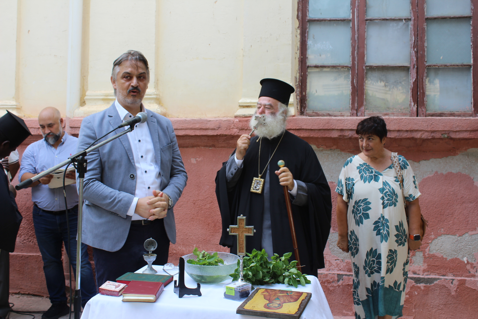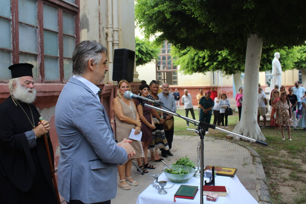 Μετά τα ανάλογα, ένεκα της ημέρας αναγνώσματα της βυζαντινής ορθοδοξίας,  ο Μακαριώτατος ράντισε το σύνολο των παρευρισκόμενων με τα φύλλα βασιλικού βουτηγμένα στο αγιόνερο και ευχήθηκε σε όλους δύναμη, υγεία και καλά μαθήματα. Μεταξύ άλλων ανέφερε τα εξής: