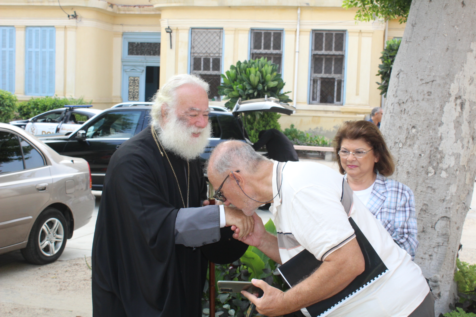 Στη συνέχεια ο Μακαριώτατος φωτογραφήθηκε με όλους τους μαθητές και κατευθύνθηκε στα Γραφεία της Ελληνικής Κοινότητας Αλεξανδρείας μαζί με τον Γενικό Πρόξενο, συνοδευόμενοι από τον Γενικό Γραμματέα της ΕΚΑ Κ. Νικόλαο Κατσιμπρή,  όπου εκεί παρευρίσκετο και ο Αντιπρόεδρος κ. Νικόλαος Κόπελος.