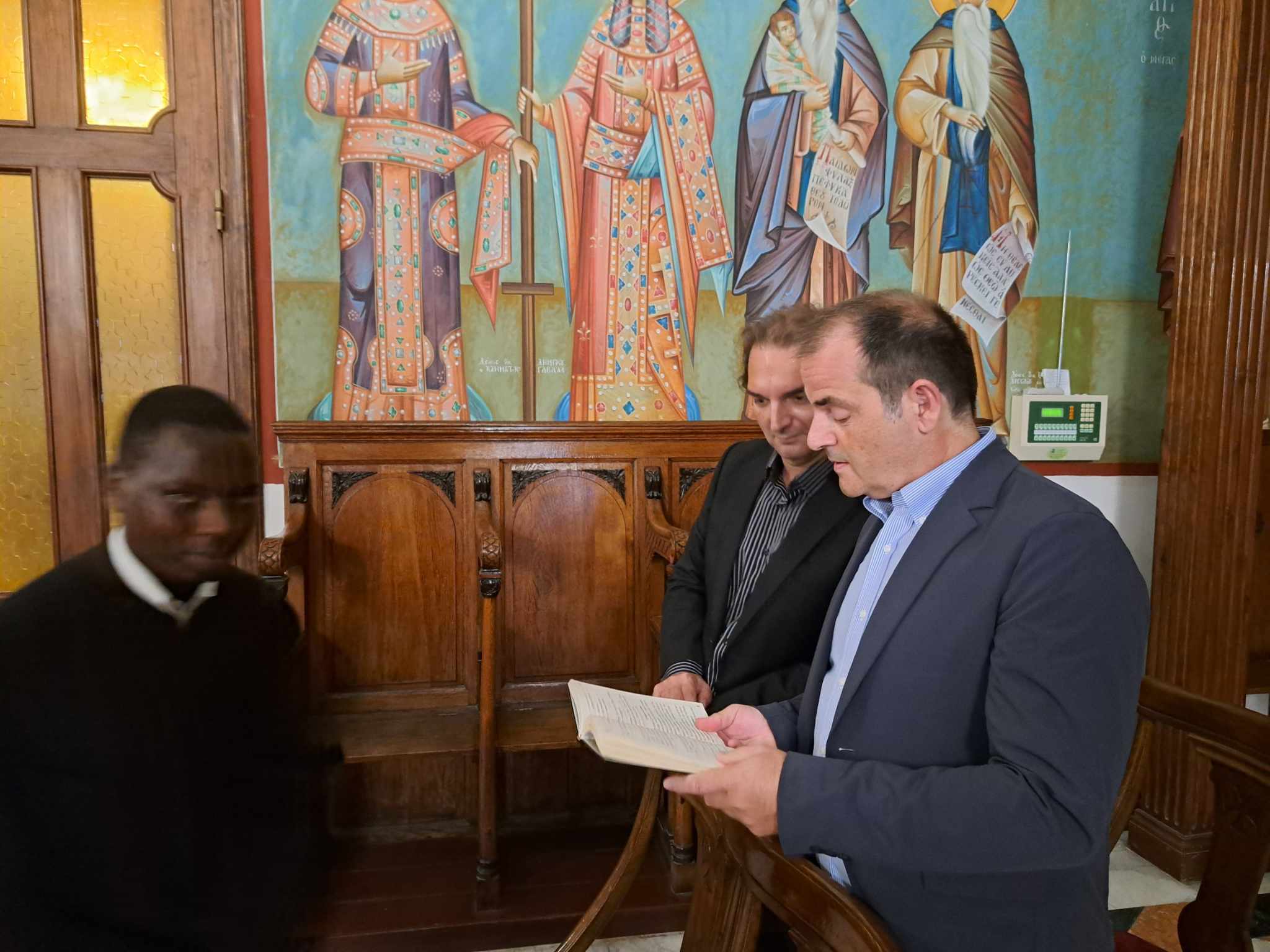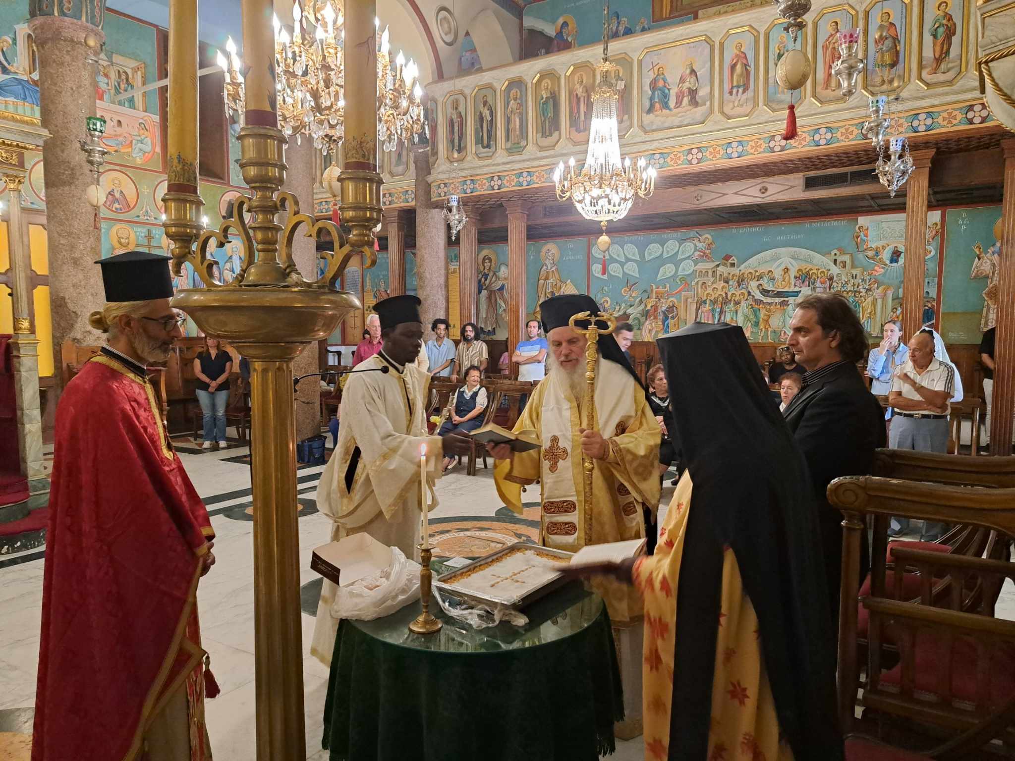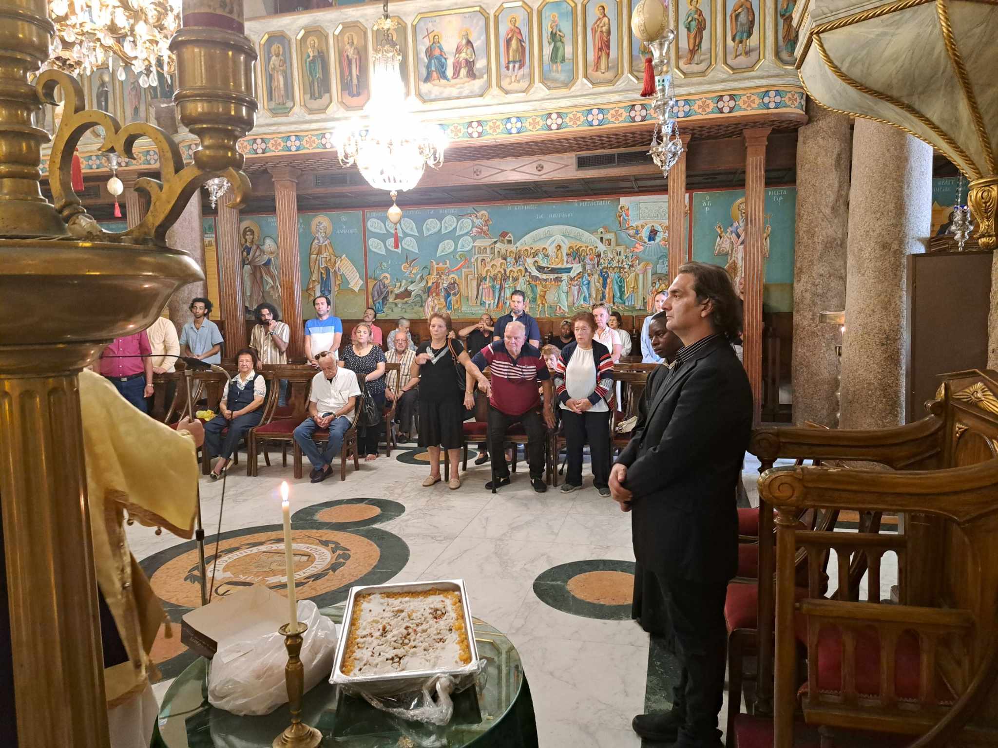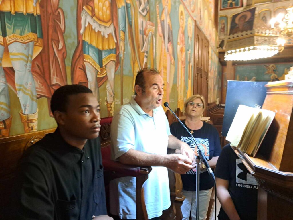 Στο ψαλτήρι οι βυζαντινές νότες ακούστηκαν από τον ιεροψάλτη κ. Ιωάννη – γνωστό από την παλαιότερη θητεία του στις θρησκευτικές τελετουργίες της  Αλεξάνδρειας – με την αρωγή της κας Δέσποινας Σολομωνίδου  και του υιού του προαναφερθέντος ιεροψάλτου.