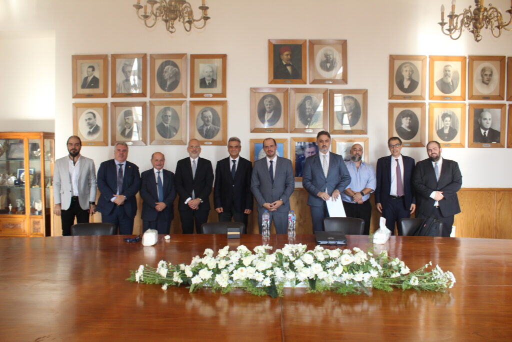 Τον υποδέχθηκαν ο Α΄ Αντιπρόεδρος της Ελληνικής Κοινότητας κ. Ιωάννης Παπαδόπουλος, ο Β΄ Αντιπρόεδρος κ. Νικόλαος Κόπελος, ο Γενικός Γραμματέας κ. Νικόλαος Κατσιμπρής, ο Κοινοτικός Επίτροπος κ. Βασίλειος Ζουές και ο Διευθυντής κ. Γεώργιος Μπούλος. Η συνάντηση πραγματοποιήθηκε στην αίθουσα των Μεγάλων Ευεργετών, εκεί όπου δεσπόζουν οι μορφές των αείμνηστων προγόνων, του πάλαι ποτέ ένδοξου Αιγυπτιωτισμού.
