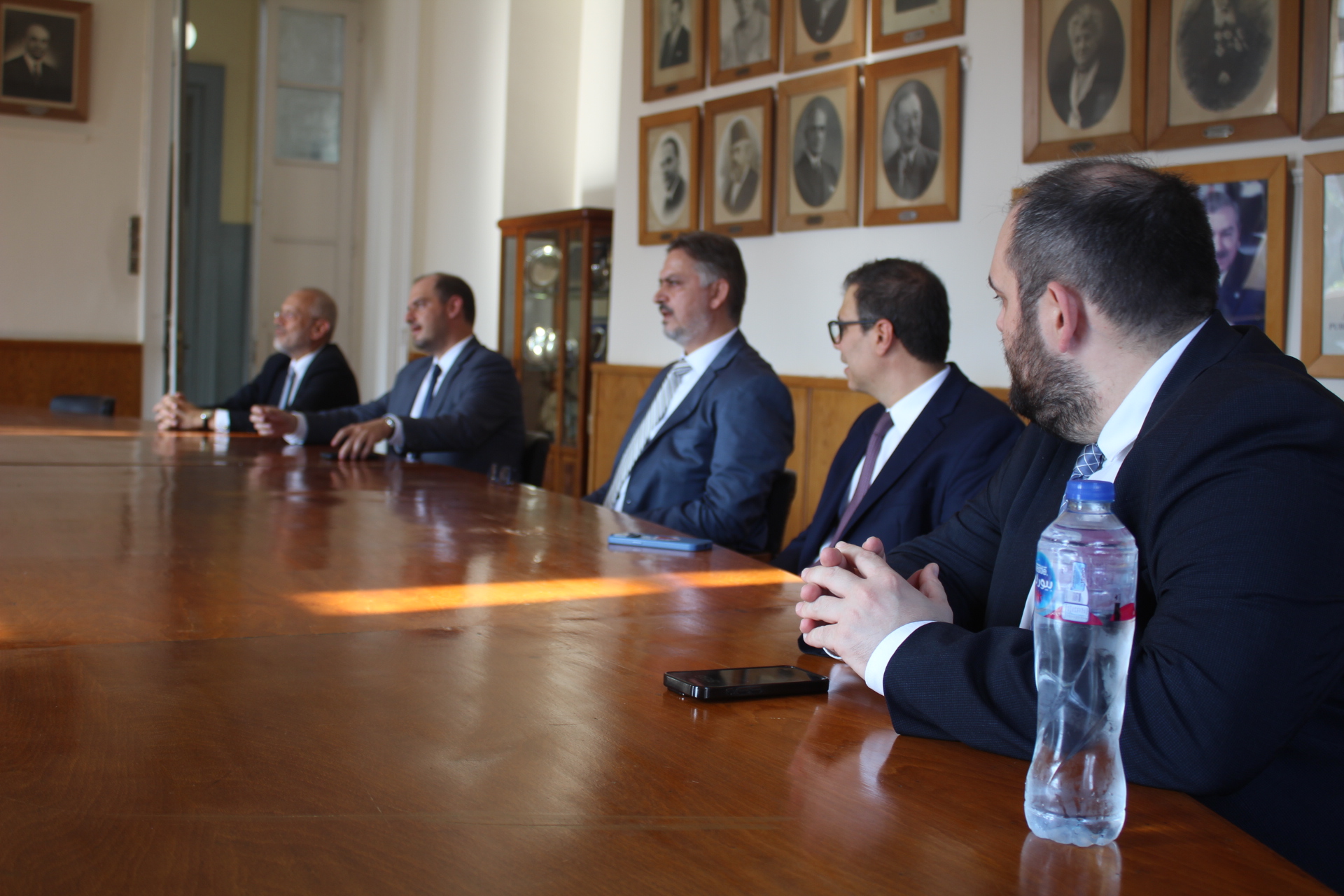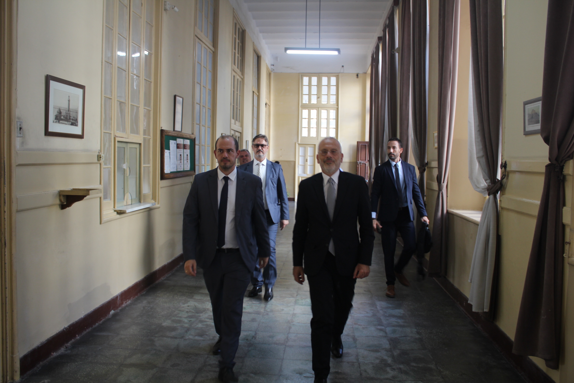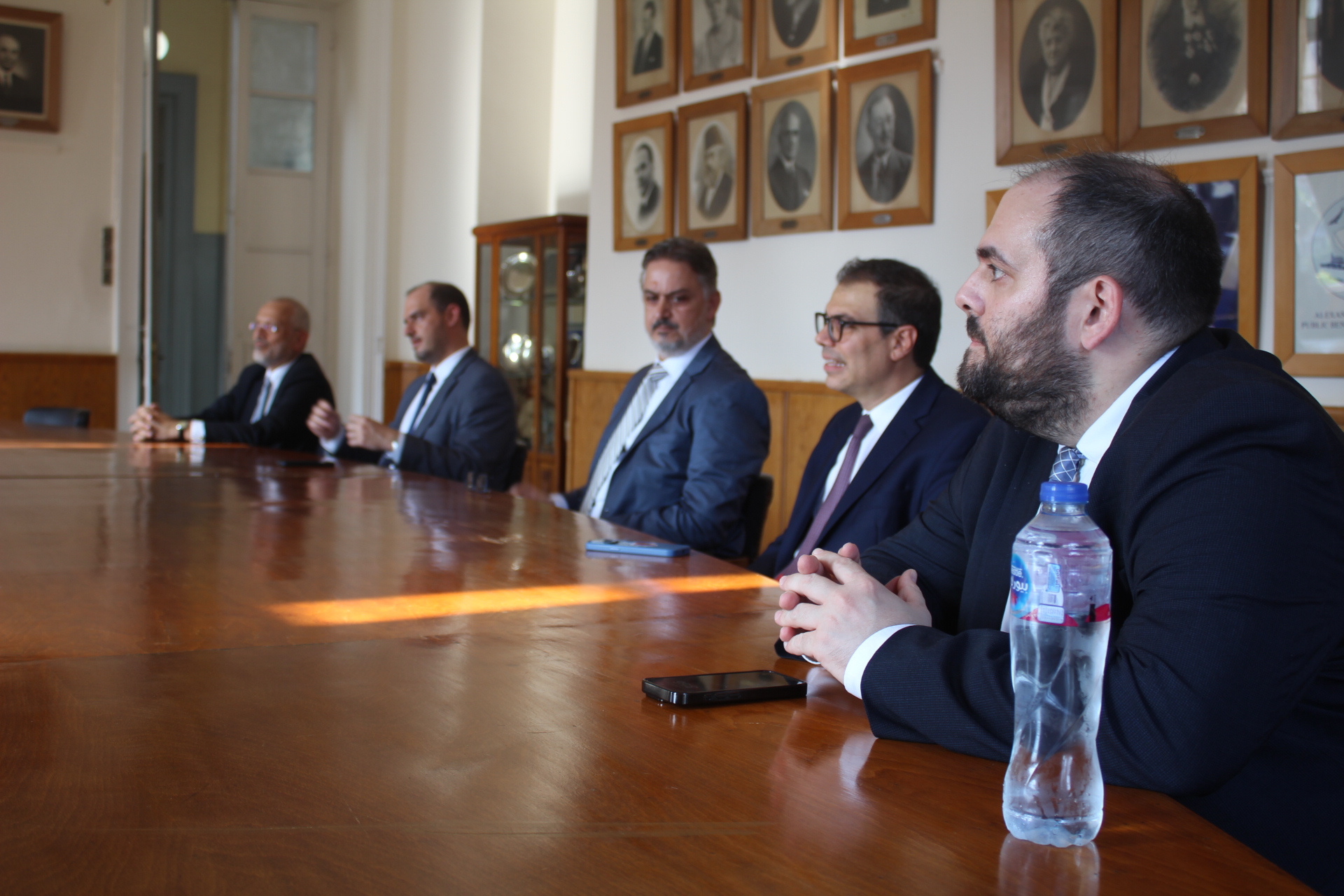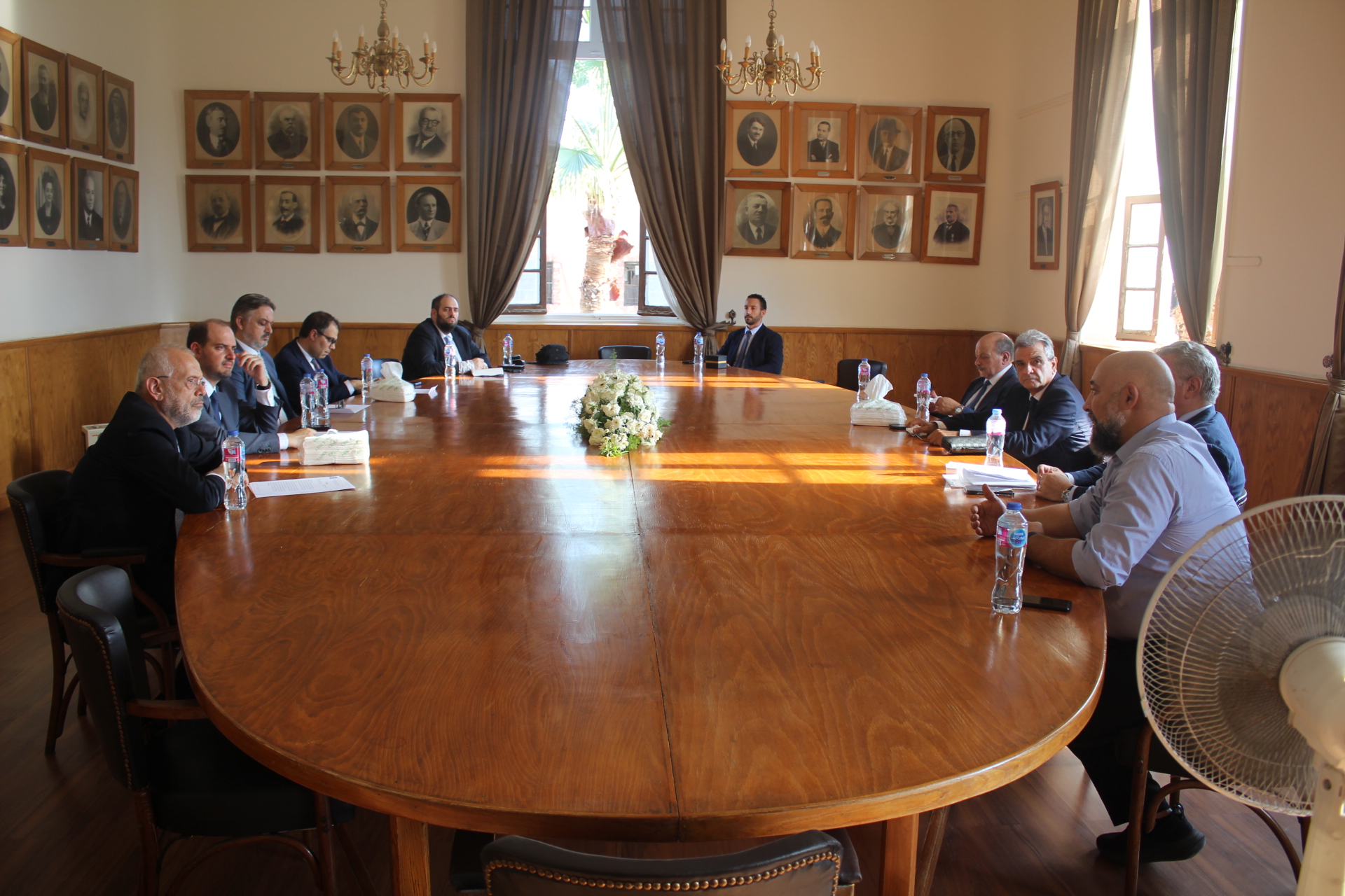 Τον υποδέχθηκαν ο Α΄ Αντιπρόεδρος της Ελληνικής Κοινότητας κ. Ιωάννης Παπαδόπουλος, ο Β΄ Αντιπρόεδρος κ. Νικόλαος Κόπελος, ο Γενικός Γραμματέας κ. Νικόλαος Κατσιμπρής, ο Κοινοτικός Επίτροπος κ. Βασίλειος Ζουές και ο Διευθυντής κ. Γεώργιος Μπούλος. Η συνάντηση πραγματοποιήθηκε στην αίθουσα των Μεγάλων Ευεργετών, εκεί όπου δεσπόζουν οι μορφές των αείμνηστων προγόνων, του πάλαι ποτέ ένδοξου Αιγυπτιωτισμού.