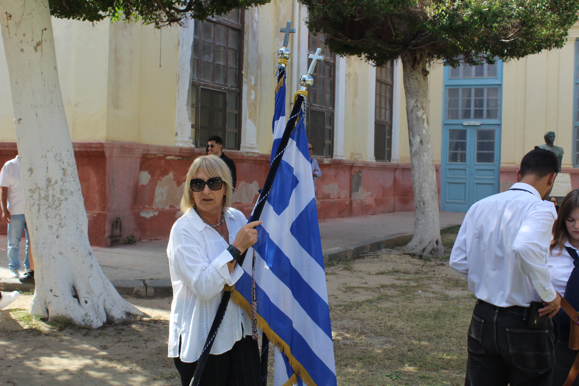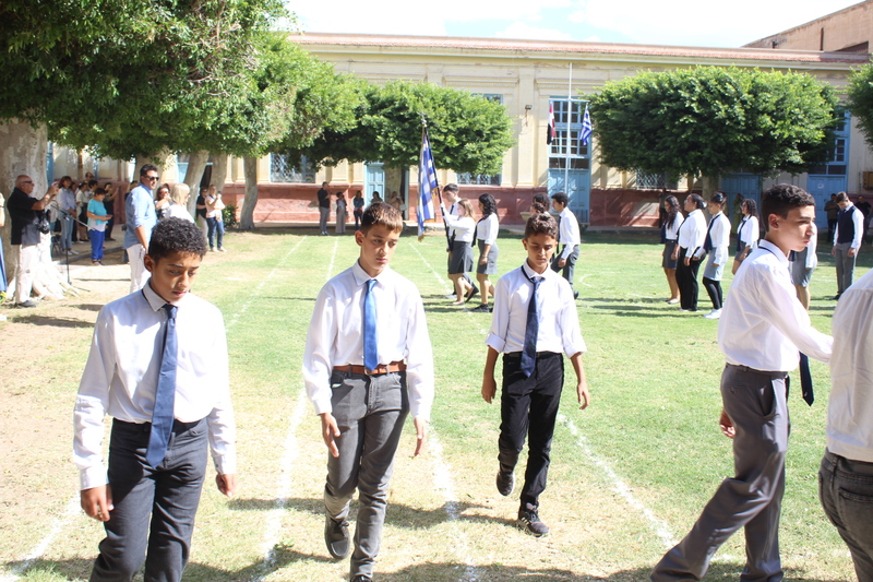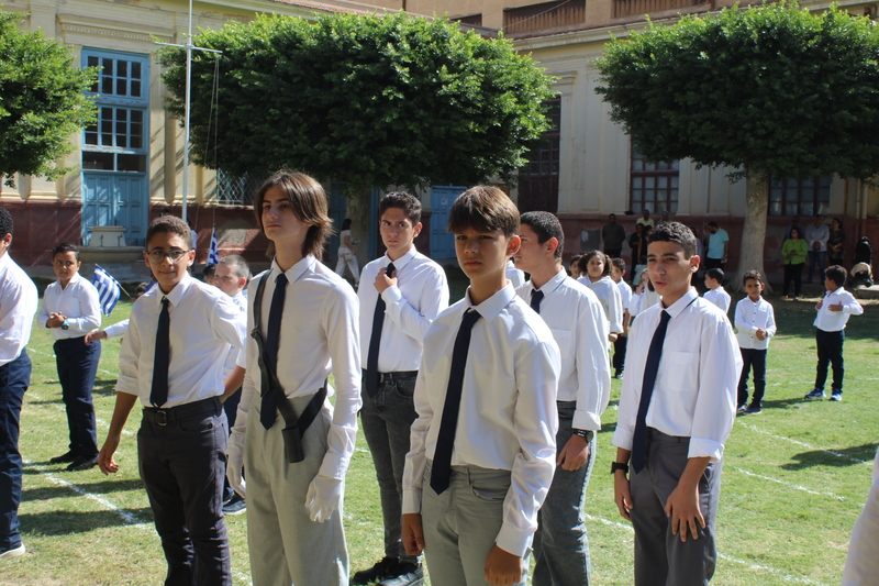 Πως θα μπορούσε όμως να ολοκληρωθεί ένα τιμητικό τελετουργικό για το ΟΧΙ δίχως παρέλαση και χορούς; Στον προαύλιο χώρο του Τοσιτσαίου Πρατσίκειου Δημοτικού, το σκηνικό διαδραματίστηκε ωσάν σε υπαίθριο θέατρο, όπου οι θεατές ήταν «ακροβολισμένοι» ενώ οι μαθητές προεξαρχόντων των μπόμπιρων του Νηπιαγωγείου παρήλαυναν μαζί με την Διευθύντριά τους κα Λένα Βοστάνη, εν μέσω χειροκροτημάτων και επαινετικών ιαχών. Μετά τους εθνικούς ύμνους των δύο πατρίδων μας, της Ελλάδας και της Αιγύπτου παρεδόθησαν οι σημαίες στους σημαιοφόρους και ακολούθως στους παραστάτες. Η εκπαιδευτικός κα Μπέτυ Ζέρβα ήταν υπεύθυνη της παρέλασης στα μεγάλα παιδιά και όταν η «γιορτινή επίδειξη» πραγματοποιήθηκε τρισάκις, άρχισαν οι χοροί πρώτα με τα παιδιά του Δημοτικού και στη συνέχεια με αυτά του Γυμνασίου Λυκείου.