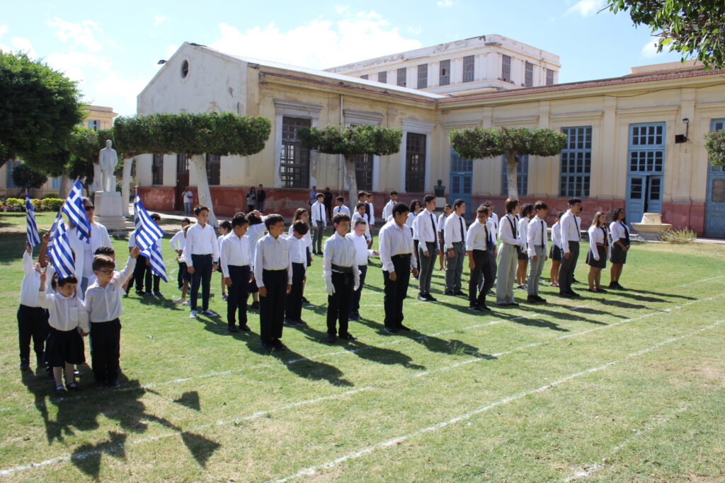 Τα νήπια, οι έφηβοι, οι εκπαιδευτικοί, οι γονείς και οι θεσμικοί εκπρόσωποι της παροικίας την 25η Οκτωβρίου 2024 ημέρα Παρασκευή και ώρα 10 – 12 το πρωί, βίωσαν στην αίθουσα “Ιουλία Σαλβάγου” στο Ελληνικό Τετράγωνο, “τι εστί εθνική εορτή” στην παροικία των Αιγυπτιωτών Ελλήνων.