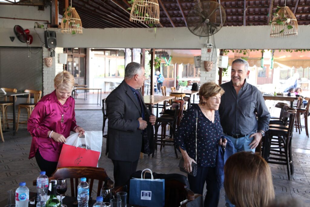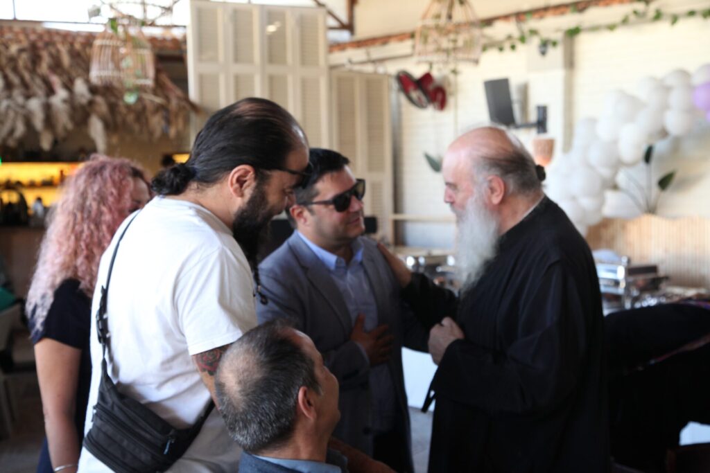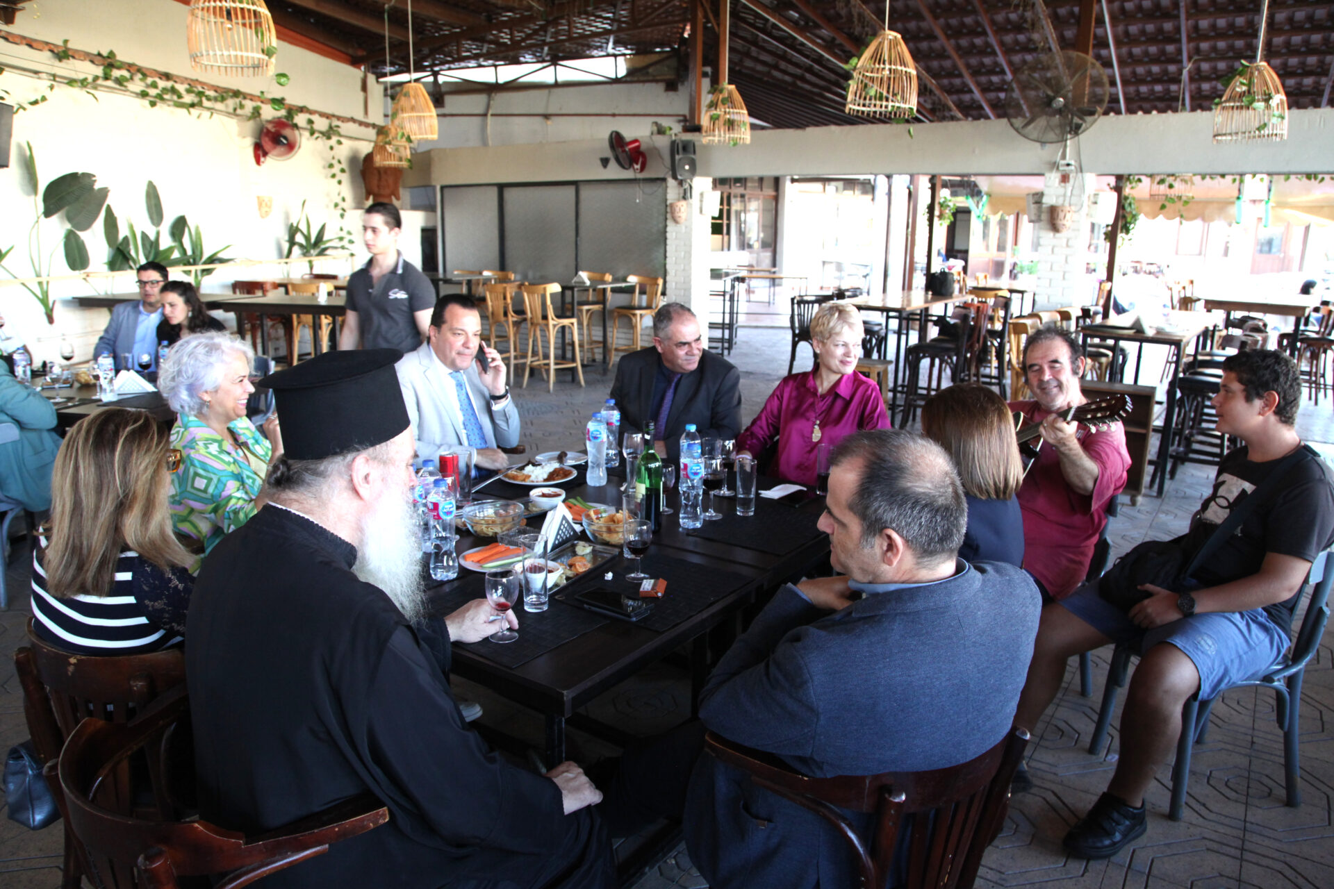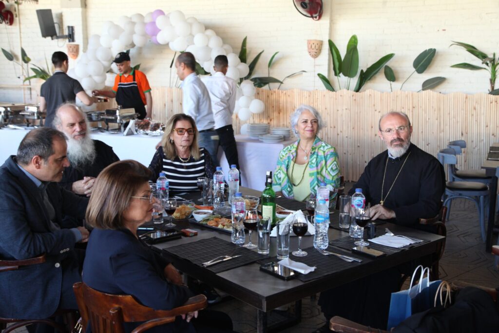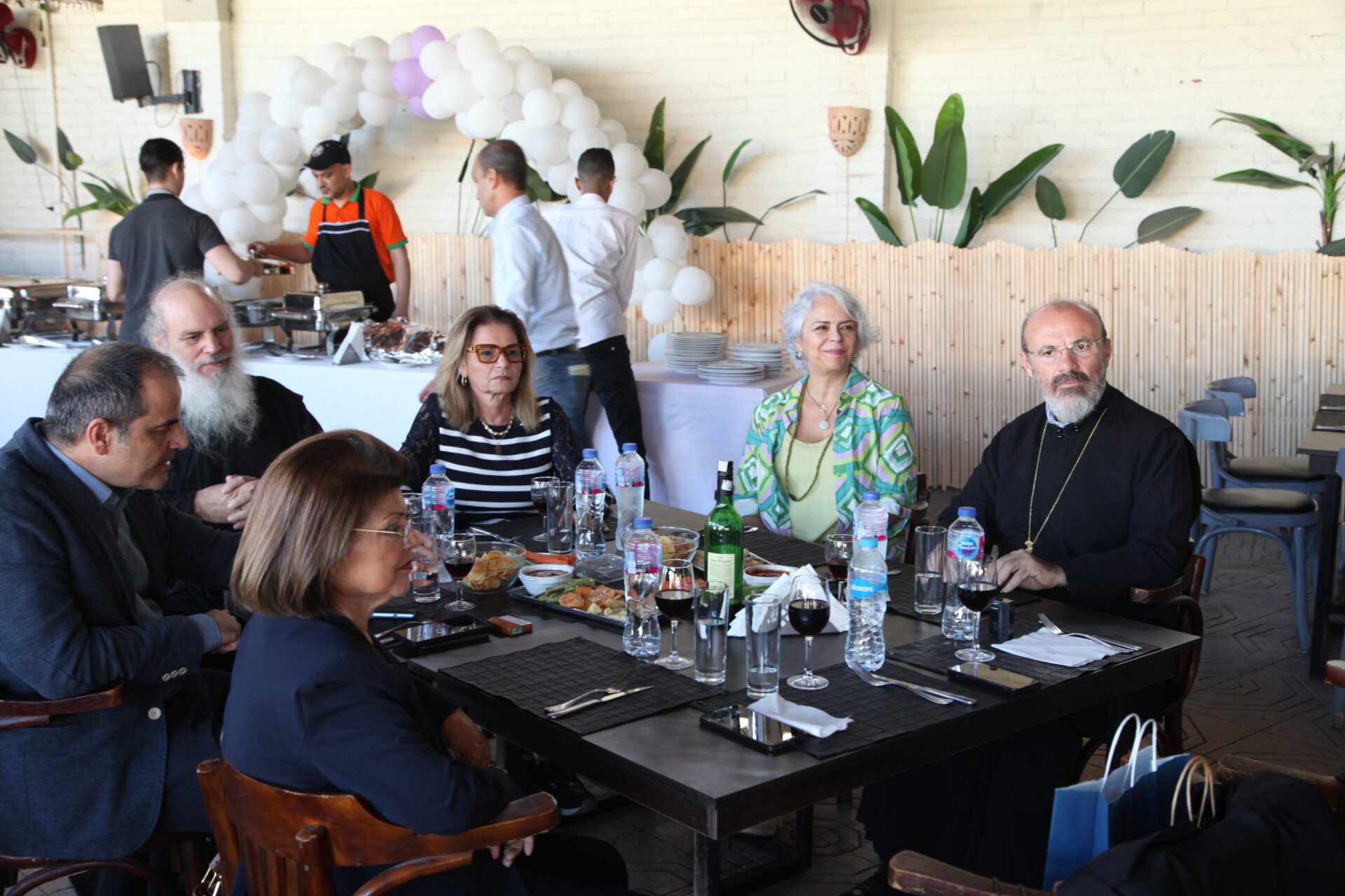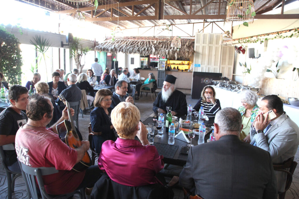 Στο αποχαιρετιστήριο τραπέζι των δύο αγαπητών Πλοιάρχων, παρευρέθησαν οι κάτωθι συνδαιτυμόνες: Ο Σεβασμιώτατος Μητροπολίτης Πηλουσίου κ. Νάρκισσος – Πατριαρχικός Επίτροπος, ο Θεοφιλέστατος Μητροπολίτης Ταμιάθεως κ. Γερμανός Προϊστάμενος της Ιεράς Μονής του Οσίου Σάββα του Ηγιασμένου, ο Πρόεδρος της Ελληνικής Κοινότητας Αλεξανδρείας κ. Ανδρέας Βαφειάδης, ο Αντιπρόεδρος Α΄ κ. Νικόλαος Κόπελος μετά της συζύγου του Σούζης, ο Αναπληρωτής Γενικός Γραμματέας κ. Δημήτριος Κάβουρας μετά της συζύγου του Μάρτα, ο Διευθυντής κ. Γιώργος Μπούλος μετά της συζύγου του Αλίν, η Πρόεδρος του ΕΝΟΑ και Πτολεμαίου Α΄ κα. Λιλίκα Θλιβίτου, η Πρόεδρος του Λυκείου Ελληνίδων Αλεξανδρείας κα. Αλίκη Αντωνίου, η Διευθύντρια του Ελληνικού Ιδρύματος Πολιτισμού Αλεξανδρείας κα. Σταυρούλα Σπανούδη, η Γενική Γραμματέας της Κυπριακής Αδελφότητας κα. Μαρία Παυλίδη, η Αρχαιολόγος Διευθύντρια του Ινστιτούτου Ελληνικού και Αλεξανδρινού Πολιτισμού κα. Καλλιόπη Παπακώστα, απ΄ το Γραφείο ΑΚΑΜ η κα. Βέρα Ταγλάκη, ο πρώην Αντιπρόεδρος της ΕΚΑ κ. Μιχάλης Αρσλανίδης, η Επικεφαλής των Οδηγών Αλεξανδρείας κα Μαίρη Κάβουρα, η κα Ελένη Άστωρ υπεύθυνη Κοινοτικών Ξενώνων, ο κ. Γεώργιος Άστωρ μετά της συζύγου του Όλγας, ο νομικός κ. Alaa Saad, οι εκπαιδευτικοί κ. Πάνος Θεοδώρου, κα. Ελένη Παπαθανασίου και κ. Δημήτριος Στογιάννης μετά της συζύγου του Δήμητρας και του υιού τους Ρωμανού, ο κ. Δημήτριος Βαφειάδης και η μητέρα αυτού κα. Κική Βαφειάδη, οι εργαζόμενες στην ΕΚΑ κα. Μαίρη Μαυρίκου και κα. Ουρανία Πετράκη, ο κ. Πέτρος Λούτσης και σύσσωμη η Πατριαρχική Σχολή, προεξαρχόντων των Πατέρων Μάρκου και Χριστοφόρου.
