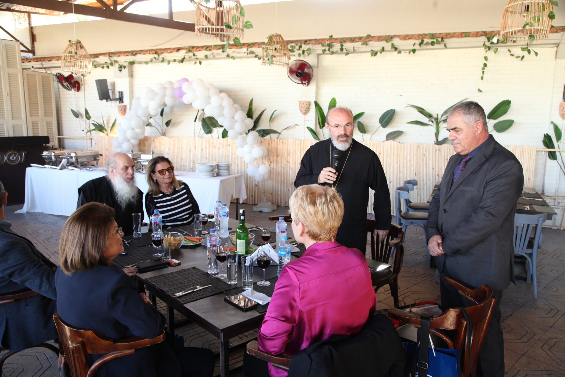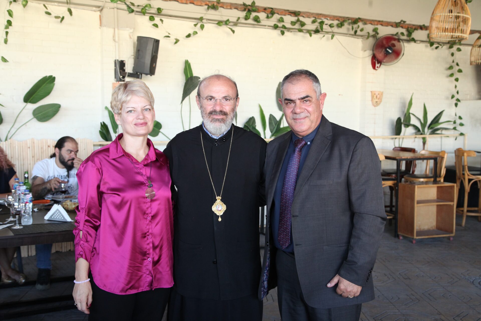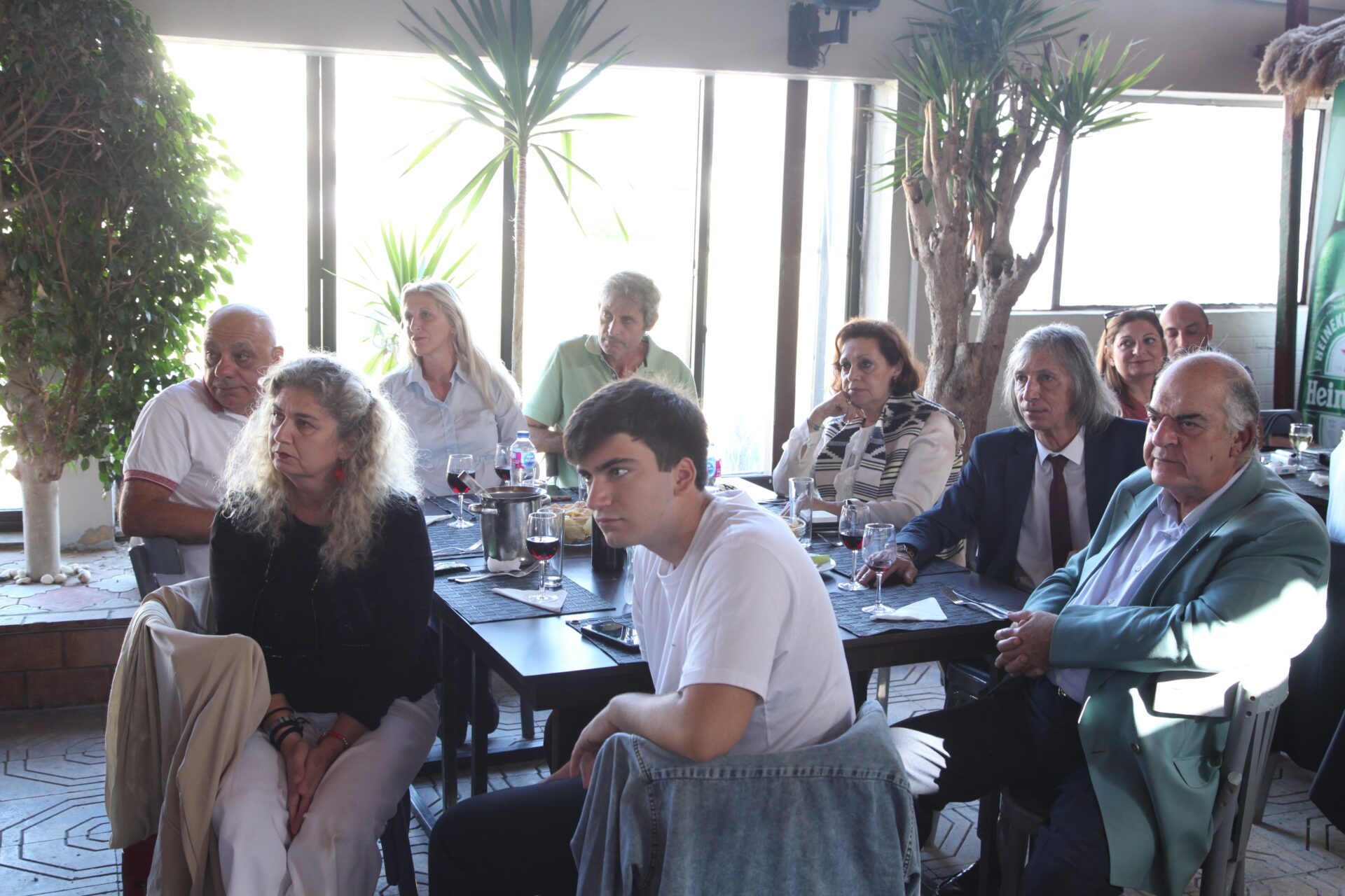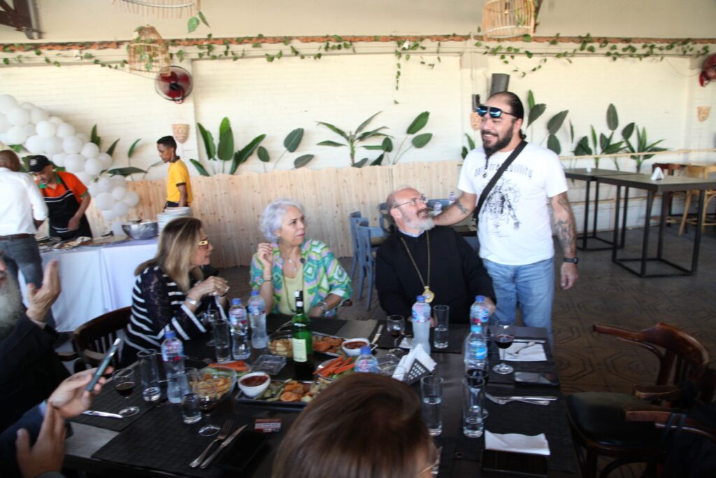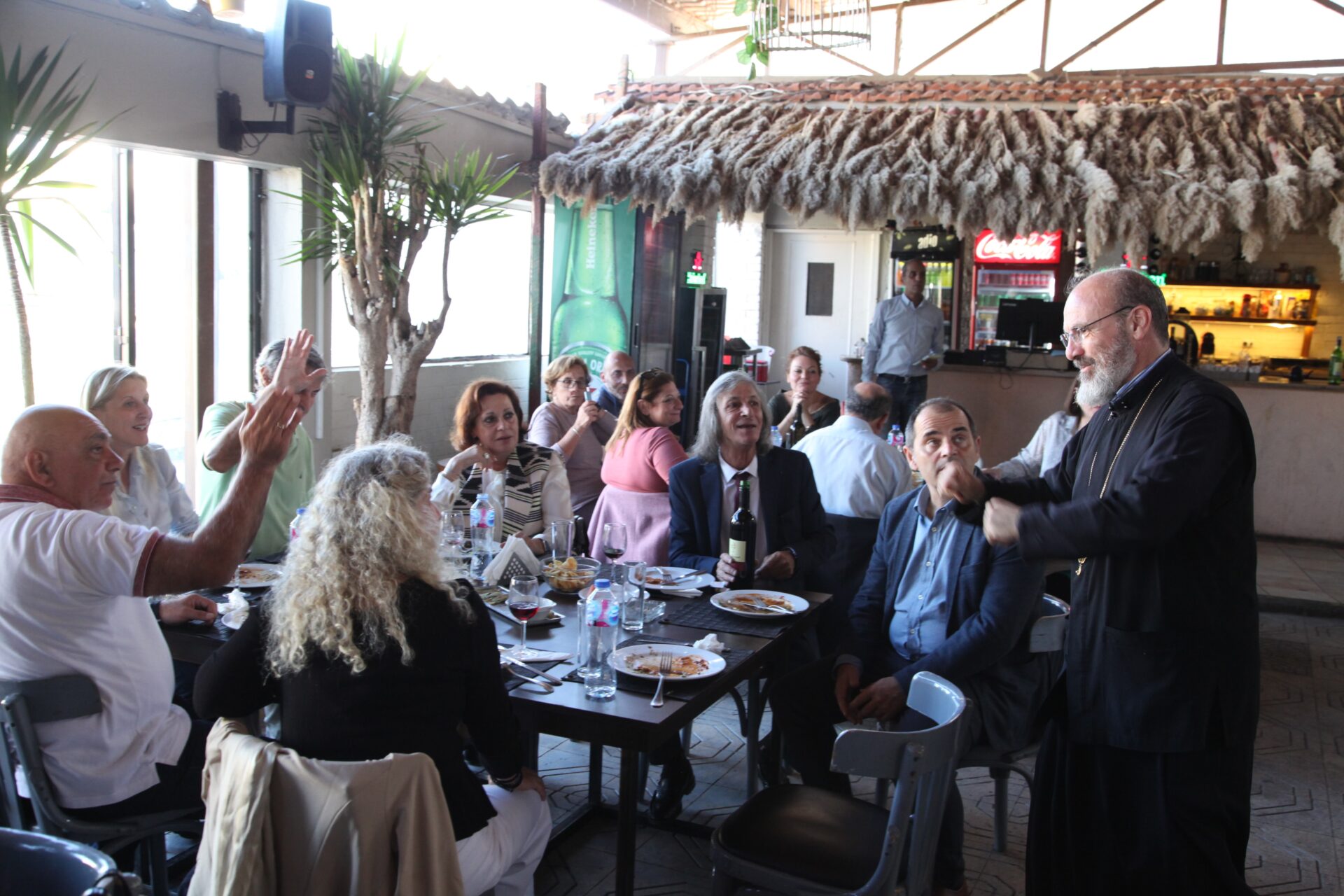 Στο αποχαιρετιστήριο τραπέζι των δύο αγαπητών Πλοιάρχων, παρευρέθησαν οι κάτωθι συνδαιτυμόνες: Ο Σεβασμιώτατος Μητροπολίτης Πηλουσίου κ. Νάρκισσος – Πατριαρχικός Επίτροπος, ο Θεοφιλέστατος Μητροπολίτης Ταμιάθεως κ. Γερμανός Προϊστάμενος της Ιεράς Μονής του Οσίου Σάββα του Ηγιασμένου, ο Πρόεδρος της Ελληνικής Κοινότητας Αλεξανδρείας κ. Ανδρέας Βαφειάδης, ο Αντιπρόεδρος Α΄ κ. Νικόλαος Κόπελος μετά της συζύγου του Σούζης, ο Αναπληρωτής Γενικός Γραμματέας κ. Δημήτριος Κάβουρας μετά της συζύγου του Μάρτα, ο Διευθυντής κ. Γιώργος Μπούλος μετά της συζύγου του Αλίν, η Πρόεδρος του ΕΝΟΑ και Πτολεμαίου Α΄ κα. Λιλίκα Θλιβίτου, η Πρόεδρος του Λυκείου Ελληνίδων Αλεξανδρείας κα. Αλίκη Αντωνίου, η Διευθύντρια του Ελληνικού Ιδρύματος Πολιτισμού Αλεξανδρείας κα. Σταυρούλα Σπανούδη, η Γενική Γραμματέας της Κυπριακής Αδελφότητας κα. Μαρία Παυλίδη, η Αρχαιολόγος Διευθύντρια του Ινστιτούτου Ελληνικού και Αλεξανδρινού Πολιτισμού κα. Καλλιόπη Παπακώστα, απ΄ το Γραφείο ΑΚΑΜ η κα. Βέρα Ταγλάκη, ο πρώην Αντιπρόεδρος της ΕΚΑ κ. Μιχάλης Αρσλανίδης, η Επικεφαλής των Οδηγών Αλεξανδρείας κα Μαίρη Κάβουρα, η κα Ελένη Άστωρ υπεύθυνη Κοινοτικών Ξενώνων, ο κ. Γεώργιος Άστωρ μετά της συζύγου του Όλγας, ο νομικός κ. Alaa Saad, οι εκπαιδευτικοί κ. Πάνος Θεοδώρου, κα. Ελένη Παπαθανασίου και κ. Δημήτριος Στογιάννης μετά της συζύγου του Δήμητρας και του υιού τους Ρωμανού, ο κ. Δημήτριος Βαφειάδης και η μητέρα αυτού κα. Κική Βαφειάδη, οι εργαζόμενες στην ΕΚΑ κα. Μαίρη Μαυρίκου και κα. Ουρανία Πετράκη, ο κ. Πέτρος Λούτσης και σύσσωμη η Πατριαρχική Σχολή, προεξαρχόντων των Πατέρων Μάρκου και Χριστοφόρου.