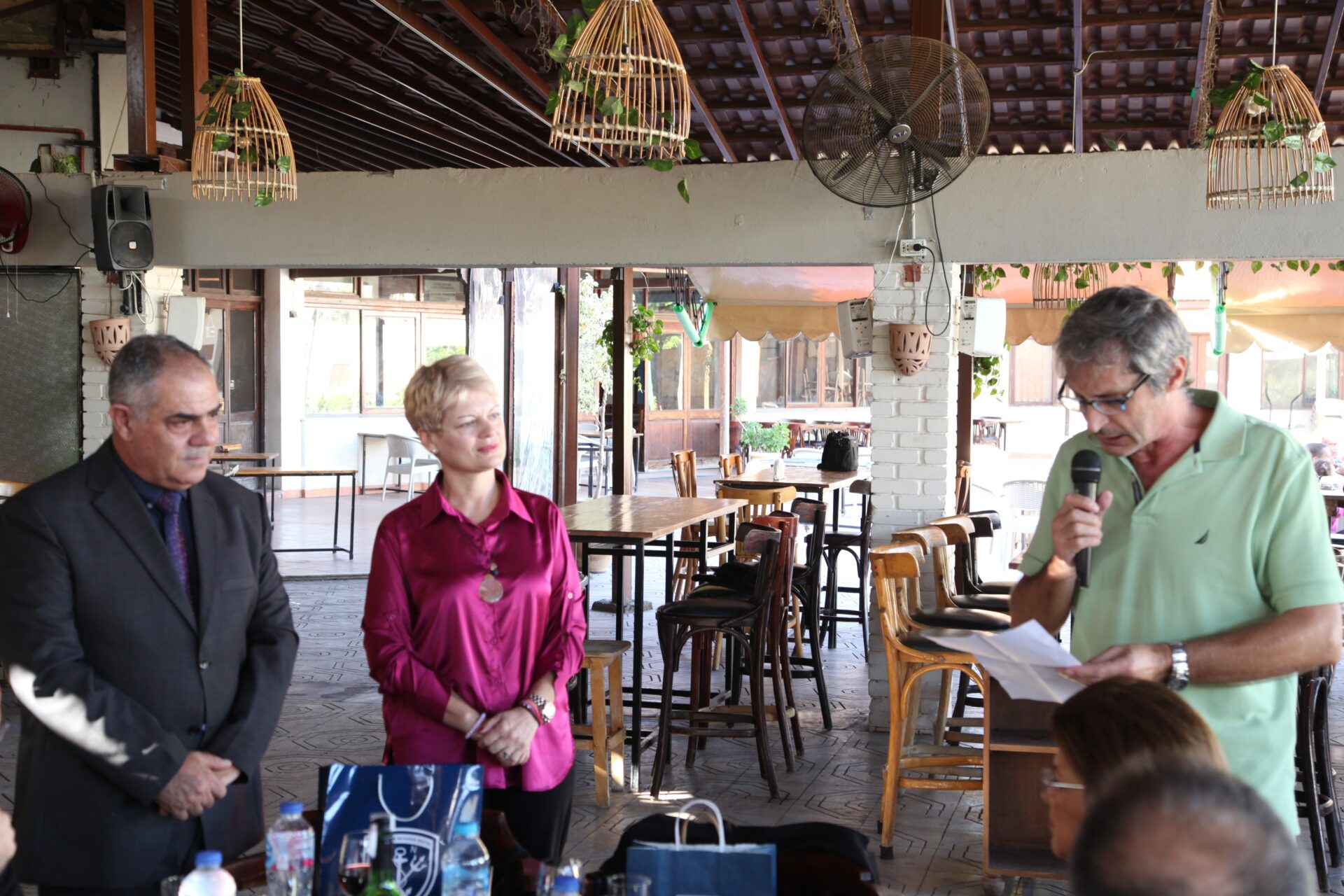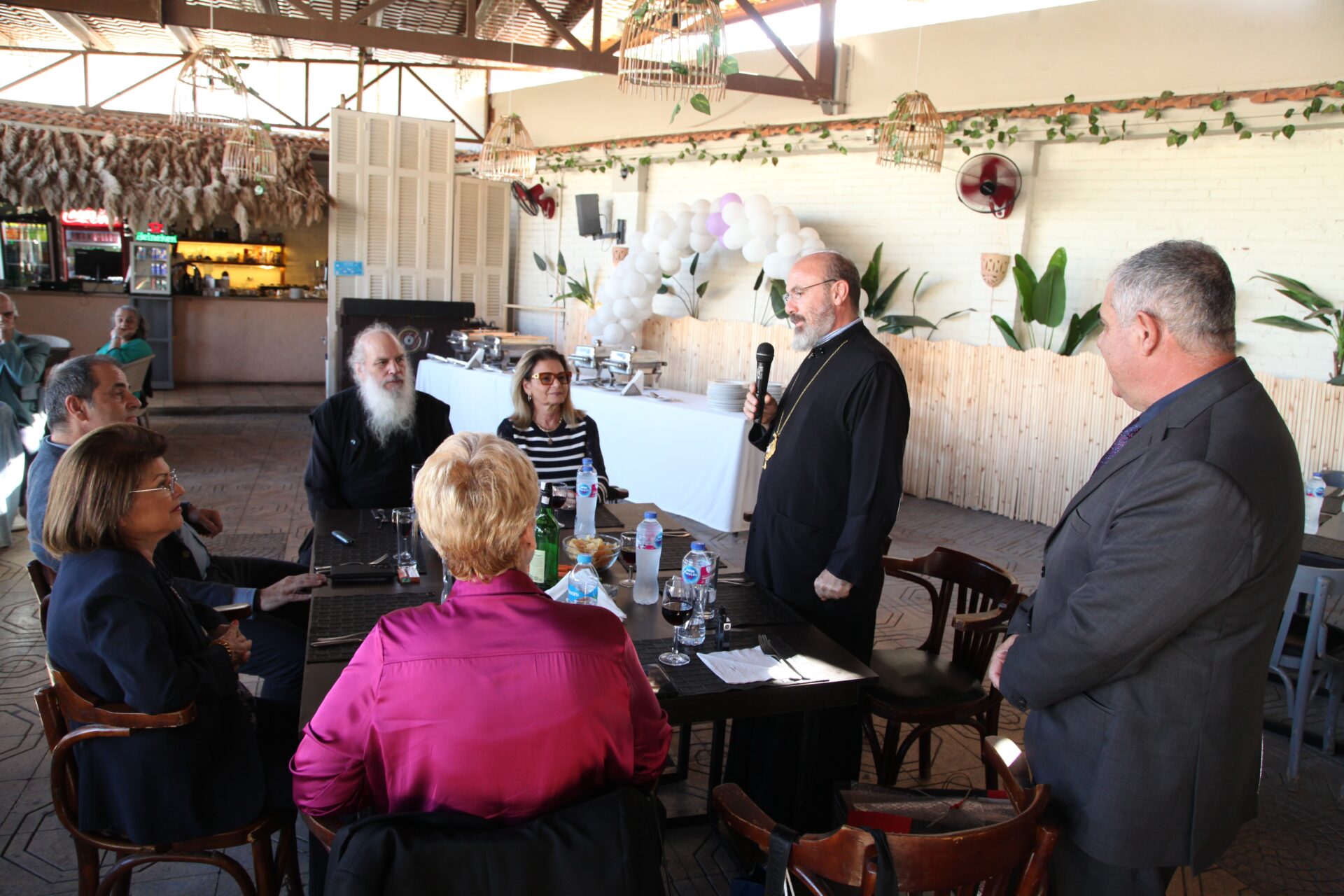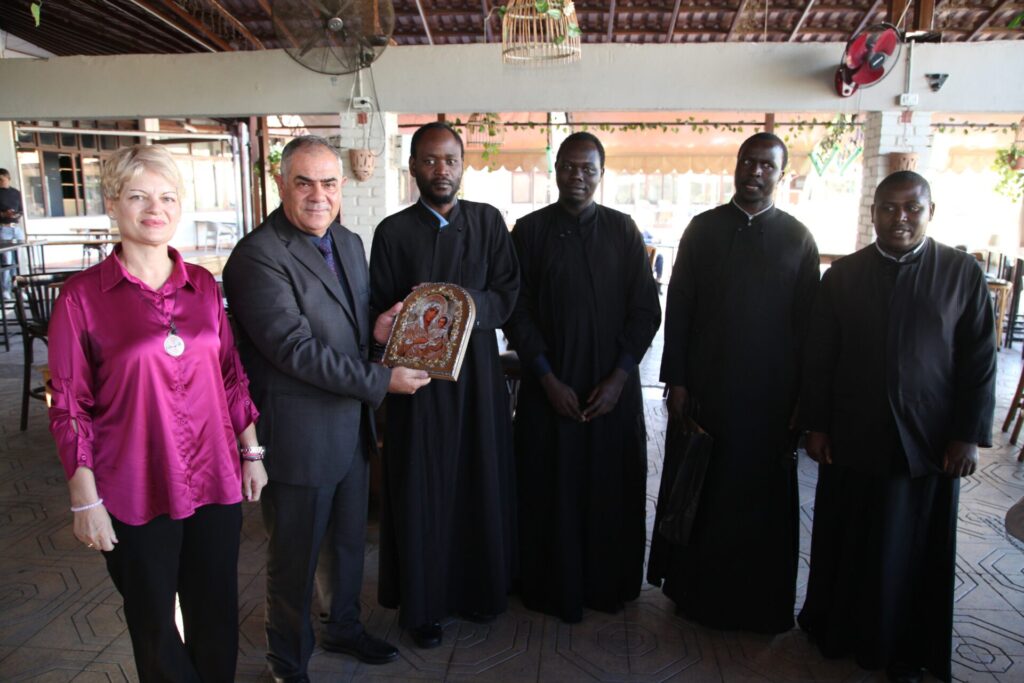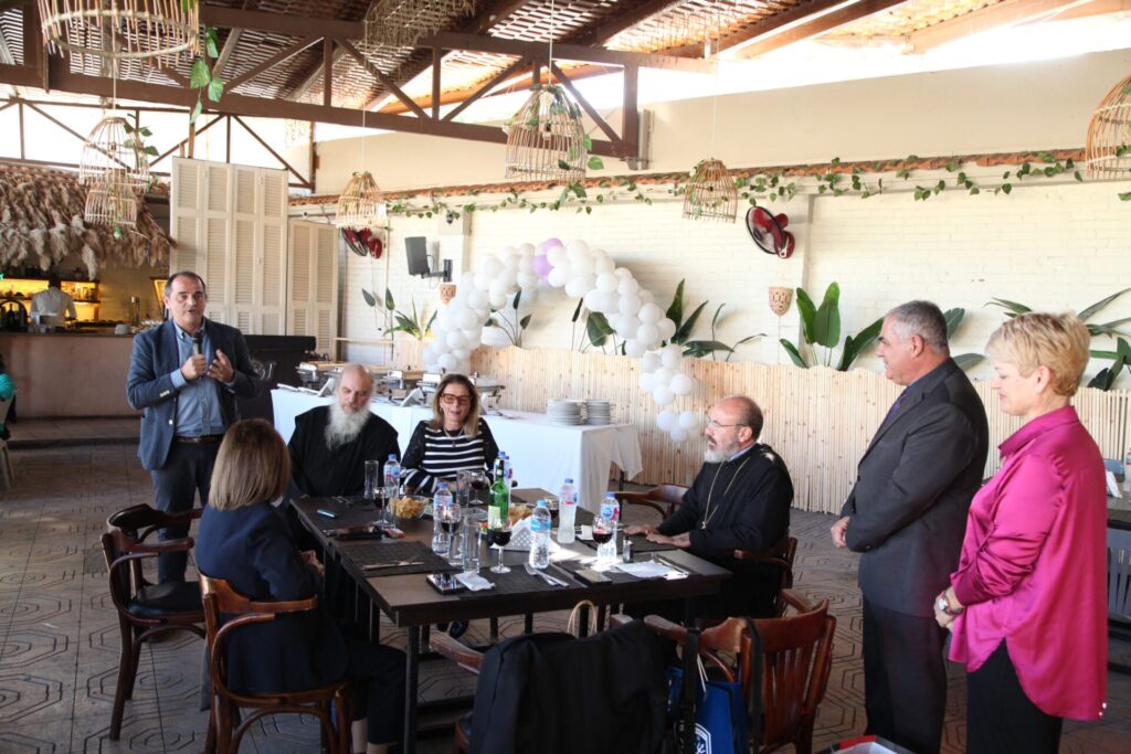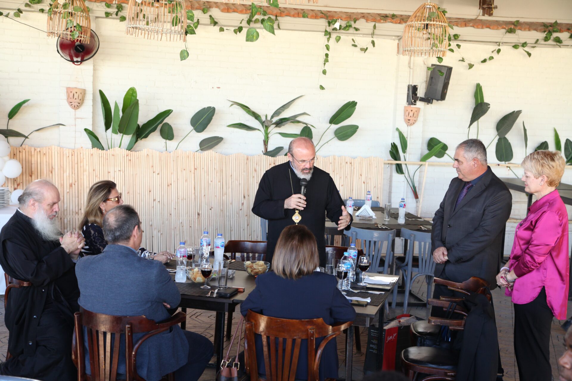 Στο αποχαιρετιστήριο τραπέζι των δύο αγαπητών Πλοιάρχων, παρευρέθησαν οι κάτωθι συνδαιτυμόνες: Ο Σεβασμιώτατος Μητροπολίτης Πηλουσίου κ. Νάρκισσος – Πατριαρχικός Επίτροπος, ο Θεοφιλέστατος Μητροπολίτης Ταμιάθεως κ. Γερμανός Προϊστάμενος της Ιεράς Μονής του Οσίου Σάββα του Ηγιασμένου, ο Πρόεδρος της Ελληνικής Κοινότητας Αλεξανδρείας κ. Ανδρέας Βαφειάδης, ο Αντιπρόεδρος Α΄ κ. Νικόλαος Κόπελος μετά της συζύγου του Σούζης, ο Αναπληρωτής Γενικός Γραμματέας κ. Δημήτριος Κάβουρας μετά της συζύγου του Μάρτα, ο Διευθυντής κ. Γιώργος Μπούλος μετά της συζύγου του Αλίν, η Πρόεδρος του ΕΝΟΑ και Πτολεμαίου Α΄ κα. Λιλίκα Θλιβίτου, η Πρόεδρος του Λυκείου Ελληνίδων Αλεξανδρείας κα. Αλίκη Αντωνίου, η Διευθύντρια του Ελληνικού Ιδρύματος Πολιτισμού Αλεξανδρείας κα. Σταυρούλα Σπανούδη, η Γενική Γραμματέας της Κυπριακής Αδελφότητας κα. Μαρία Παυλίδη, η Αρχαιολόγος Διευθύντρια του Ινστιτούτου Ελληνικού και Αλεξανδρινού Πολιτισμού κα. Καλλιόπη Παπακώστα, απ΄ το Γραφείο ΑΚΑΜ η κα. Βέρα Ταγλάκη, ο πρώην Αντιπρόεδρος της ΕΚΑ κ. Μιχάλης Αρσλανίδης, η Επικεφαλής των Οδηγών Αλεξανδρείας κα Μαίρη Κάβουρα, η κα Ελένη Άστωρ υπεύθυνη Κοινοτικών Ξενώνων, ο κ. Γεώργιος Άστωρ μετά της συζύγου του Όλγας, ο νομικός κ. Alaa Saad, οι εκπαιδευτικοί κ. Πάνος Θεοδώρου, κα. Ελένη Παπαθανασίου και κ. Δημήτριος Στογιάννης μετά της συζύγου του Δήμητρας και του υιού τους Ρωμανού, ο κ. Δημήτριος Βαφειάδης και η μητέρα αυτού κα. Κική Βαφειάδη, οι εργαζόμενες στην ΕΚΑ κα. Μαίρη Μαυρίκου και κα. Ουρανία Πετράκη, ο κ. Πέτρος Λούτσης και σύσσωμη η Πατριαρχική Σχολή, προεξαρχόντων των Πατέρων Μάρκου και Χριστοφόρου.