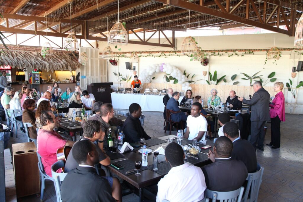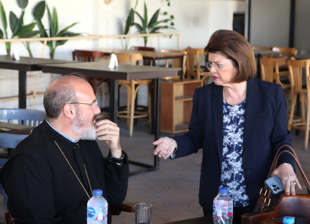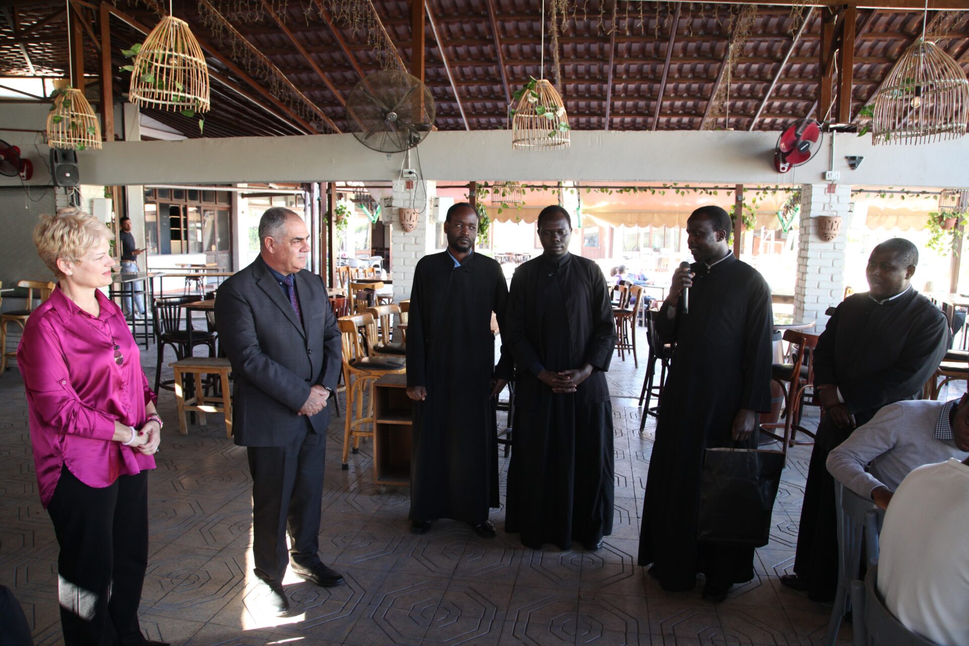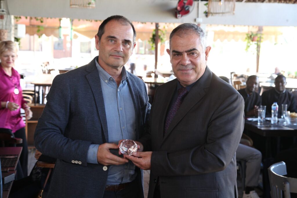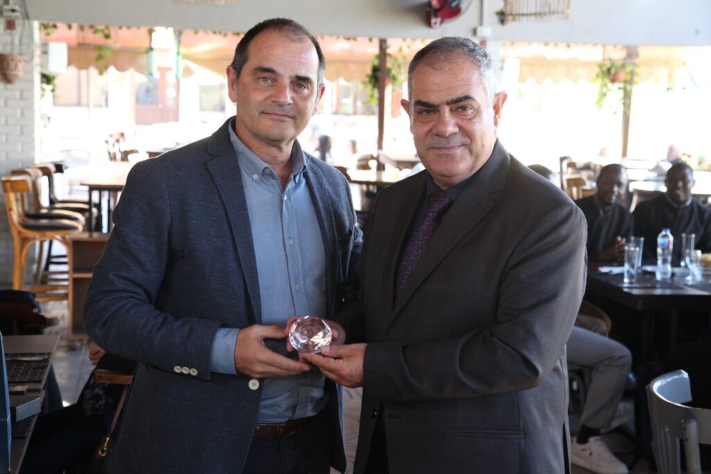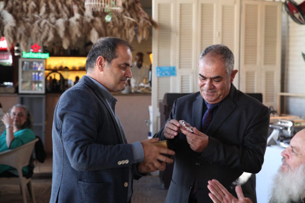 Στο αποχαιρετιστήριο τραπέζι των δύο αγαπητών Πλοιάρχων, παρευρέθησαν οι κάτωθι συνδαιτυμόνες: Ο Σεβασμιώτατος Μητροπολίτης Πηλουσίου κ. Νάρκισσος – Πατριαρχικός Επίτροπος, ο Θεοφιλέστατος Μητροπολίτης Ταμιάθεως κ. Γερμανός Προϊστάμενος της Ιεράς Μονής του Οσίου Σάββα του Ηγιασμένου, ο Πρόεδρος της Ελληνικής Κοινότητας Αλεξανδρείας κ. Ανδρέας Βαφειάδης, ο Αντιπρόεδρος Α΄ κ. Νικόλαος Κόπελος μετά της συζύγου του Σούζης, ο Αναπληρωτής Γενικός Γραμματέας κ. Δημήτριος Κάβουρας μετά της συζύγου του Μάρτα, ο Διευθυντής κ. Γιώργος Μπούλος μετά της συζύγου του Αλίν, η Πρόεδρος του ΕΝΟΑ και Πτολεμαίου Α΄ κα. Λιλίκα Θλιβίτου, η Πρόεδρος του Λυκείου Ελληνίδων Αλεξανδρείας κα. Αλίκη Αντωνίου, η Διευθύντρια του Ελληνικού Ιδρύματος Πολιτισμού Αλεξανδρείας κα. Σταυρούλα Σπανούδη, η Γενική Γραμματέας της Κυπριακής Αδελφότητας κα. Μαρία Παυλίδη, η Αρχαιολόγος Διευθύντρια του Ινστιτούτου Ελληνικού και Αλεξανδρινού Πολιτισμού κα. Καλλιόπη Παπακώστα, απ΄ το Γραφείο ΑΚΑΜ η κα. Βέρα Ταγλάκη, ο πρώην Αντιπρόεδρος της ΕΚΑ κ. Μιχάλης Αρσλανίδης, η Επικεφαλής των Οδηγών Αλεξανδρείας κα Μαίρη Κάβουρα, η κα Ελένη Άστωρ υπεύθυνη Κοινοτικών Ξενώνων, ο κ. Γεώργιος Άστωρ μετά της συζύγου του Όλγας, ο νομικός κ. Alaa Saad, οι εκπαιδευτικοί κ. Πάνος Θεοδώρου, κα. Ελένη Παπαθανασίου και κ. Δημήτριος Στογιάννης μετά της συζύγου του Δήμητρας και του υιού τους Ρωμανού, ο κ. Δημήτριος Βαφειάδης και η μητέρα αυτού κα. Κική Βαφειάδη, οι εργαζόμενες στην ΕΚΑ κα. Μαίρη Μαυρίκου και κα. Ουρανία Πετράκη, ο κ. Πέτρος Λούτσης και σύσσωμη η Πατριαρχική Σχολή, προεξαρχόντων των Πατέρων Μάρκου και Χριστοφόρου.