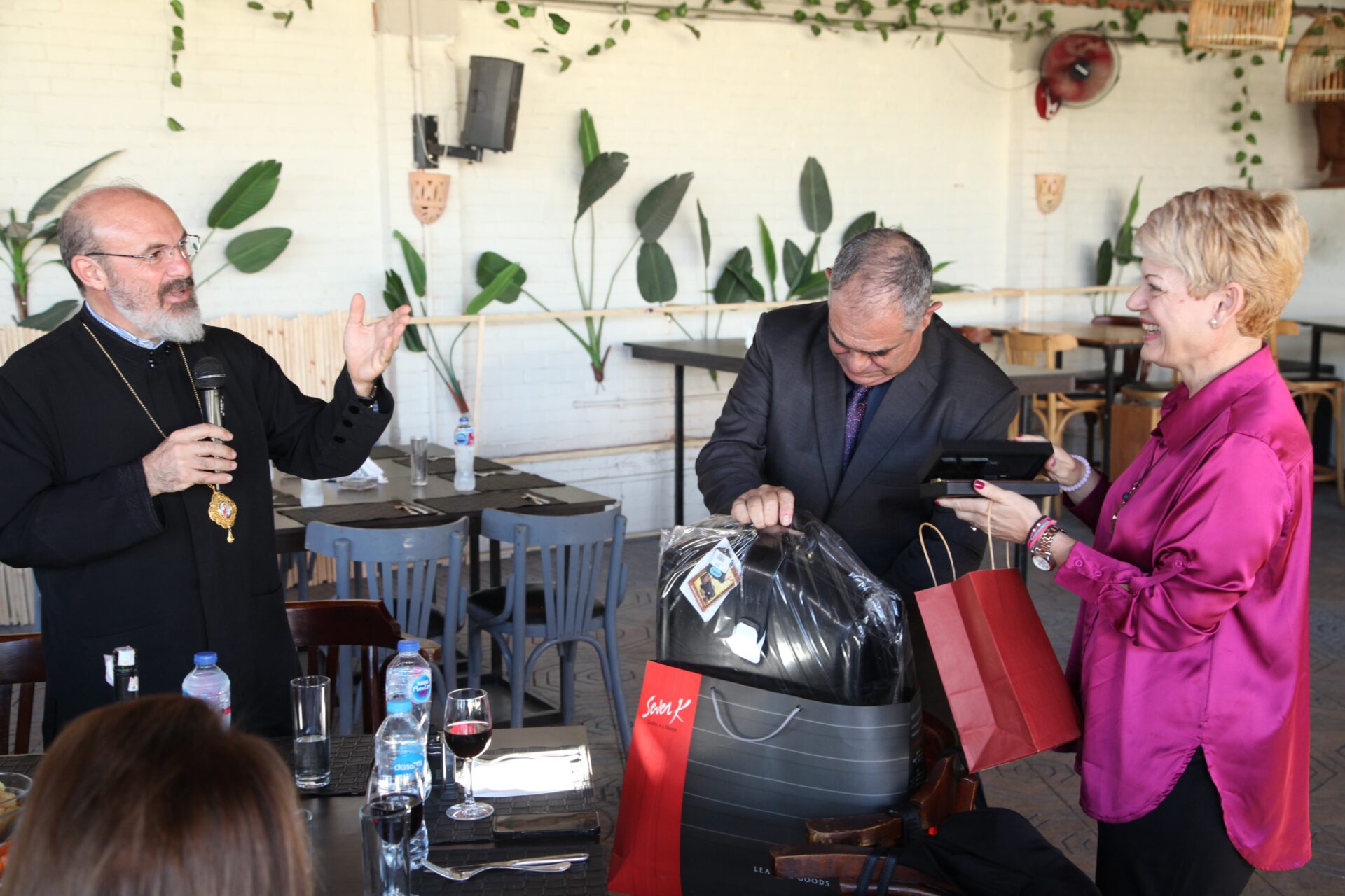 Και οι δύο προαναφερθέντες προσέφεραν αναμνηστικά δώρα καρδιάς και εκτίμησης προς το ζεύγος Βαρουξή, ο εις εκ μέρους του Πατριαρχείου και ο έτερος εκ μέρους της Ελληνικής Κοινότητας Αλεξανδρείας.