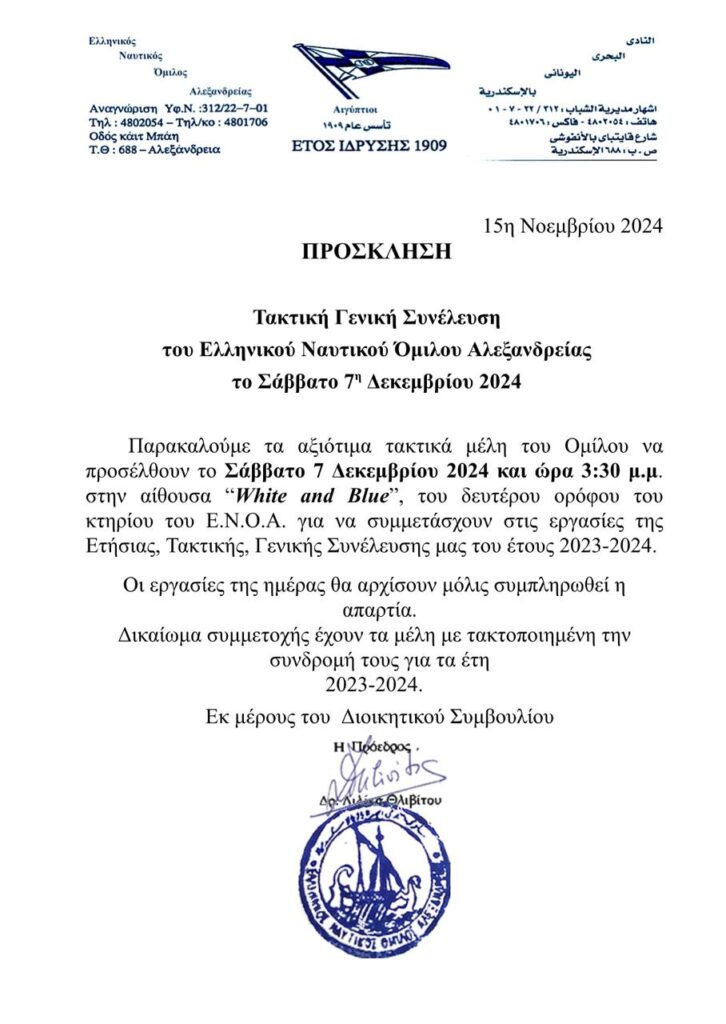 ΤΑΚΤΙΚΗ ΓΕΝΙΚΗ ΣΥΝΕΛΕΥΣΗ ΕΝΟΑ