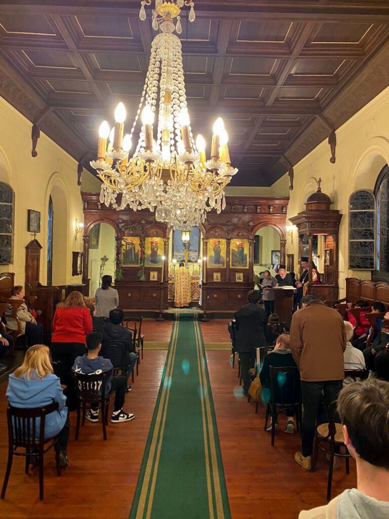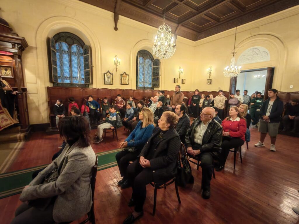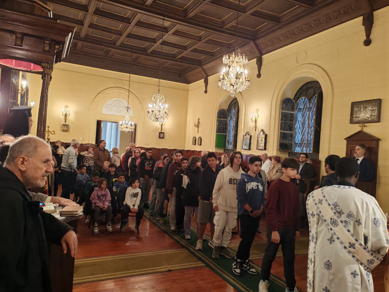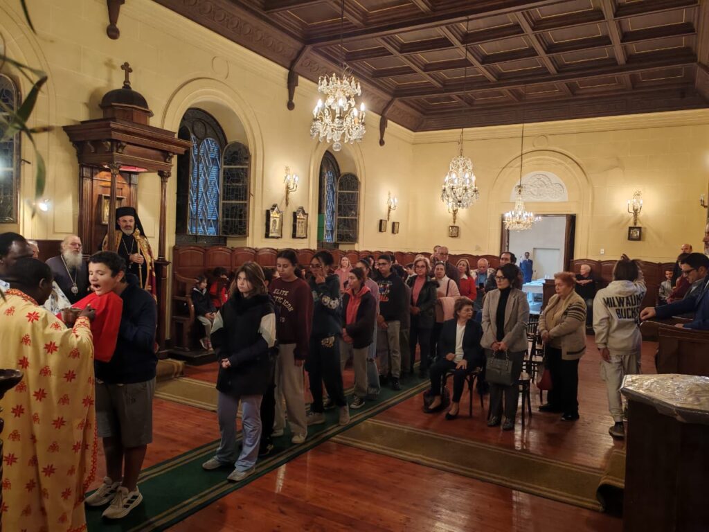 Το ευχάριστο είναι ότι γέμισε το Ιερό Παρεκκλήσιο από πιστούς συμπάροικους και από το σύνολο των μαθητών και εκπαιδευτικών των κοινοτικών σχολείων.