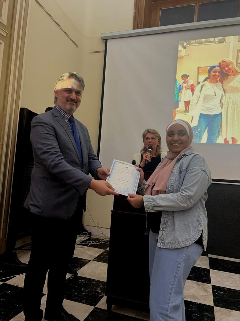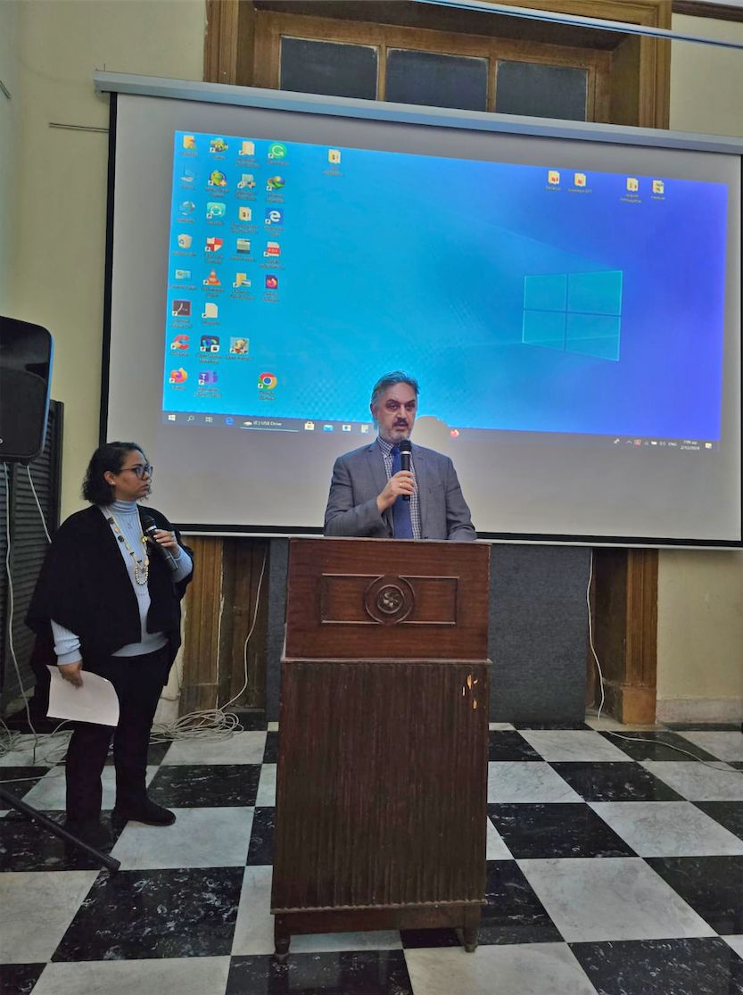 Ακολούθως έδωσε τον λόγο στον Γενικό Πρόξενο Αλεξανδρείας κ. Ιωάννη Πυργάκη, ο οποίος με τη σειρά του  ανεφέρθη μεταξύ πολλών άλλων και στην σπουδαιότητα που αποκτά μία τέτοια απονομή, καθότι η ελληνική γλώσσα κερδίζει στην φίλη χώρα της Αιγύπτου νέους γλωσσικούς χρήστες που ενδυναμώνουν την έννοια του Ελληνισμού.