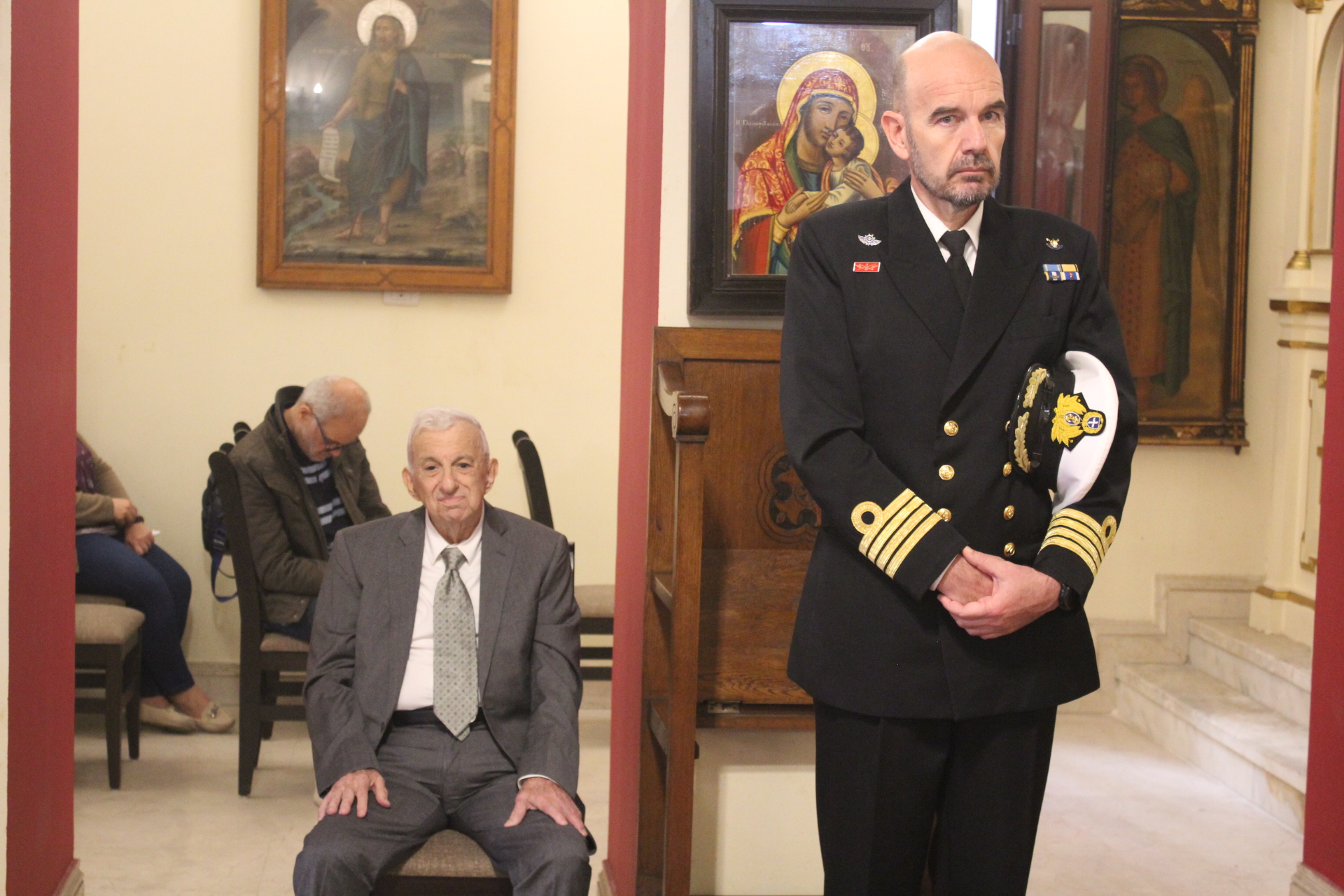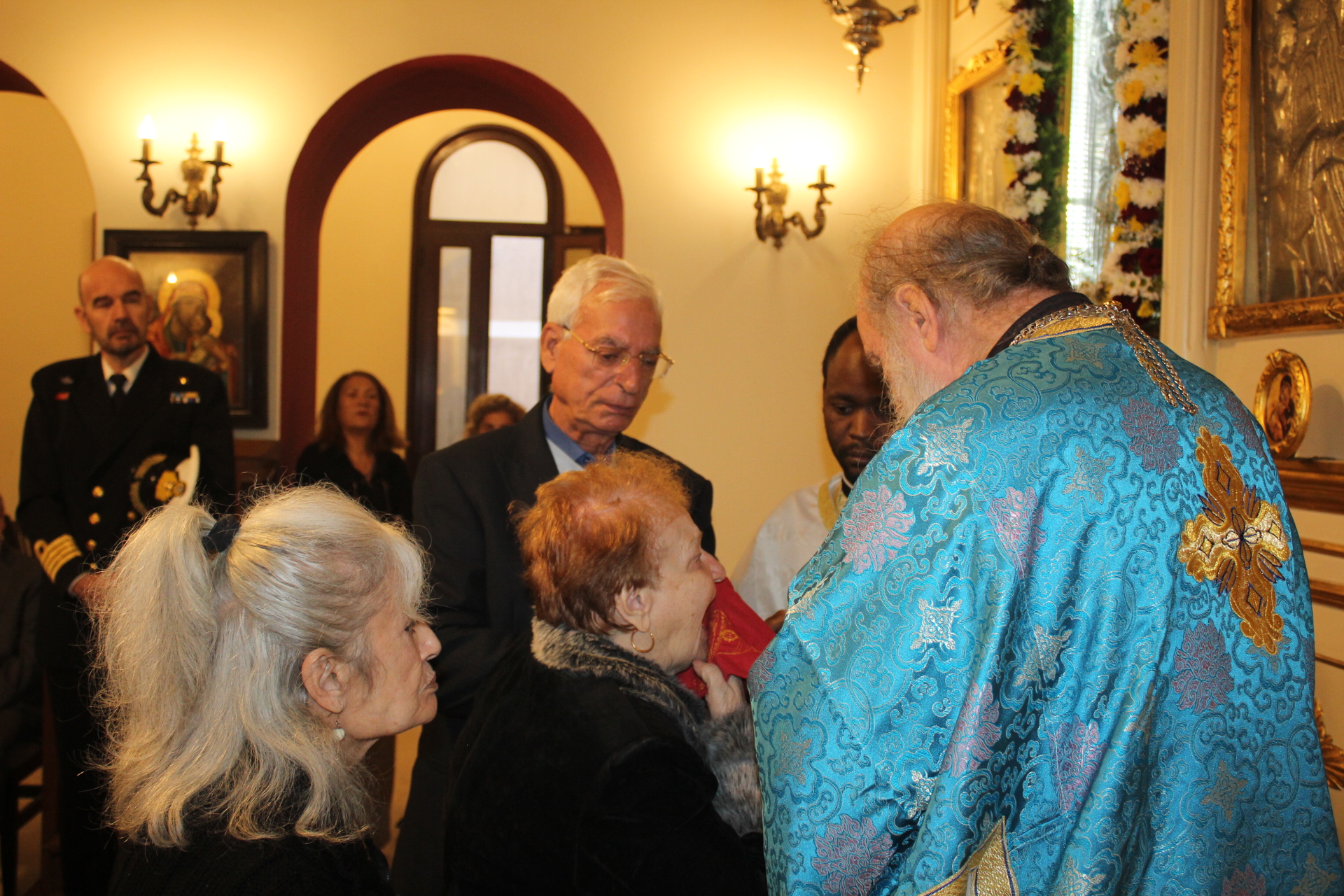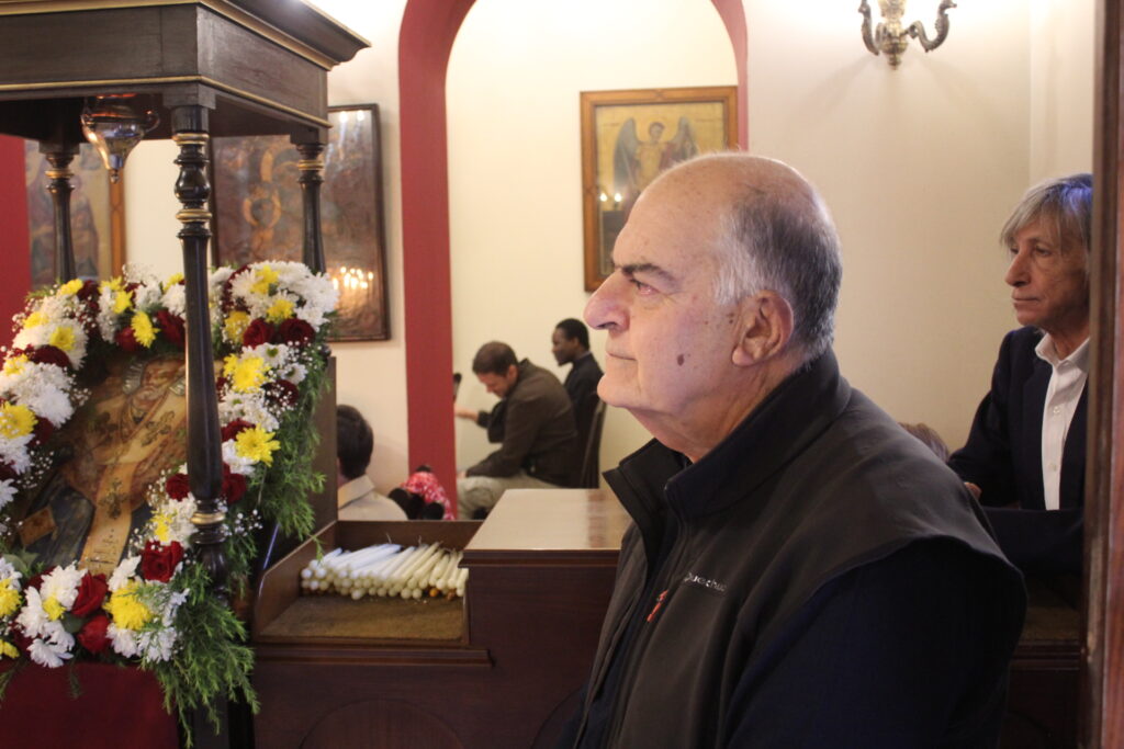 Ο πρώην Αντιπρόεδρος της Ε.Κ.Α. και ιδιοκτήτης του ιστορικού ελληνικού κινηματογράφου της παροικίας κ. Μιχάλης Αρσλανίδης, «εισέπραττε» με κατάνυξη την απορρέουσα ευλογία εκ του εορταστικού τελετουργικού του Αγίου της Ιμβραημίας.