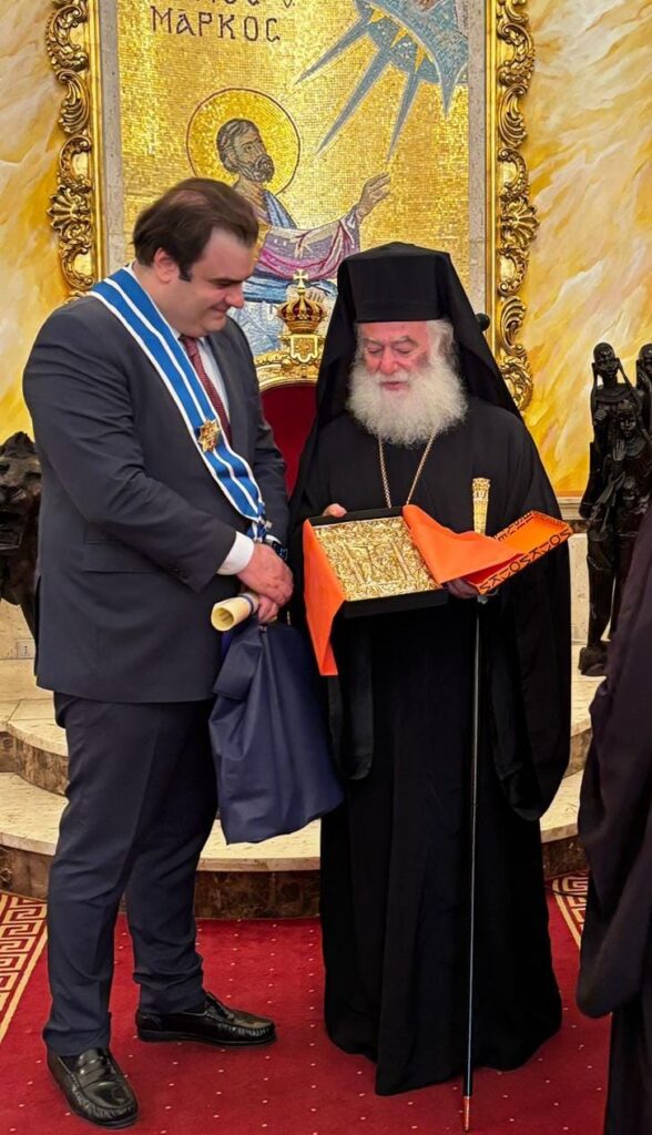 Επίσημη επίσκεψη στην Καθέδρα του Παλαιφάτου Πατριαρχείου Αλεξανδρείας και πάσης Αφρικής πραγματοποίησε την Κυριακή 8η Δεκεμβρίου 2024, ο Εξοχώτατος κ.Κυριάκος Πιερρακάκης, Υπουργός Παιδείας, Θρησκευμάτων και Αθλητισμού της Ελλάδος, συνοδεύομενος από τον Πρόεδρο των Γενικών Αρχείων του Ελληνικού κράτους, Καθηγητή κ.Δημήτριο Σωτηρόπουλο και άλλους συνεργάτες του. Παρών στην επίσκεψη αυτή ήταν και ο Σεβ. Μητροπολίτη Φθιώτιδος κ.Συμεών, εκπροσωπώντας την Εκκλησία της Ελλάδος και τον Μακαριώτατο Πρόεδρο της Ιεράς Συνόδο, Αρχιεπίσκοπο Αθηνών και πάσης Ελλάδος κ. Ιερώνυμο.