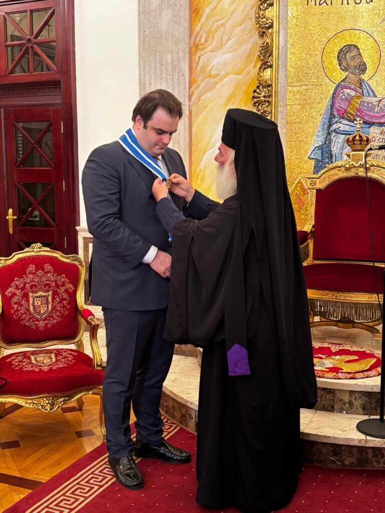 Ακολούθησε η περικόσμηση του κ.Υπουργού Παιδείας με την ανώτατη τιμητική διάκριση του Πατριαρχικού Θρόνου, τον Μεγαλόσταυρο του Αγίου Μάρκου μετ’ αστέρος, ως και του Σεβασμιωτάτου Μητροπολίτου Φθιώτιδος με τον Ανώτερο Ταξιάρχη της Τάξεως Οσίου Σαββα του Ηγιασμένου.