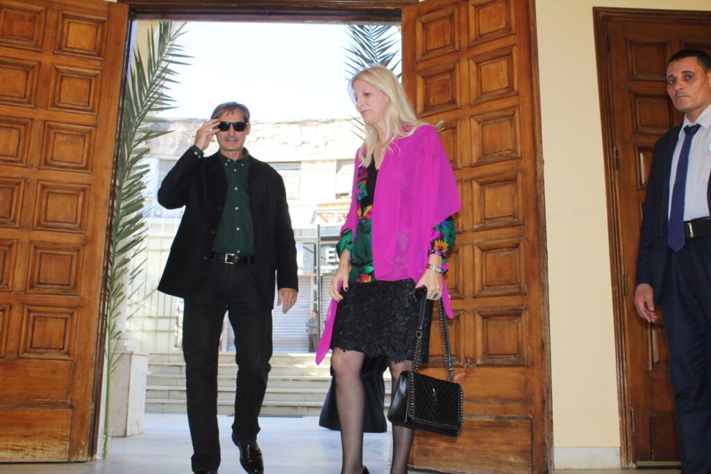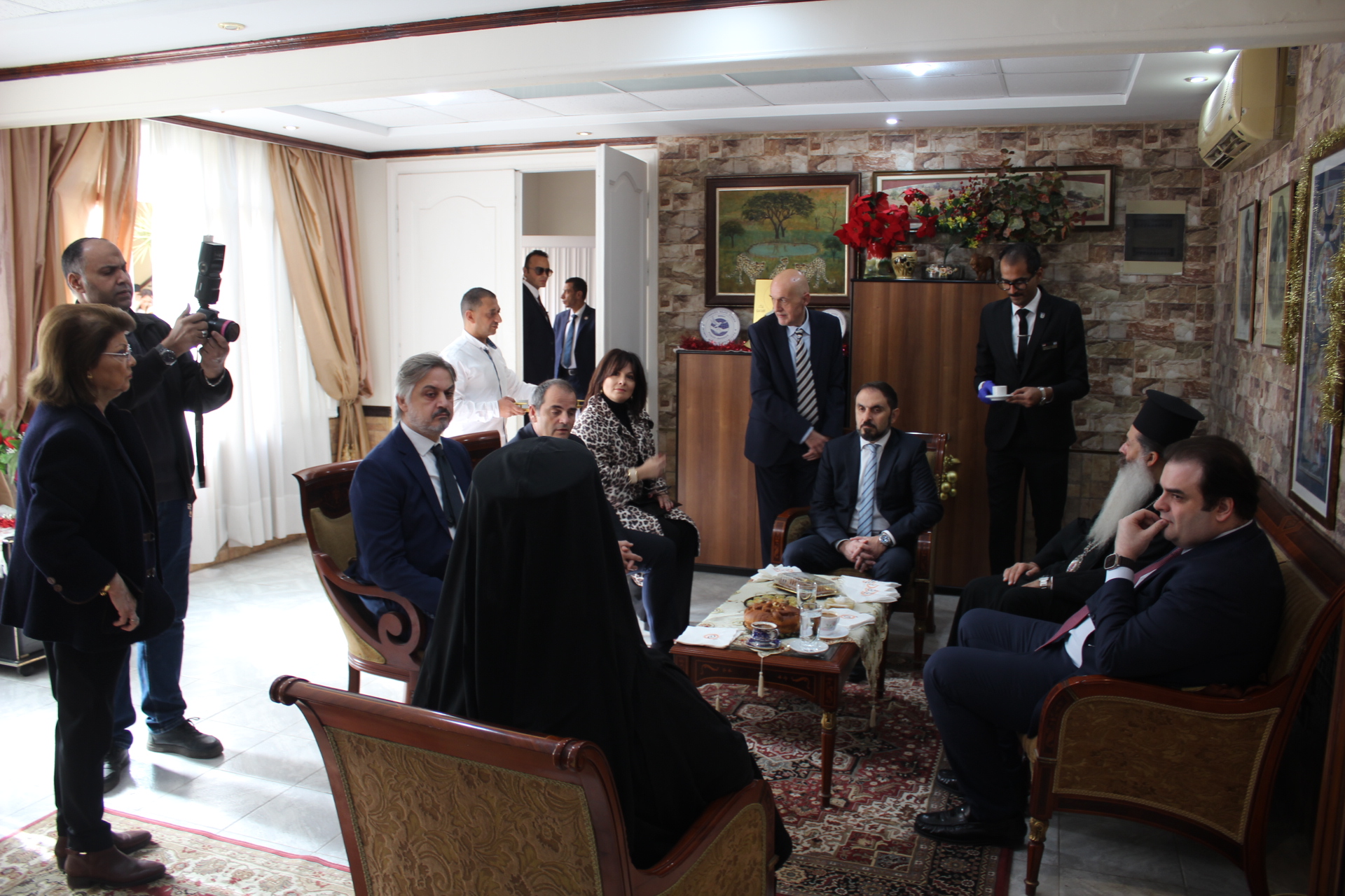 Ακολούθως ο Μακατιώτατος με τον κ. Υπουργό, την επίσημη συνοδεία του και τους εκπροσώπους των θεσμών. κεράστηκαν καφέ και συζήτησαν στο Γραφείο του Λυκείου Ελληνίδων που στεγάζεται εντός της Ιερας Μονής.