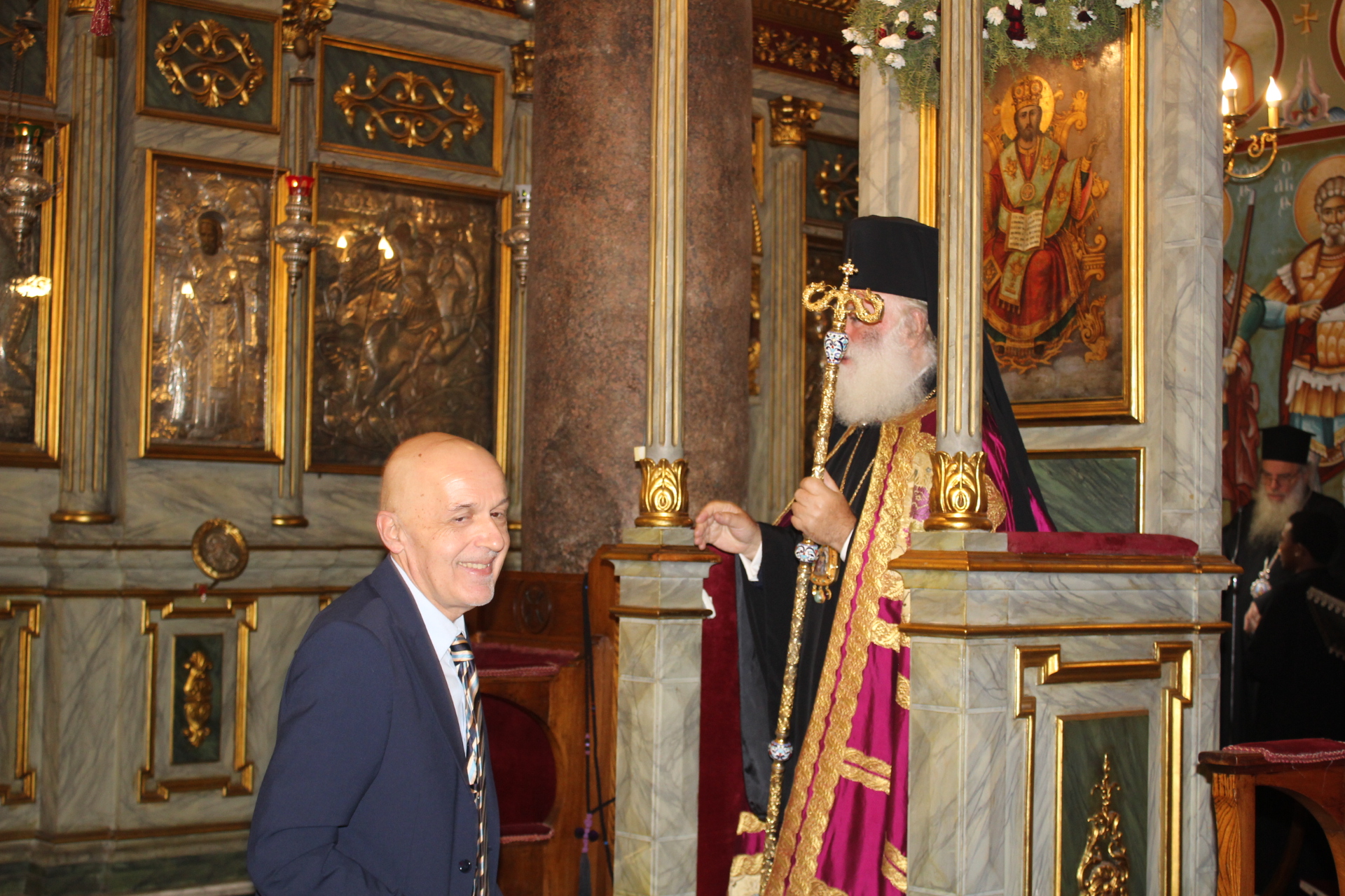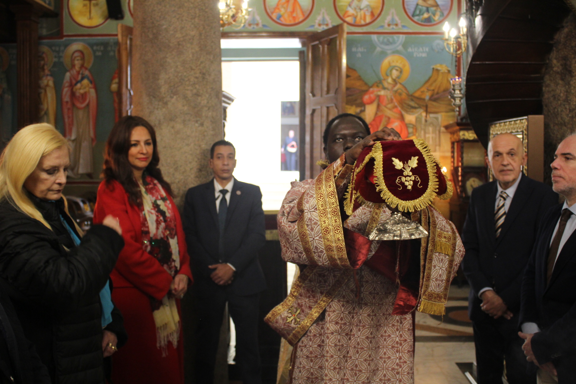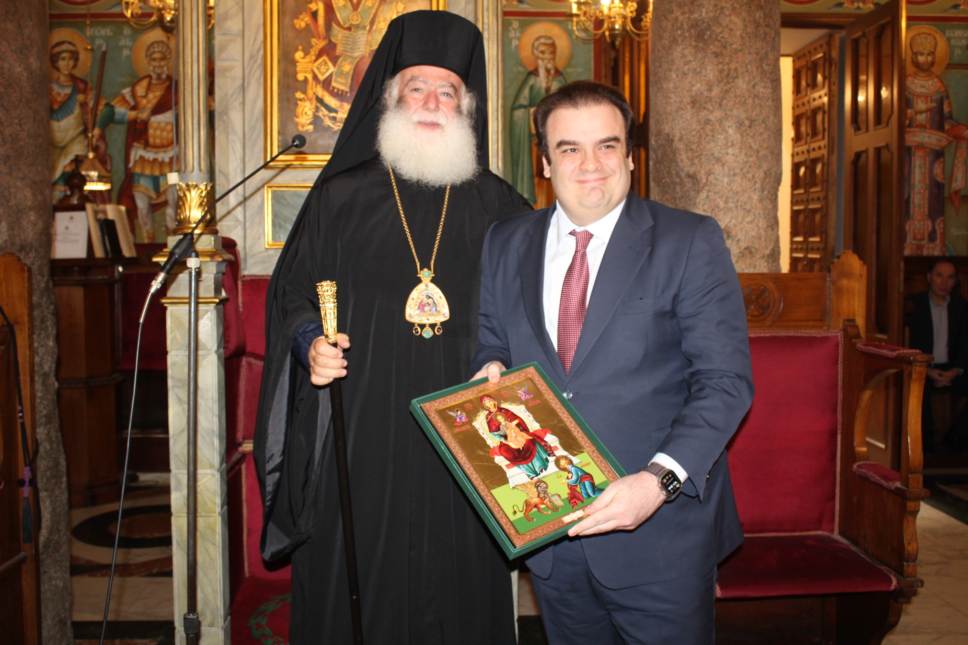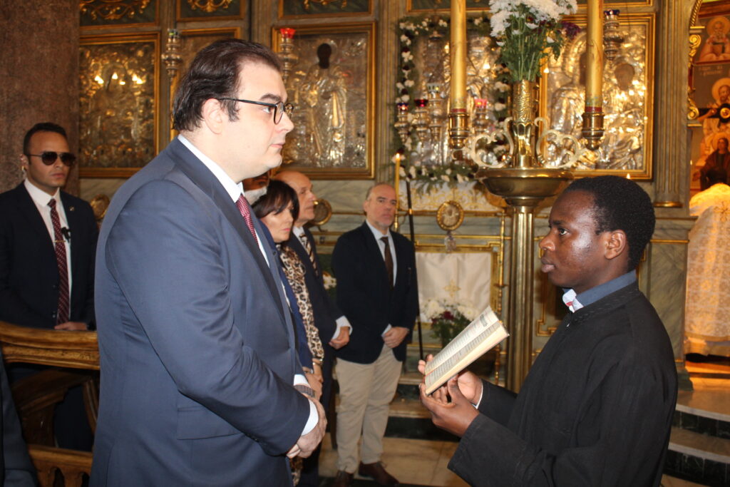 Με την ολοκλήρωση της Θείας Λειτουργίας ο Μακαριώτατος προσέφερε στον ΄Έλληνα Υπουργό μια εικόνα της Αγίας Αικατερίνης, ως αντίδωρον της ευσεβούς επισκέψεώς του στον παλαιότερο Ναό της χριστιανοσύνης στην Αφρική.
