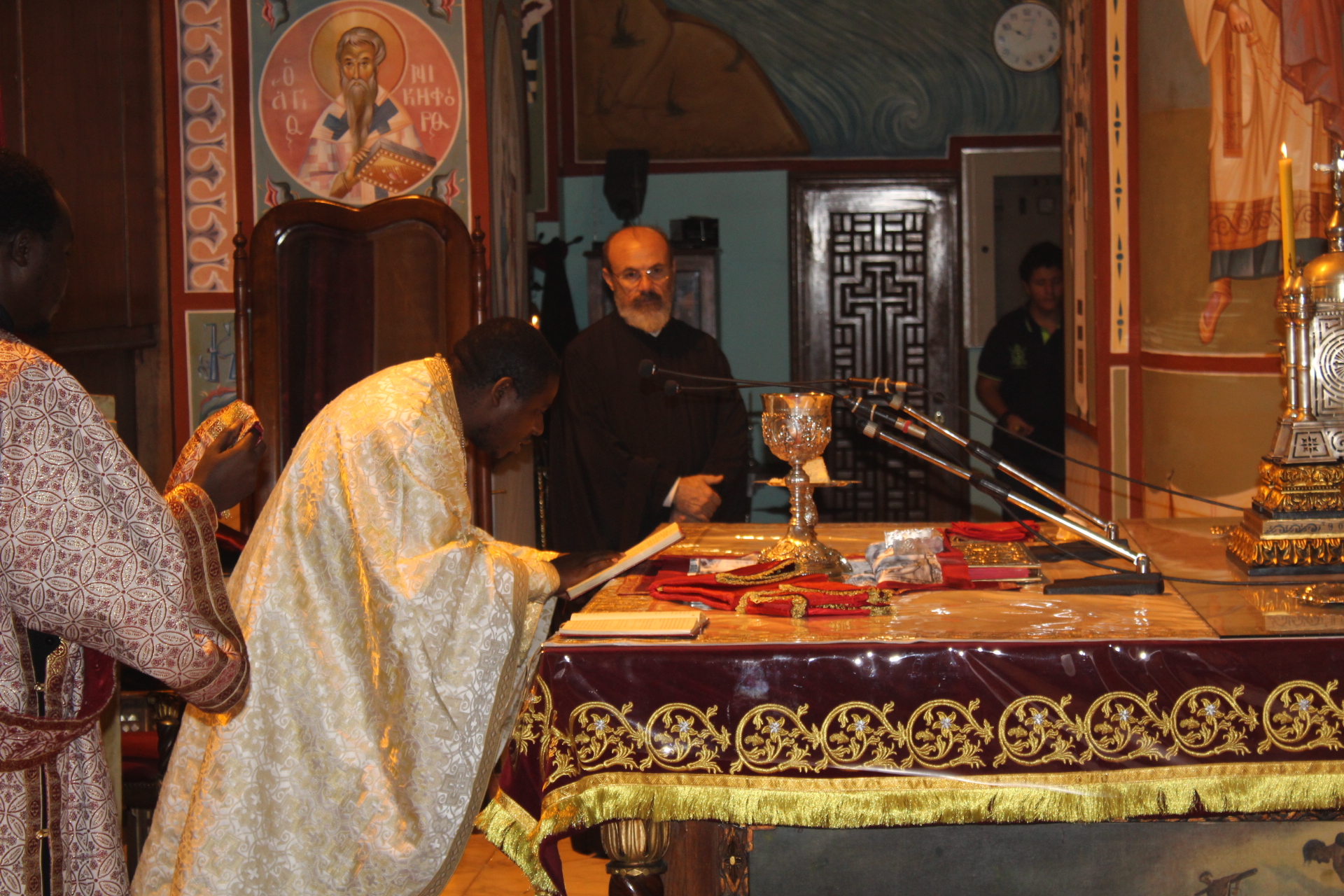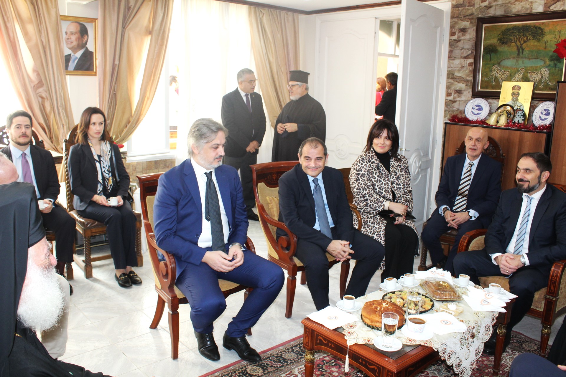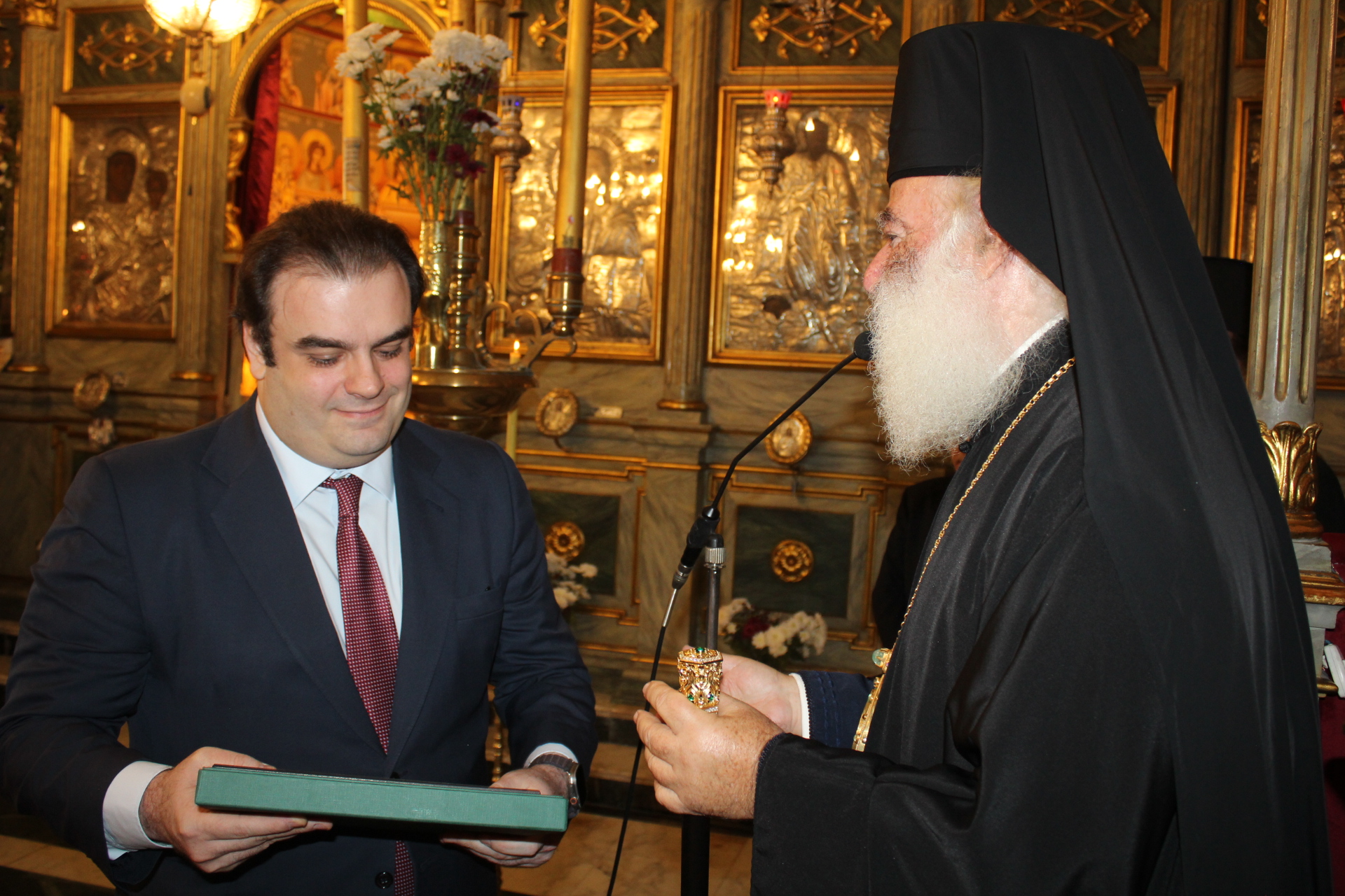 Με την ολοκλήρωση της Θείας Λειτουργίας ο Μακαριώτατος προσέφερε στον ΄Έλληνα Υπουργό μια εικόνα της Αγίας Αικατερίνης, ως αντίδωρον της ευσεβούς επισκέψεώς του στον παλαιότερο Ναό της χριστιανοσύνης στην Αφρική.