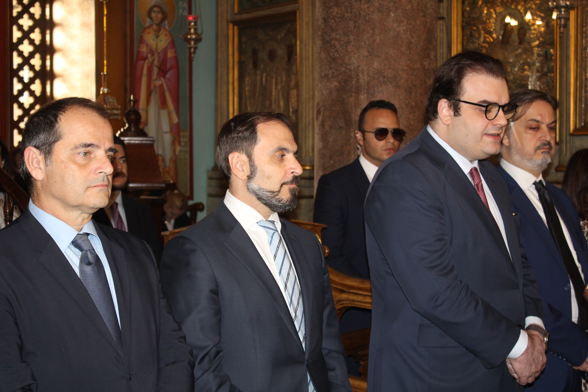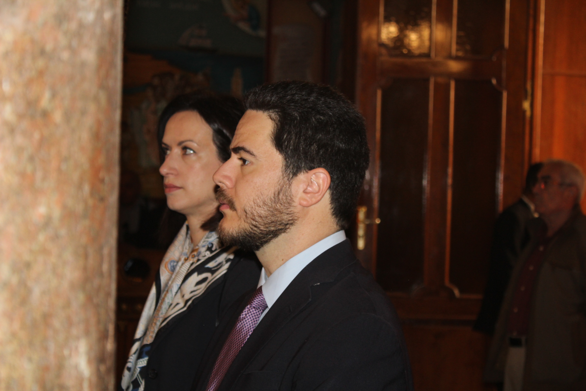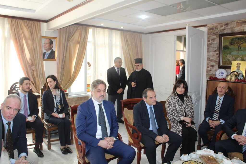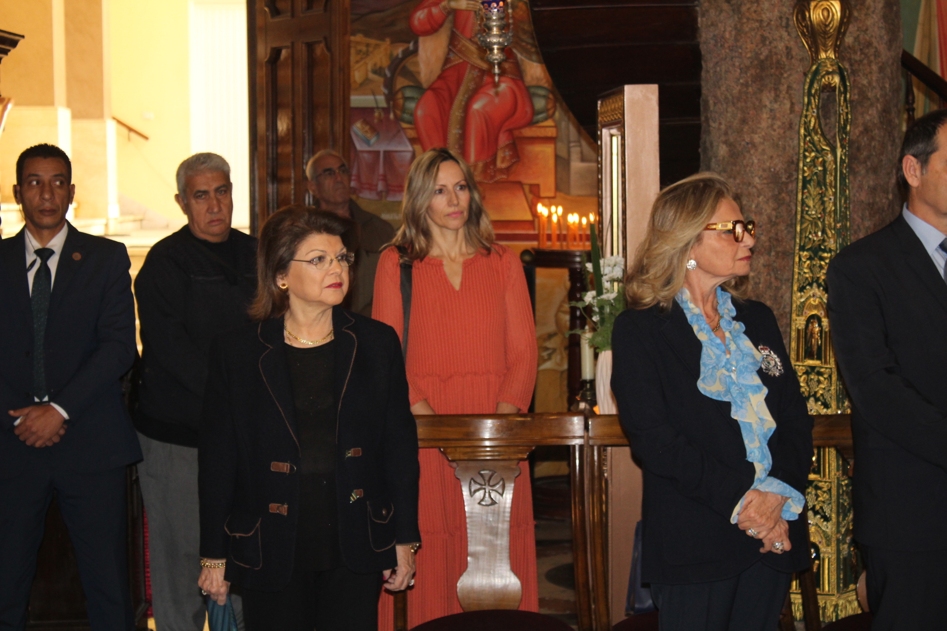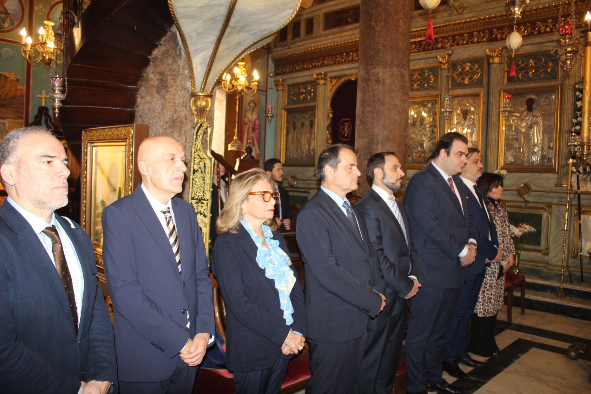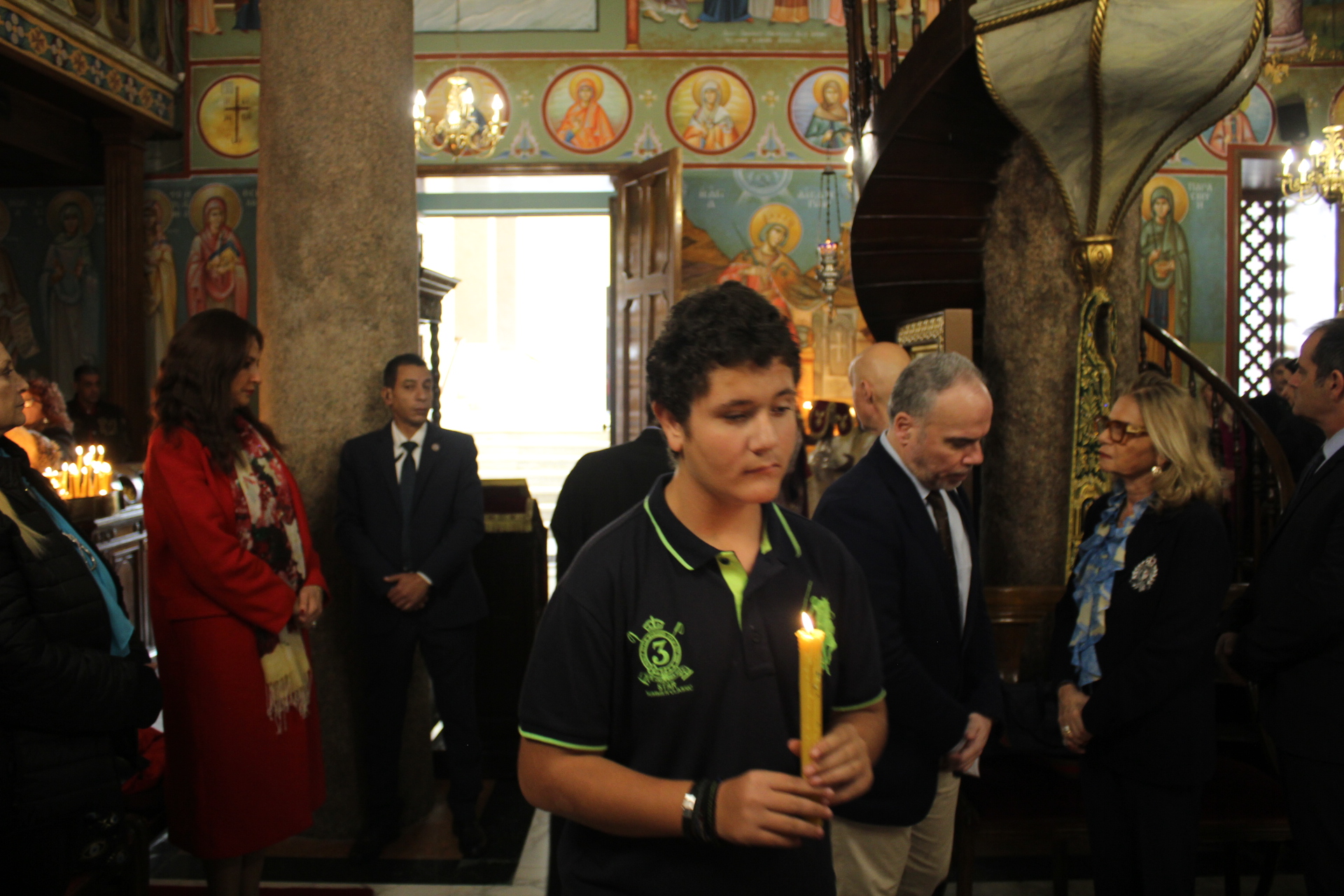 Μαζί του παρευρίσκοντο οι κάτωθι εκπρόσωποι των θεσμών του Αιγυπτιωτισμού: ο Επιτετραμμένος της Ελληνικής Πρεσβείας στο Κάϊρο κ. Λεούσης, ο Γενικός Πρόξενος της Ελλάδας στην Αλεξάνδρεια κ. Ιωάννης Πυργάκης, ο Πρόεδρος της Ελληνικής Κοινότητας Αλεξανδρείας κ. Ανδρέας Βαφειάδης, με τον Γενικό Γραμματέα κ. Νικόλαο Κατσιμπρή, τον Α’ Αντιπρόεδρο κ. Ιωάννη Παπαδόπουλο και τον πρώην Πρόεδρο και νυν Κοινοτικό Επίτροπο κ. Ιωάννη Σιόκα, ο Σύνδεσμος του Π.Ν. της Ελλάδας στην Αλεξάνδρεια κ. Χρυσόστομος Ράγκος, ο Συντονιστής Εκπαίδευσης Αιγύπτου, Βορείας Αφρικής και Μέσης Ανατολής κ. Γεώργιος Κοκορέλης, η Πρόεδρος του ΕΝΟΑ και του «Πτολεμαίου Α΄» κα Λιλίκα Θλιβίτου, η Πρόεδρος του Λυκείου Ελληνίδων Αλεξανδρείας κα Αλίκη Αντωνίου, η Διευθύντρια του Ελληνικού ιδρύματος Πολιτισμού Αλεξανδρείας κα Σταυρούλα Σπανούδη, η Διευθύντρια του Αβερωφείου κα. Αφροδίτη Πεβερέτου, τα στελέχη του Γενικού Προξενείου κ. Θρασύβουλος Μακρής και κα Μαίρη Παυλίδου, ο Έφορος Διοίκησης των Προσκόπων κ. Άρης Μαρκοζάνης και πολλοί εκπαιδευτικοί των Σχολείων της ΕΚΑ.