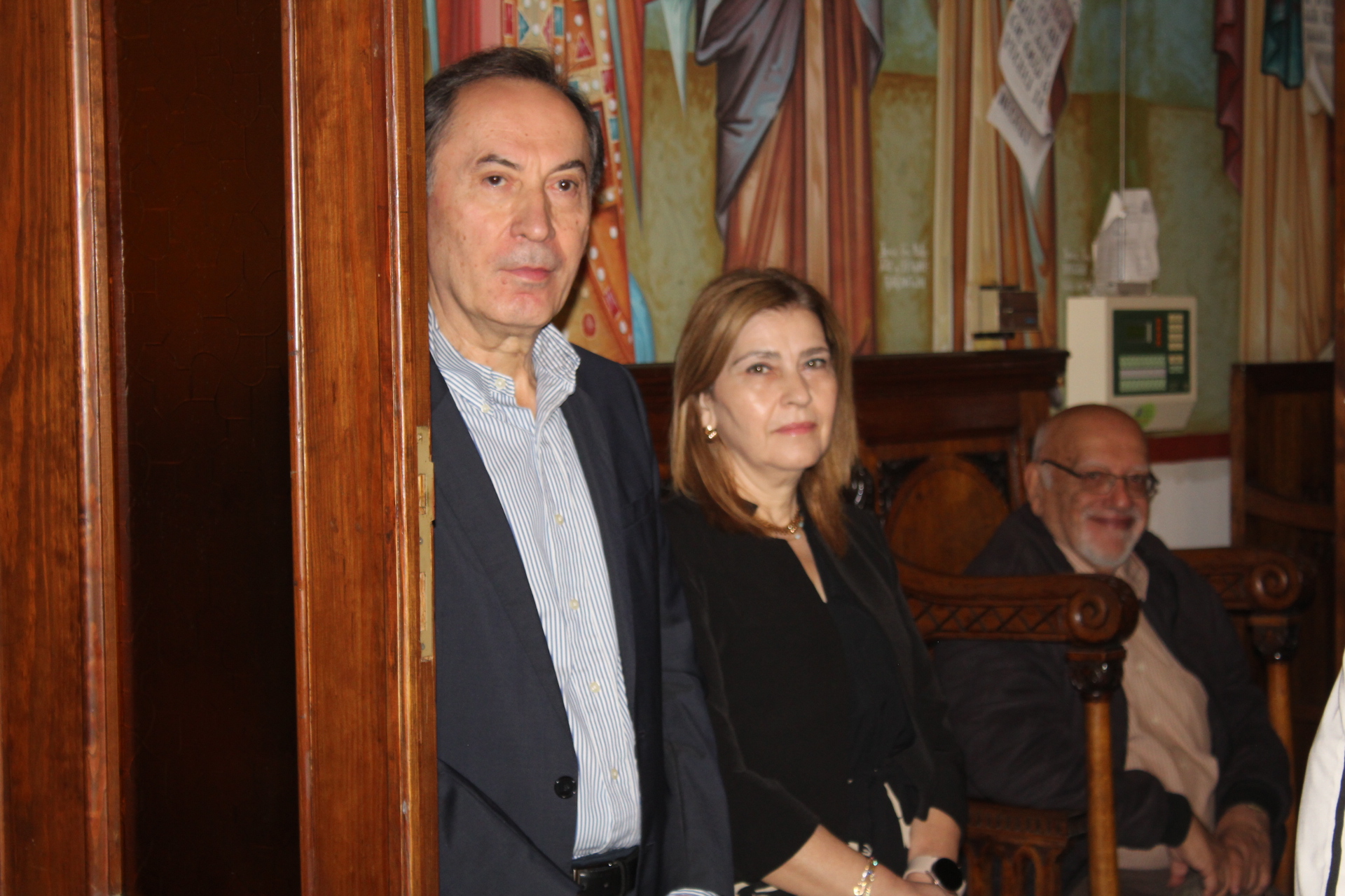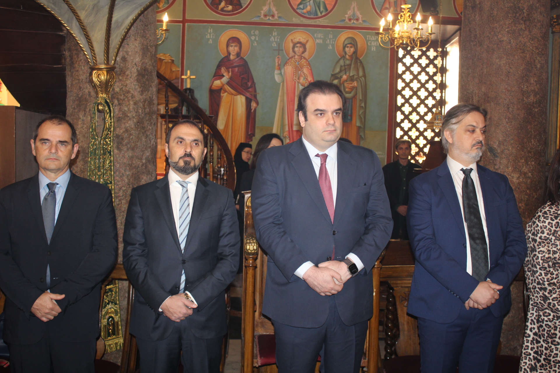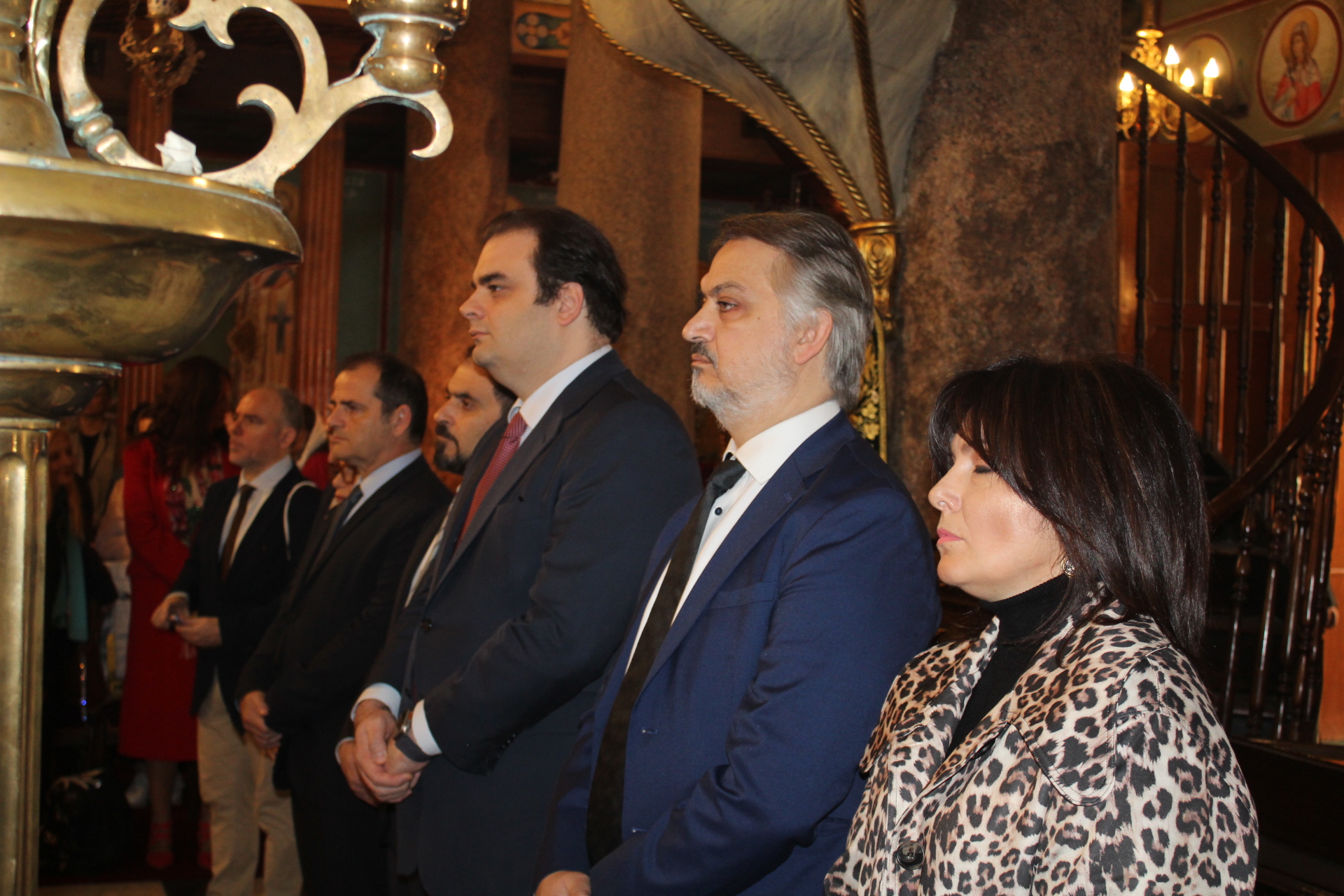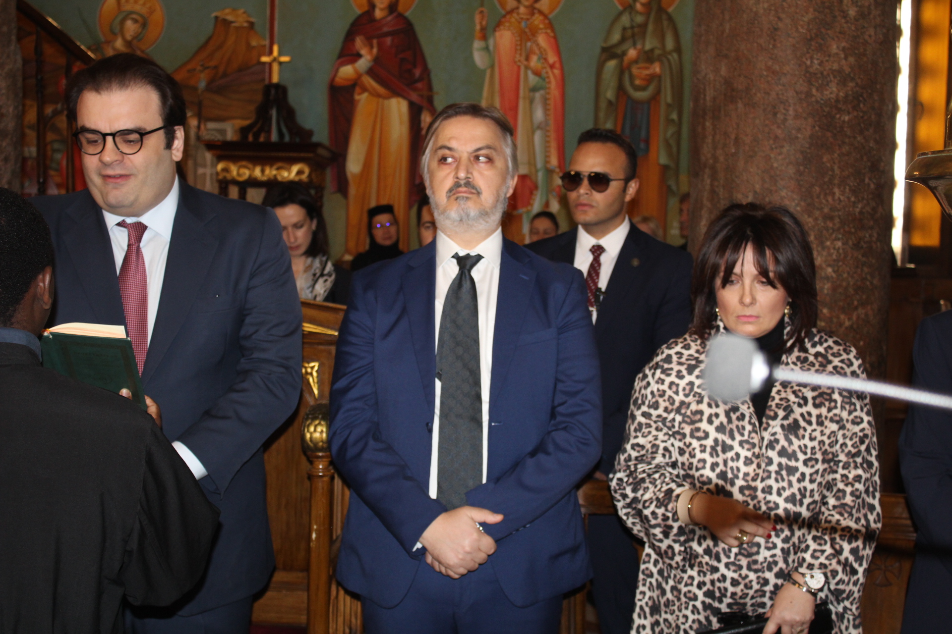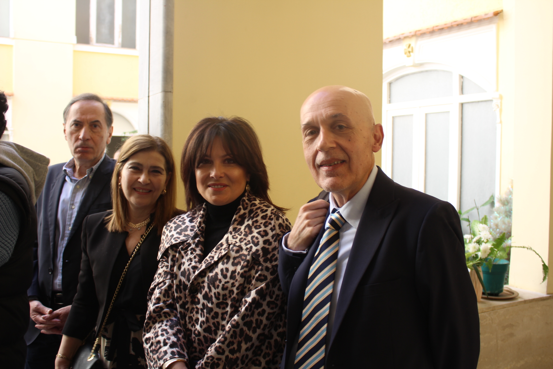 Μαζί του παρευρίσκοντο οι κάτωθι εκπρόσωποι των θεσμών του Αιγυπτιωτισμού: ο Επιτετραμμένος της Ελληνικής Πρεσβείας στο Κάϊρο κ. Λεούσης, ο Γενικός Πρόξενος της Ελλάδας στην Αλεξάνδρεια κ. Ιωάννης Πυργάκης, ο Πρόεδρος της Ελληνικής Κοινότητας Αλεξανδρείας κ. Ανδρέας Βαφειάδης, με τον Γενικό Γραμματέα κ. Νικόλαο Κατσιμπρή, τον Α’ Αντιπρόεδρο κ. Ιωάννη Παπαδόπουλο και τον πρώην Πρόεδρο και νυν Κοινοτικό Επίτροπο κ. Ιωάννη Σιόκα, ο Σύνδεσμος του Π.Ν. της Ελλάδας στην Αλεξάνδρεια κ. Χρυσόστομος Ράγκος, ο Συντονιστής Εκπαίδευσης Αιγύπτου, Βορείας Αφρικής και Μέσης Ανατολής κ. Γεώργιος Κοκορέλης, η Πρόεδρος του ΕΝΟΑ και του «Πτολεμαίου Α΄» κα Λιλίκα Θλιβίτου, η Πρόεδρος του Λυκείου Ελληνίδων Αλεξανδρείας κα Αλίκη Αντωνίου, η Διευθύντρια του Ελληνικού ιδρύματος Πολιτισμού Αλεξανδρείας κα Σταυρούλα Σπανούδη, η Διευθύντρια του Αβερωφείου κα. Αφροδίτη Πεβερέτου, τα στελέχη του Γενικού Προξενείου κ. Θρασύβουλος Μακρής και κα Μαίρη Παυλίδου, ο Έφορος Διοίκησης των Προσκόπων κ. Άρης Μαρκοζάνης και πολλοί εκπαιδευτικοί των Σχολείων της ΕΚΑ.