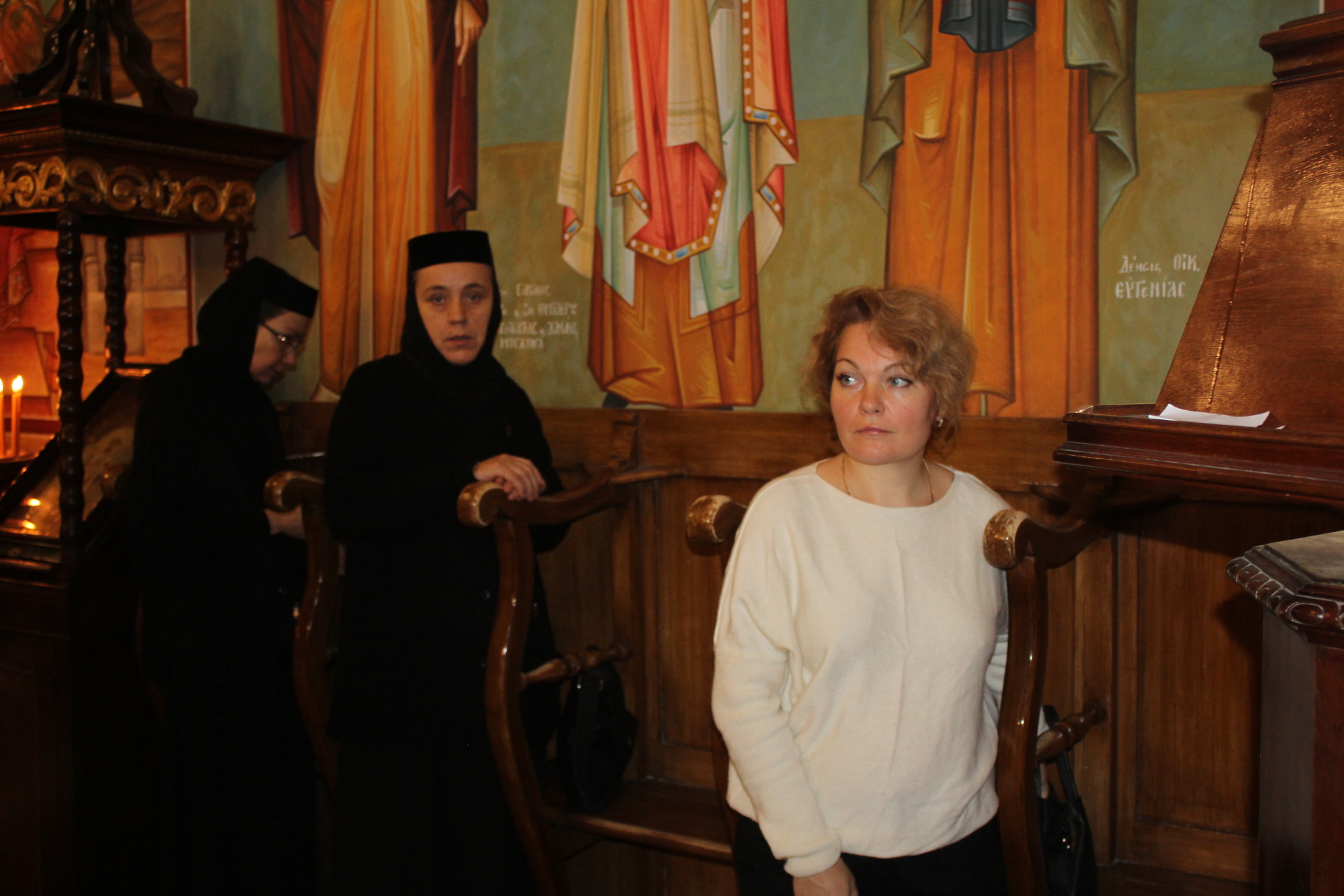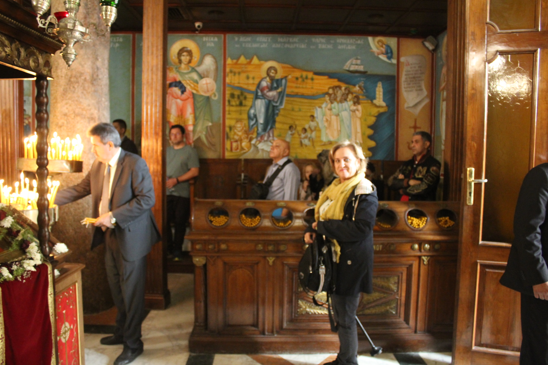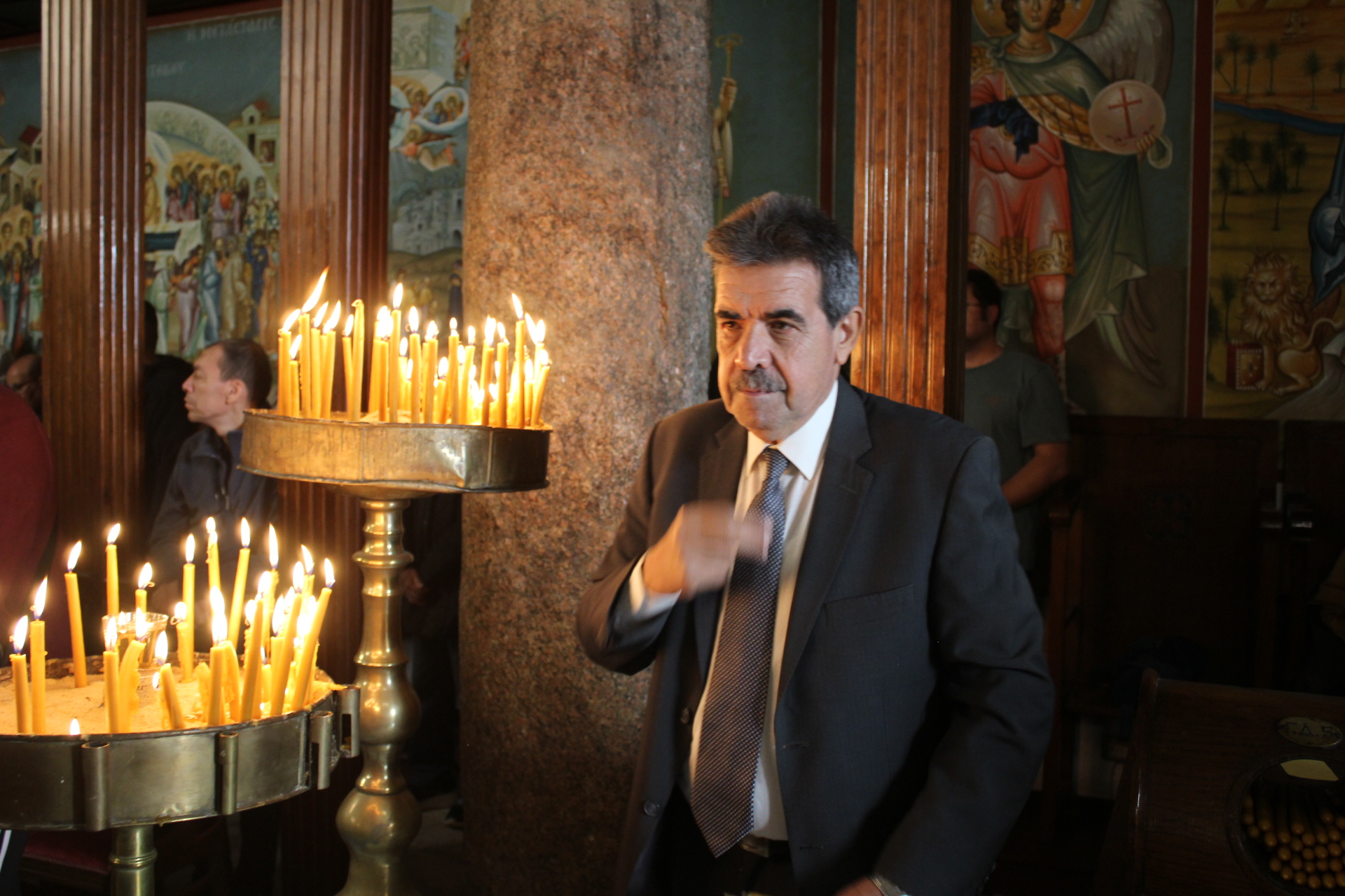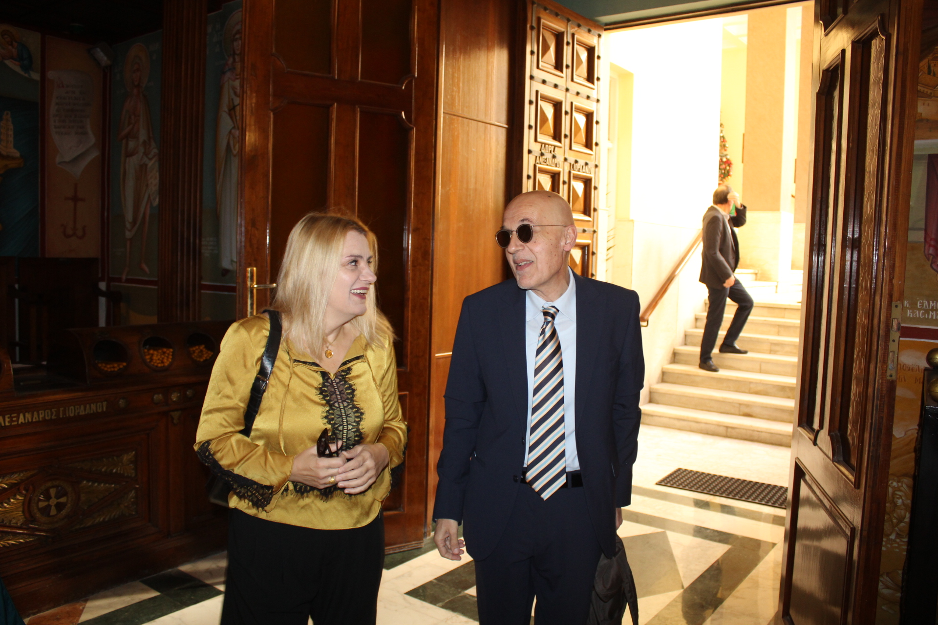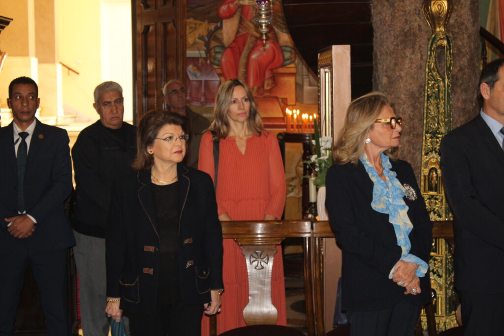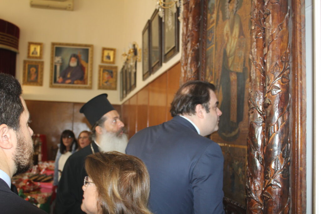 Μετά τη Θεία Κοινωνία και αφού άπαντες πήραν την ευλογία του Πατριάρχη, ο Μακαριώτατος έδειξε στον Έλληνα Υπουργό την μαρμάρινη στήλη όπου αποκεφαλίστηκε η Αγία Αικατερίνη και εκείνος με ιδιαίτερη προσήλωση στην γνώση που του παρείχε ο Προκαθήμενος του Αλεξανδρινού Θρόνου, στάθηκε έκθαμβος να παρατηρεί τις εξαιρετικές αγιογραφίες του Ναού, τα ιερά λείψανα των Αγίων στην λειψανοθήκη της Μονής, ενώ στη συνέχεια όλοι μαζί κατευθύνθηκαν για το Αρχονταρίκι όπου εκεί τους υποδέχτηκε η Πρόεδρος του Λυκείου Ελληνίδων κα Αλίκη Αντωνίου με τα μέλη του Συλλόγου των, ένεκα του ότι πραγματοποιείτο το εορταστικό bazaar τους. Όλες οι κυρίες χαιρέτησαν τον κύριο Υπουργό κι κείνος πήρε διάφορα χριστουγεννιάτικα δώρα και παράλληλα του προσεφέρθησαν άλλα σ΄ αυτόν και την αξιότιμη συνοδεία του.