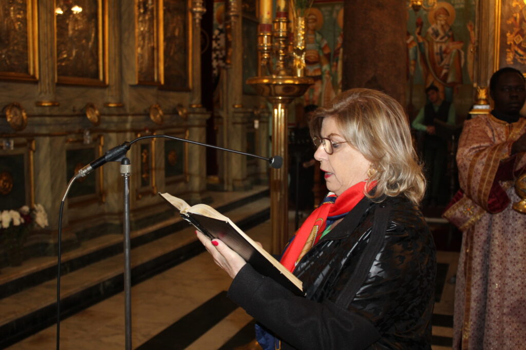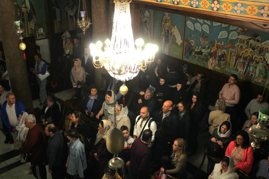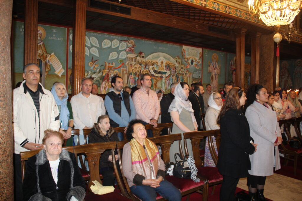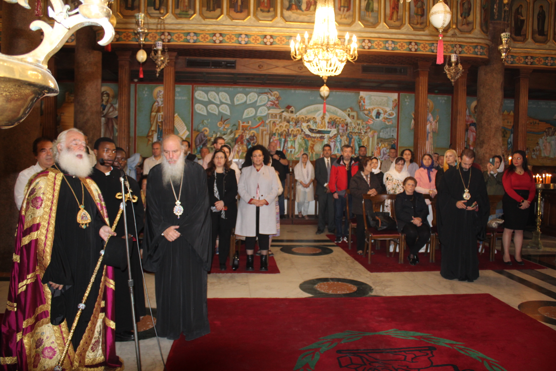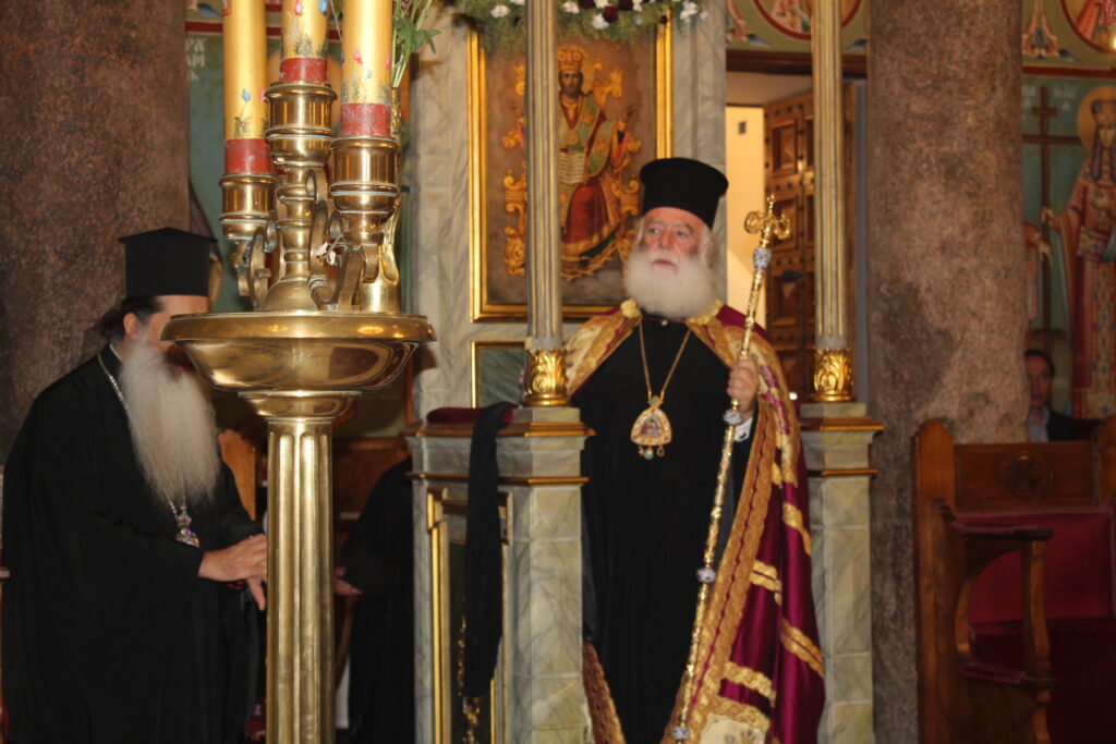 Με τον Μακαριώτατο συμπροσευχήθηκαν: οι Σεβασμιότατοι Μητροπολίτες Γουινέας κ. Γεώργιος – Εκπρόσωπος του Πατριάρχη στην Αθήνα, Πτολεμαΐδος κ. Παντελεήμων – Αρχιγραμματέας της Ιεράς Συνόδου, Πηλουσίου κ. Νάρκισσος – Πατριαρχικός Επίτροπος και ο Θεοφιλέστατος Μητροπολίτης Ταμιάθεως κ. Γερμανός – Προϊστάμενος της Ιεράς Μονής του Οσίου Σάββα του Ηγιασμένου. Μαζί τους και ο ιερέας των Αραβόφωνων κ. Σάμι όπως και οι μαθητές της Πατριαρχικής Σχολής «Άγιος Αθανάσιος».