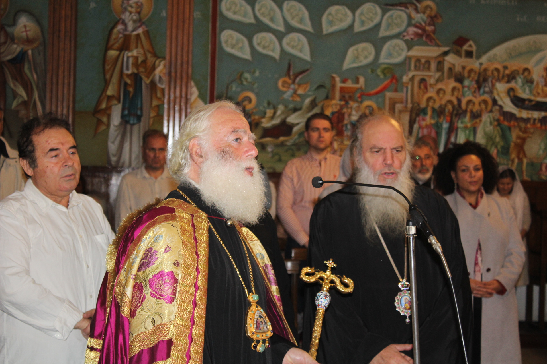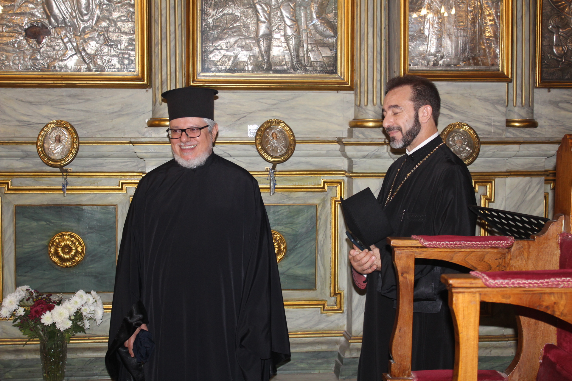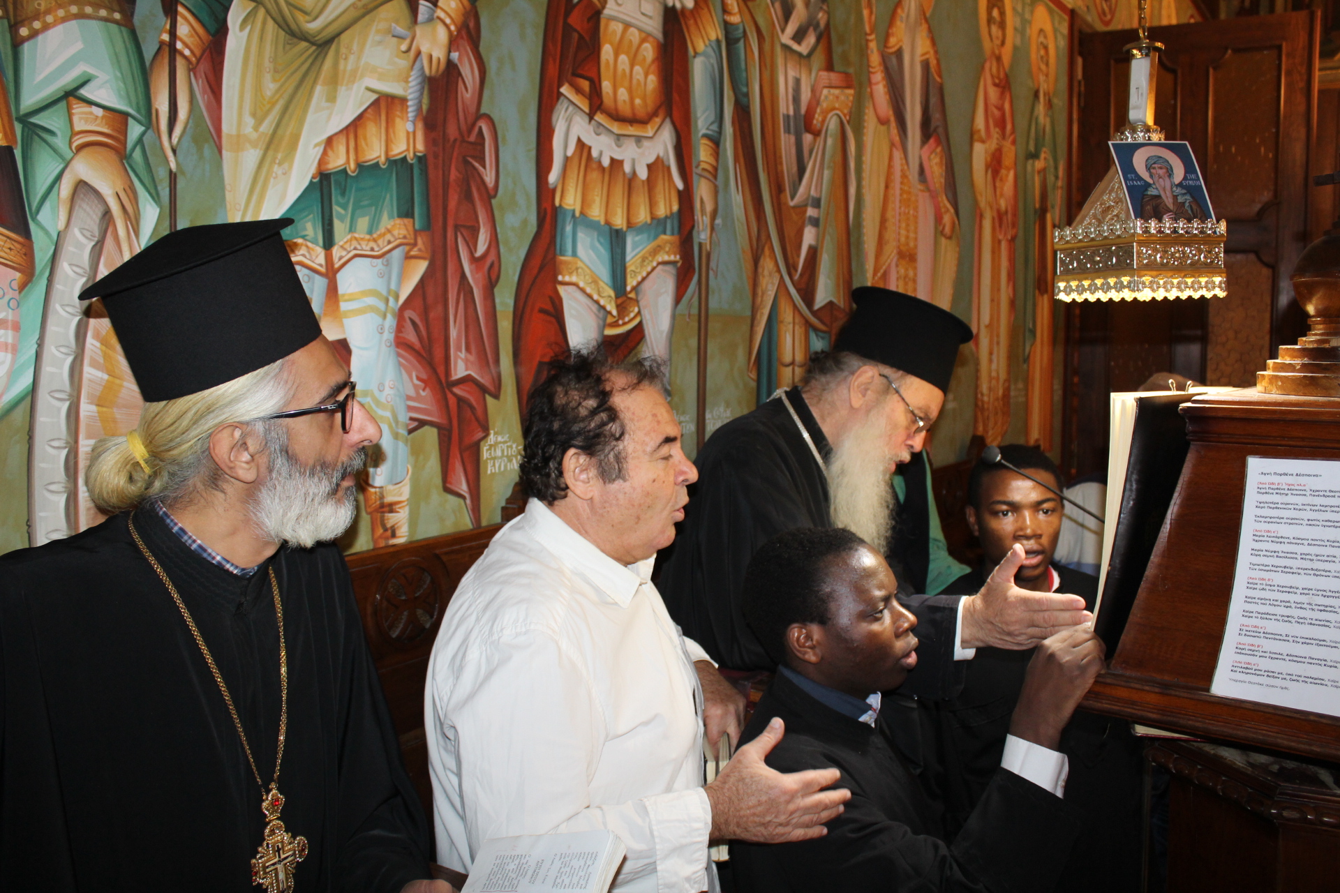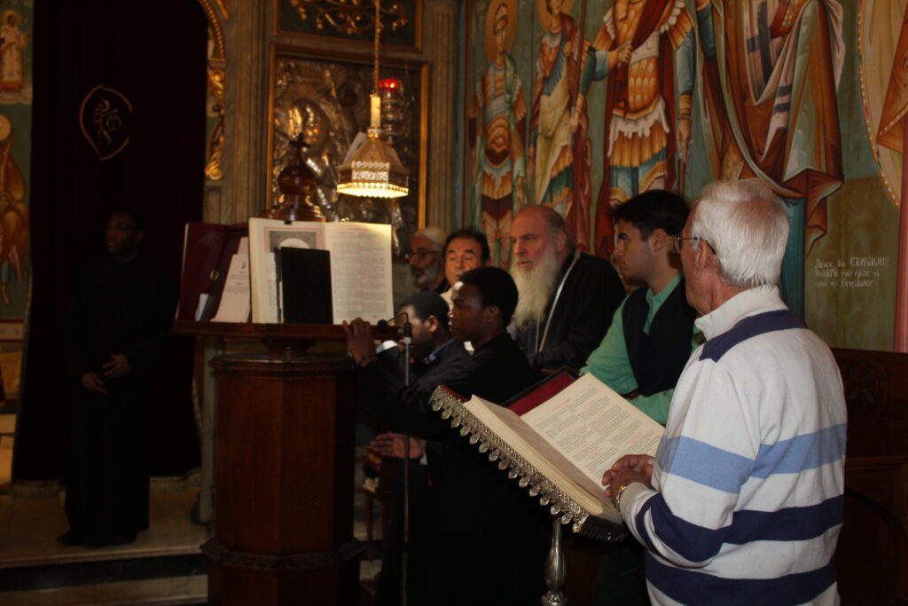 Έψαλαν τις βυζαντινές νότες ο ιεροψάλτης Ιωάννης Γενιατάκης μαζί με φοιτητές της Πατριαρχικής Σχολής και με τη συνδρομή, όποτε αυτή απαιτείτο, του Θεοφιλεστάτου κ. Γερμανού.