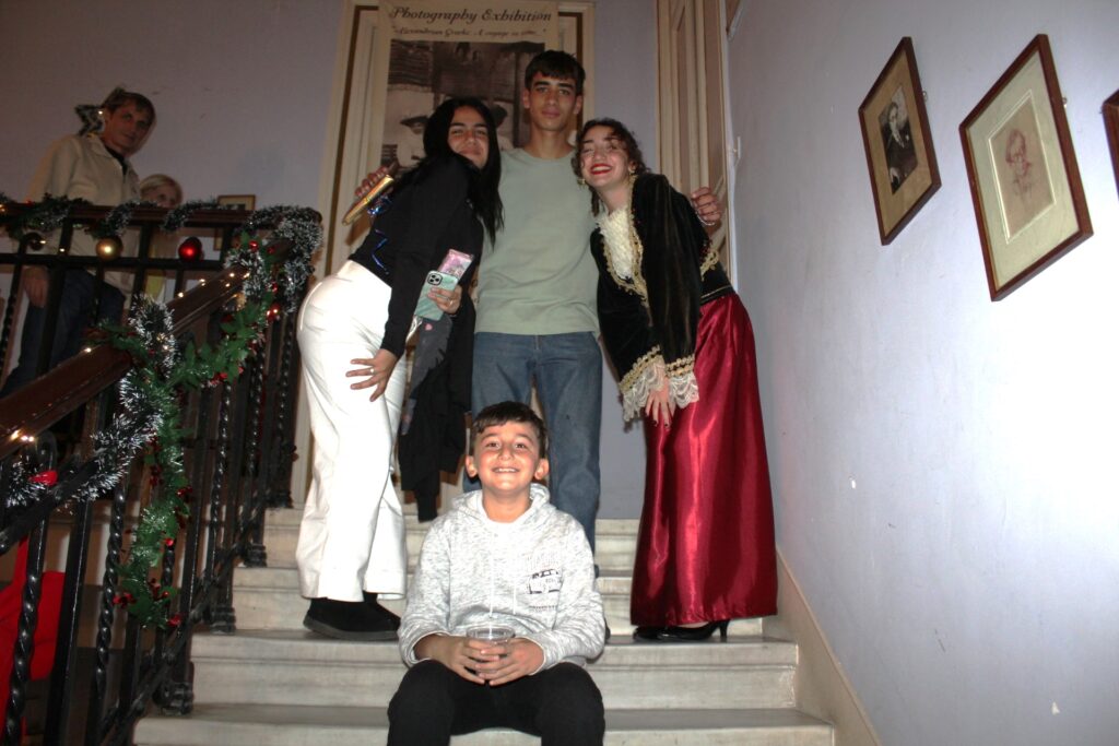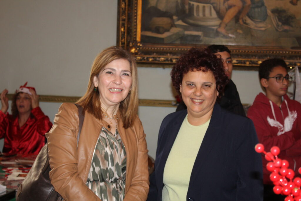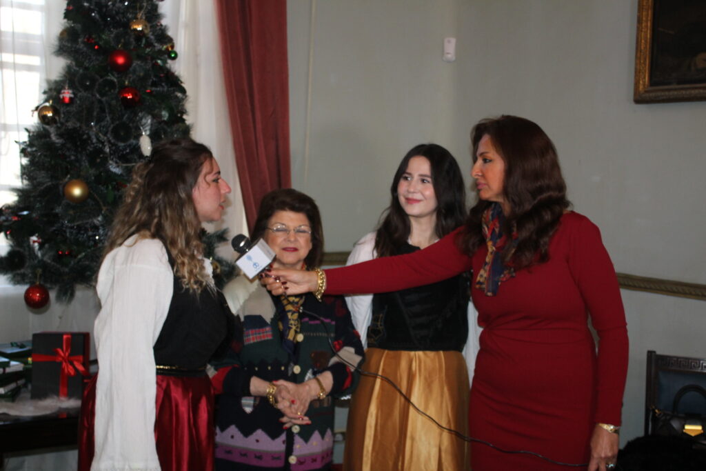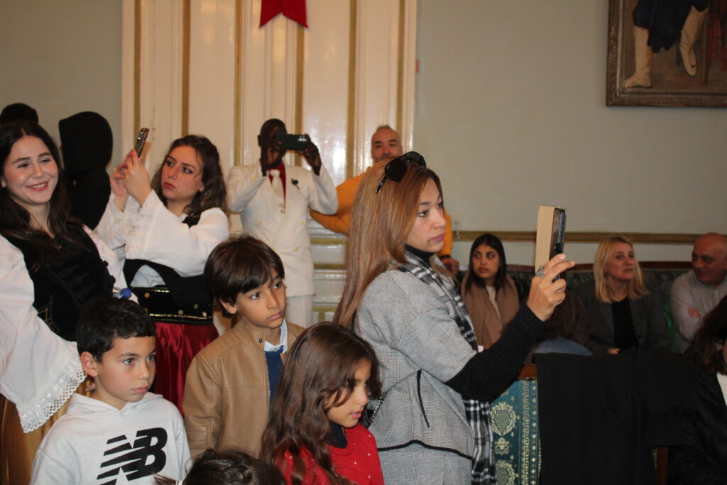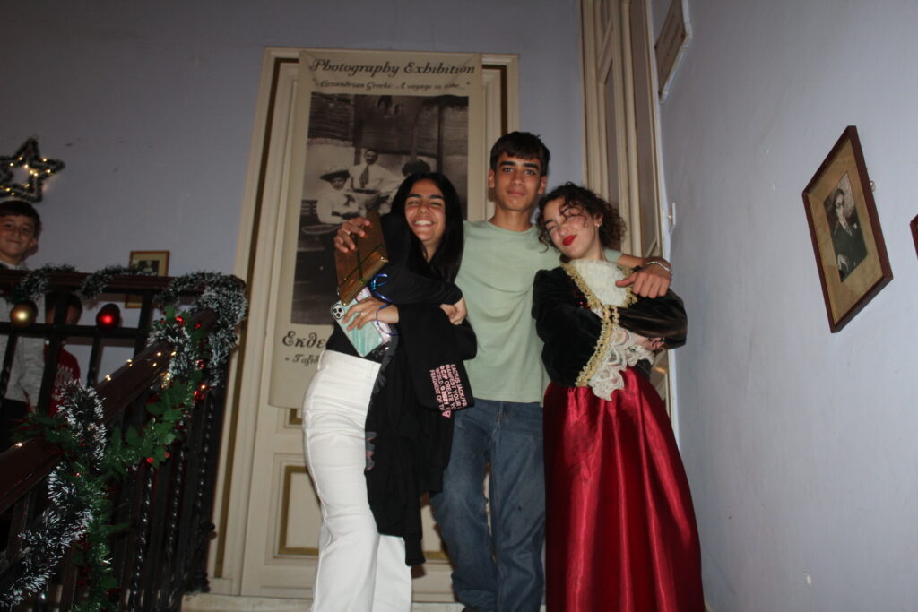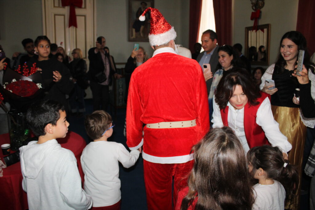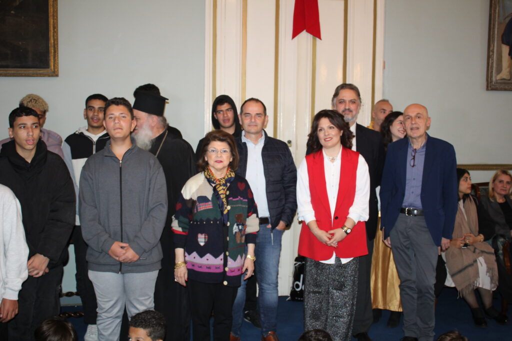 Η αίθουσα του πρώτου ορόφου του Γενικού Προξενείου που στεγάζεται στο ιστορικό κτήριο Μπενάκειο της ΕΚΑ, γέμισε από Αιγυπτιώτες οι οποίοι ήρθαν, όχι μόνο για να αγοράσουν εορταστικά δώρα απ΄ τα γεμάτα τραπέζια του Λυκείου Ελληνίδων, αλλά και για να απολαύσουν την εκδήλωση των παιδιών και των εφήβων.
