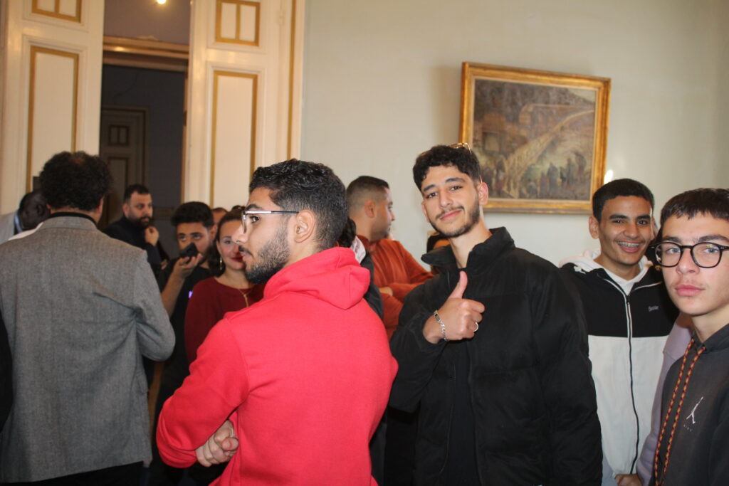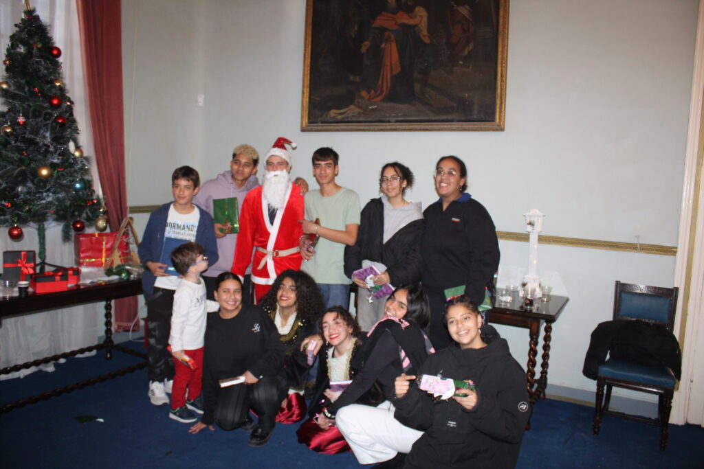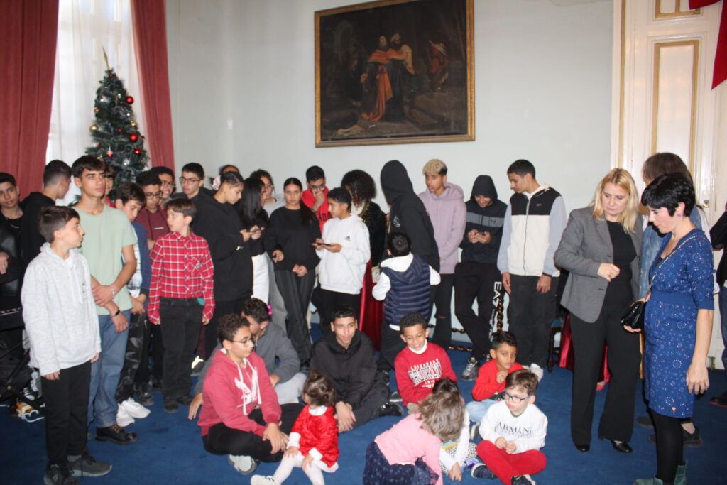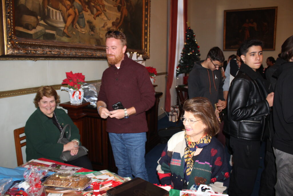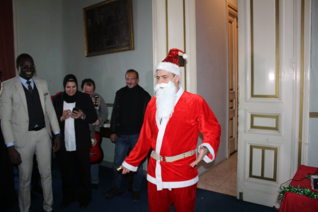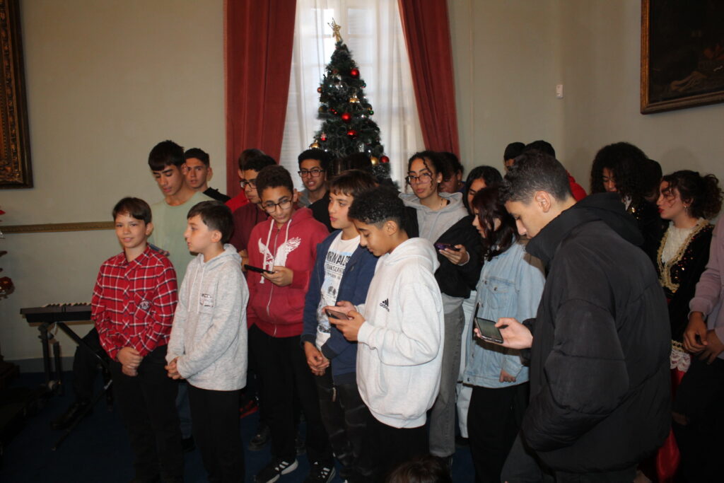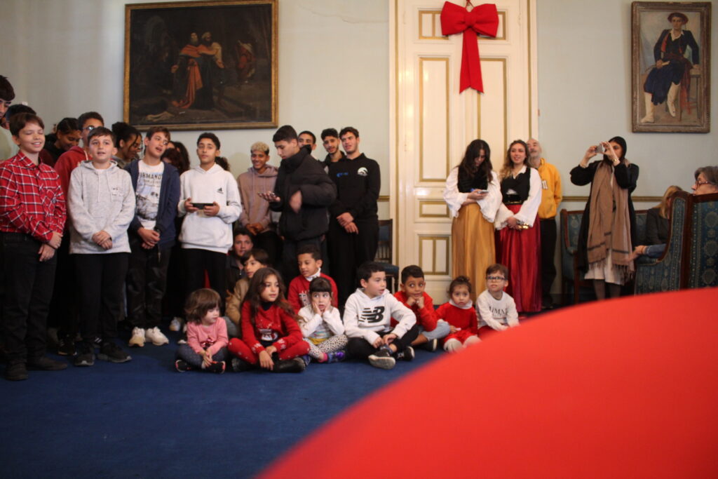 Η αίθουσα του πρώτου ορόφου του Γενικού Προξενείου που στεγάζεται στο ιστορικό κτήριο Μπενάκειο της ΕΚΑ, γέμισε από Αιγυπτιώτες οι οποίοι ήρθαν, όχι μόνο για να αγοράσουν εορταστικά δώρα απ΄ τα γεμάτα τραπέζια του Λυκείου Ελληνίδων, αλλά και για να απολαύσουν την εκδήλωση των παιδιών και των εφήβων.