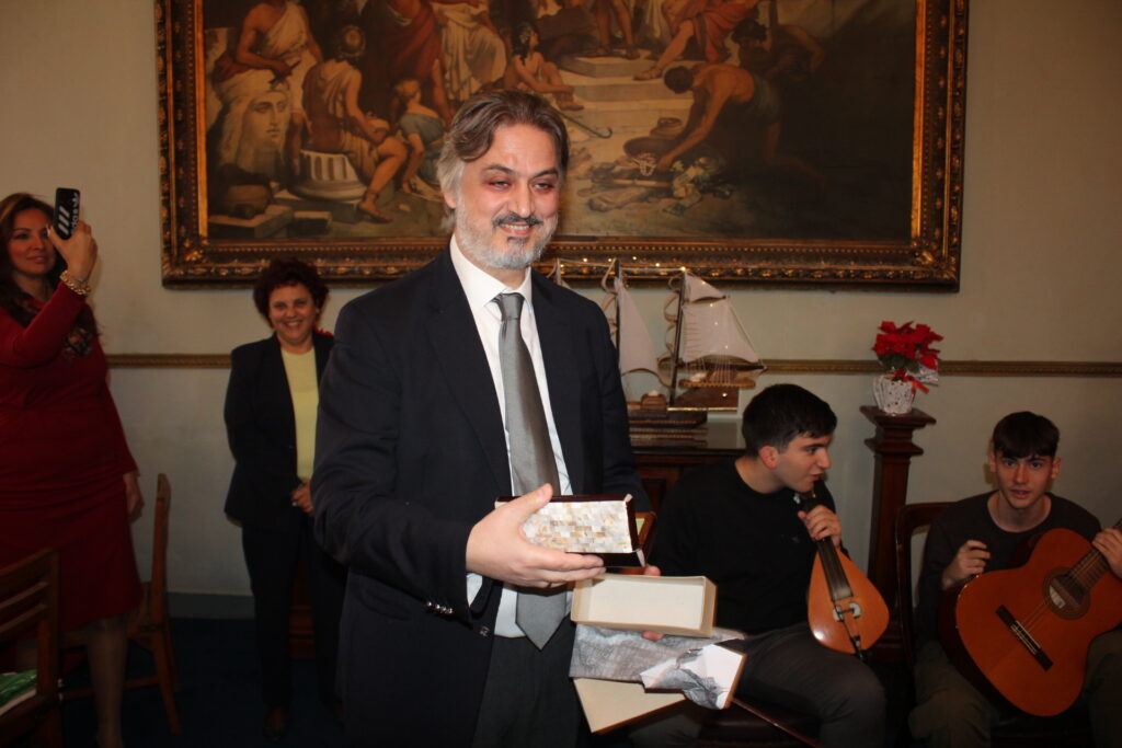 Δώρο γιορτινό και συμβολικό εδόθη και στον Γενικό Πρόξενο κ. Ιωάννη Πυργάκη, δια χειρός της Διευθύντριας του Αβερωφείου κας Αφροδίτης Πεβερέτου εκ μέρους όλων των εκπαιδευτικών.