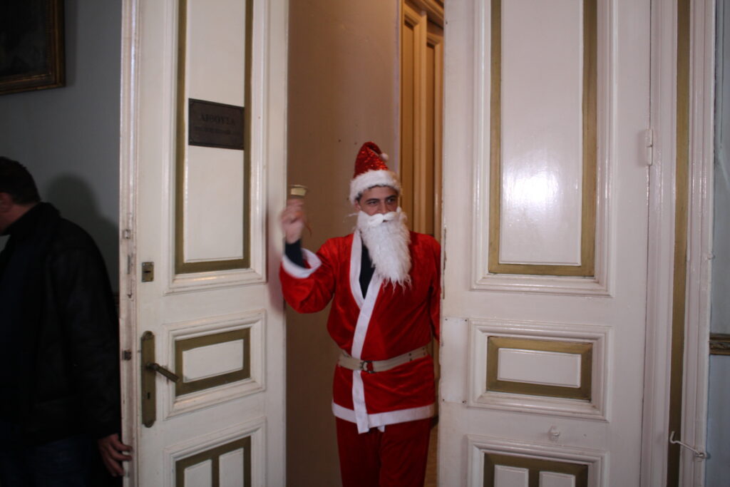 Άπαντες και άπασες, χαλαροί απόλαυσαν τη χαρά της συζήτησης και των κερασμάτων, μέχρι που εισήλθε δυναμικά ο κατακόκκινος Άγιο Βασίλης  και μοίρασε τα δώρα του στα παιδιά των οποίων οι χαρούμενες φάτσες εξέφραζαν την συναισθηματική πεμπτουσία του επιτυχημένου  εορταστικού εγχειρήματος.