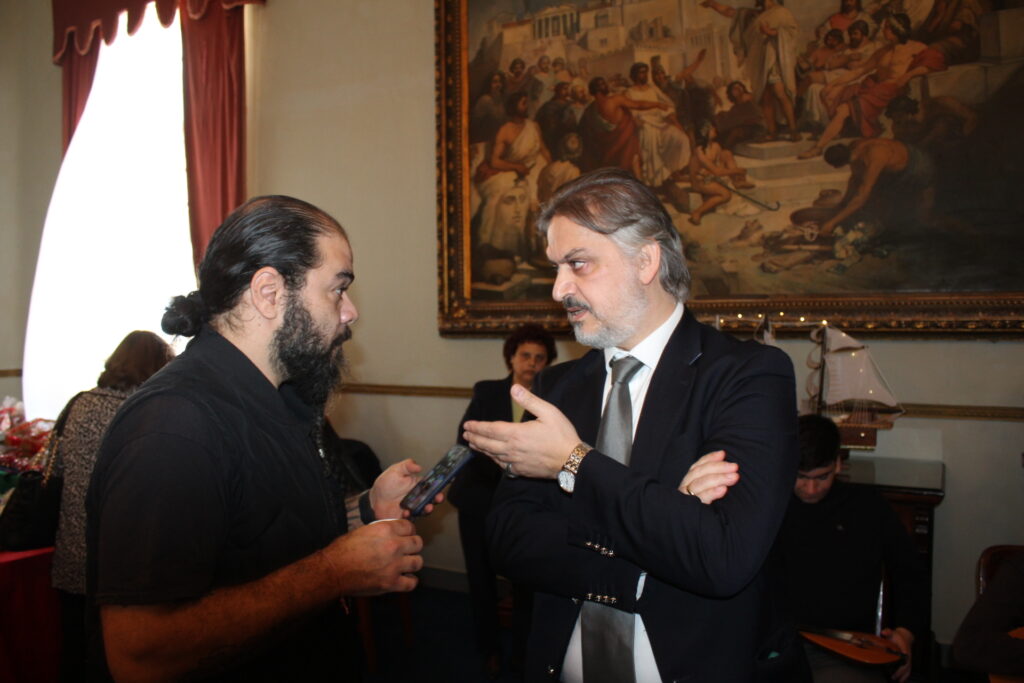 Στην άλλη πλευρά ο κ. Ιωάννης Γενειαδάκης,  με το γιο του Αναστάσιο και τους μαθητές της Πατριαρχικής Σχολής «Άγιος Αθανάσιος» προσέδωσαν με τη σειρά τους κι αυτοί τον ανάλογο μουσικό τόνο.
