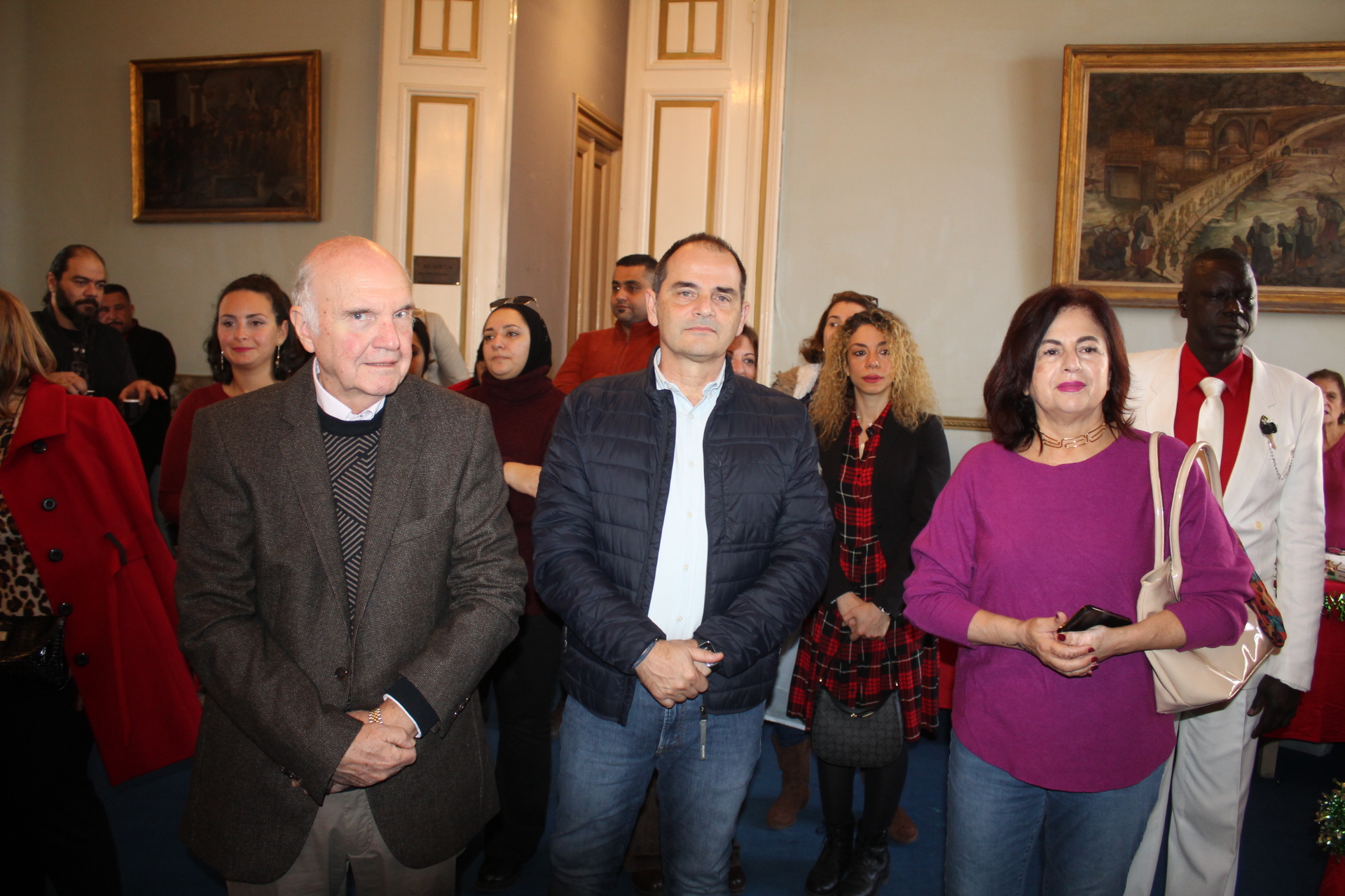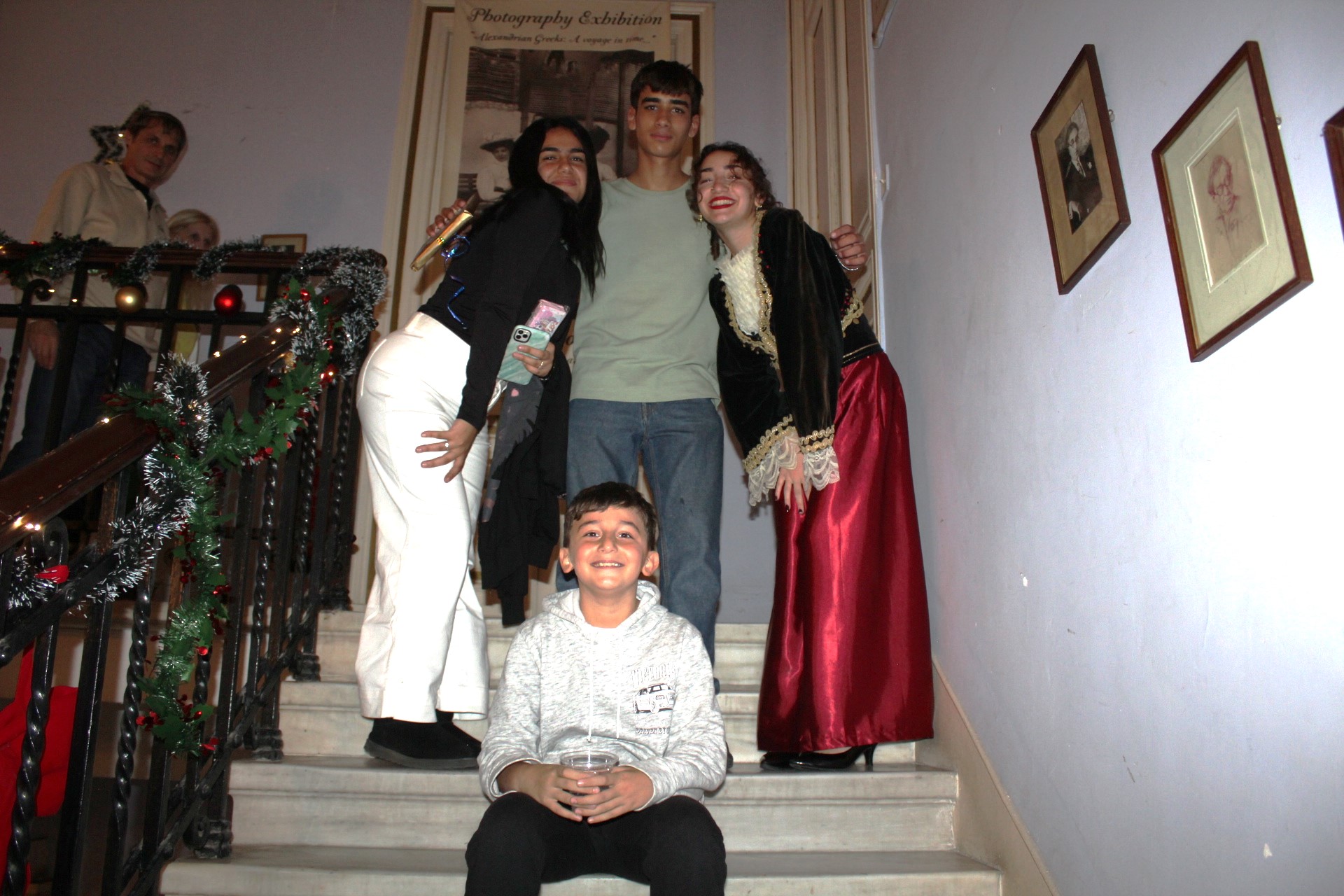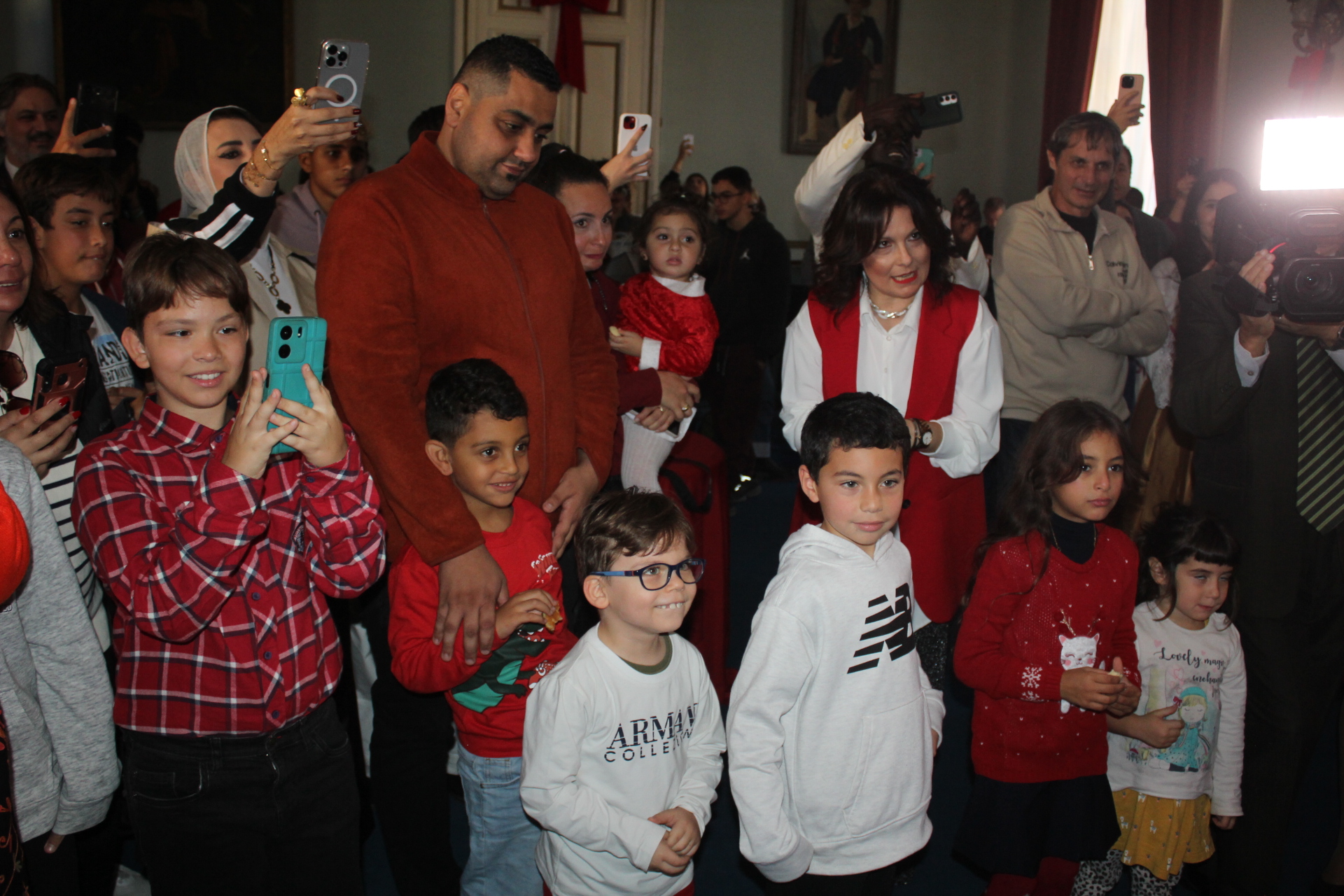 Η αίθουσα του πρώτου ορόφου του Γενικού Προξενείου που στεγάζεται στο ιστορικό κτήριο Μπενάκειο της ΕΚΑ, γέμισε από Αιγυπτιώτες οι οποίοι ήρθαν, όχι μόνο για να αγοράσουν εορταστικά δώρα απ΄ τα γεμάτα τραπέζια του Λυκείου Ελληνίδων, αλλά και για να απολαύσουν την εκδήλωση των παιδιών και των εφήβων.