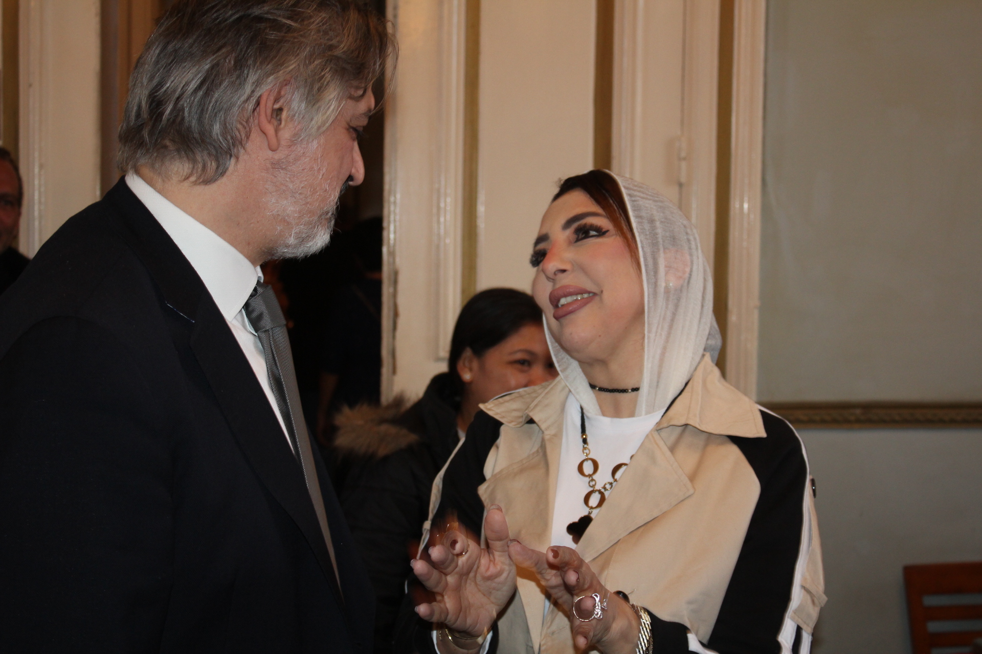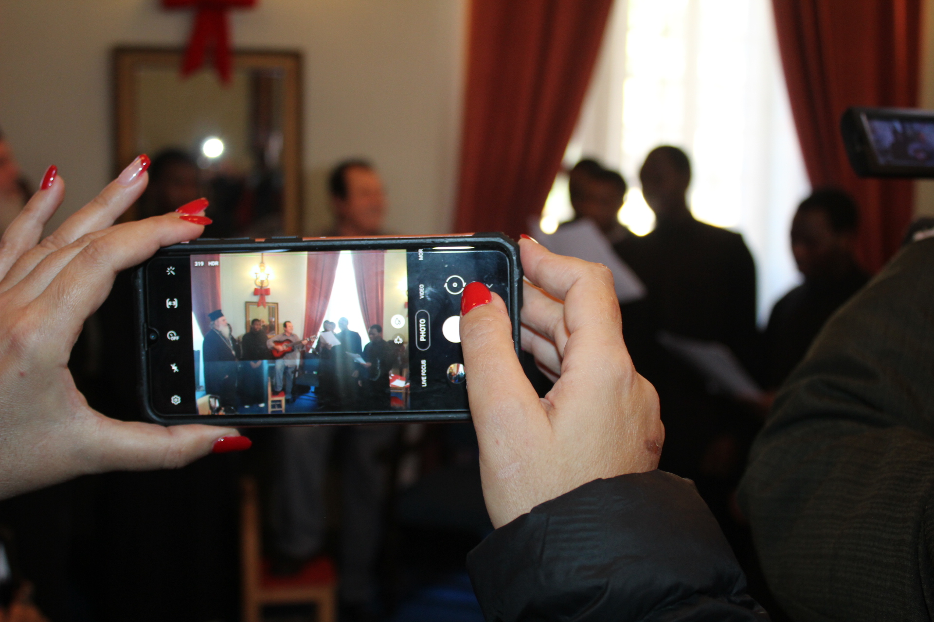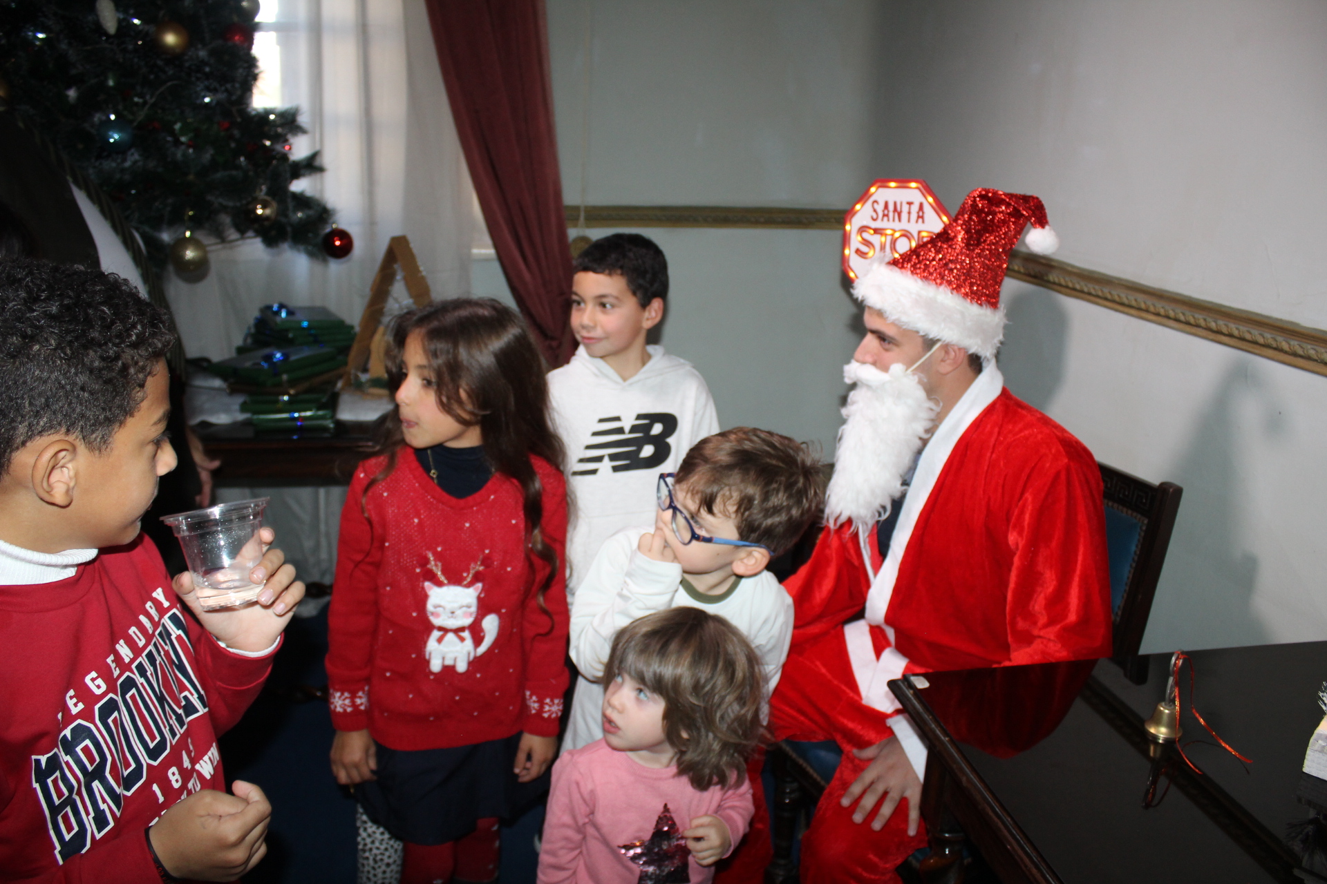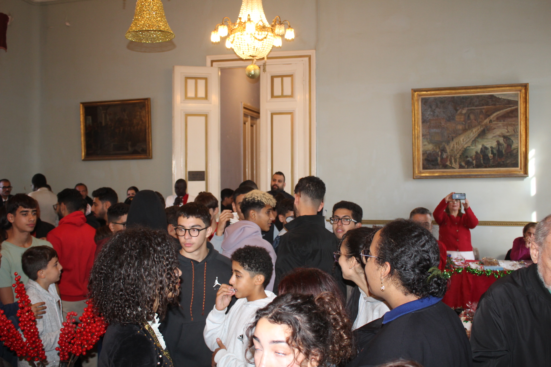 Η αίθουσα του πρώτου ορόφου του Γενικού Προξενείου που στεγάζεται στο ιστορικό κτήριο Μπενάκειο της ΕΚΑ, γέμισε από Αιγυπτιώτες οι οποίοι ήρθαν, όχι μόνο για να αγοράσουν εορταστικά δώρα απ΄ τα γεμάτα τραπέζια του Λυκείου Ελληνίδων, αλλά και για να απολαύσουν την εκδήλωση των παιδιών και των εφήβων.