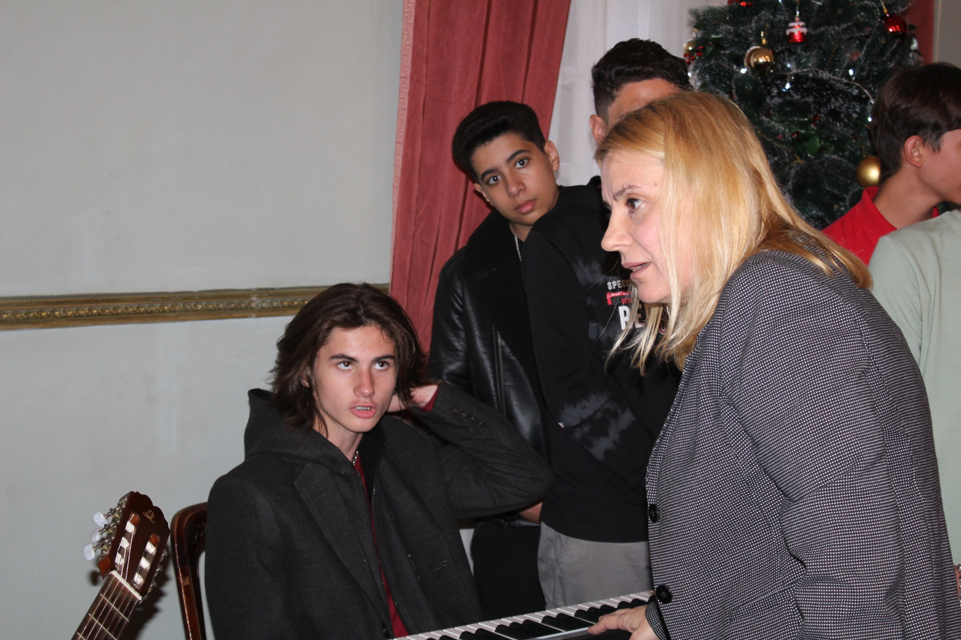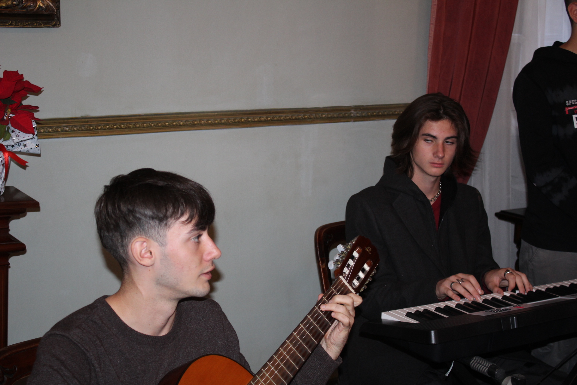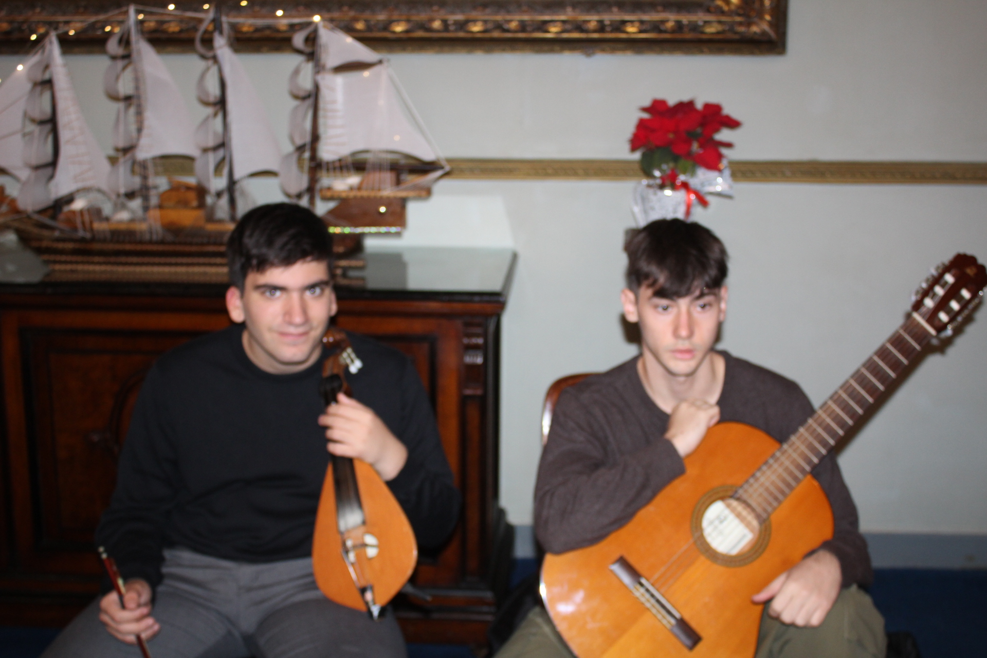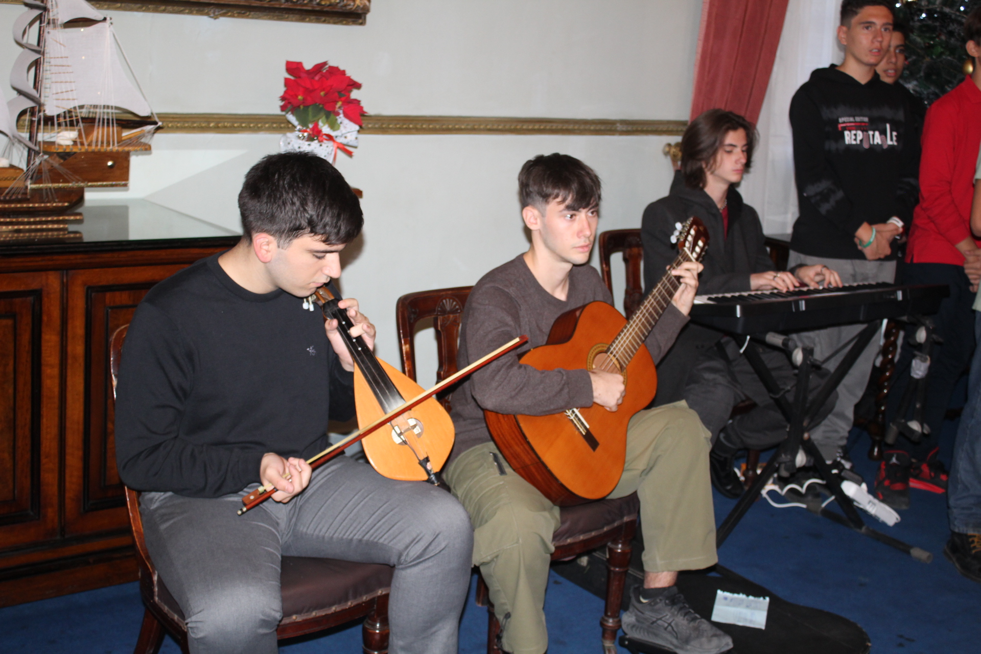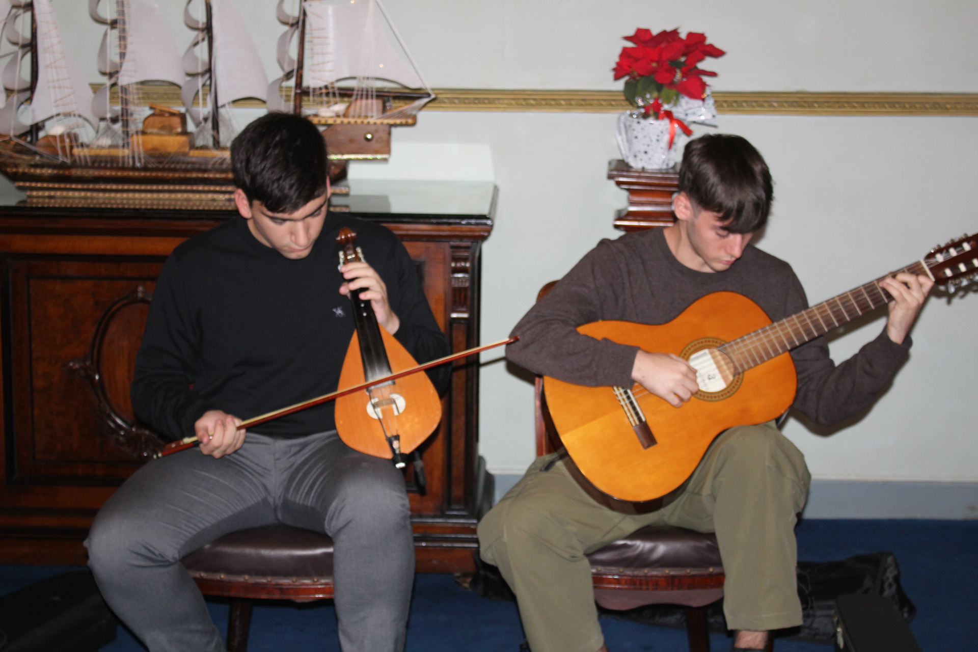 Οι τρεις μαθητές οργανοπαίκτες Ρωμανός Στογιάννης, Σπύρος και Γιώργος Αθανασόπουλος, στη λύρα στο πιάνο και στην κιθάρα αντίστοιχα, δημιούργησαν με το μουσικό τους ταλέντο, το κατάλληλο εορταστικό κλίμα προσδίδοντας στην όλη εκδήλωση καλλιτεχνική αίγλη.