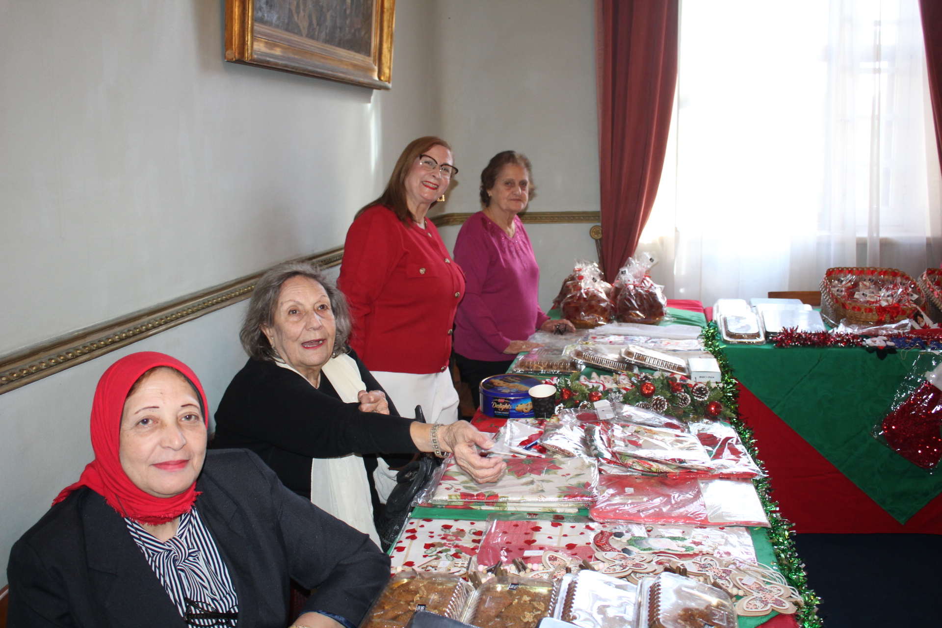 Παρούσες όλες οι κυρίες του Λυκείου Ελληνίδων, με το χαμόγελο εξυπηρετούσαν  τους παρευρισκομένους, στα γεμάτα από εκθέματα και καλούδια τραπέζια τους, καθώς πουλούσαν τις εορταστικές τους δημιουργίες ενώ τα έσοδα όπως ανέφερε και ο Γενικός Πρόξενος κ. Ιωάννης Πυργάκης,  πρόκειται να δοθούν για φιλανθρωπικούς σκοπούς.